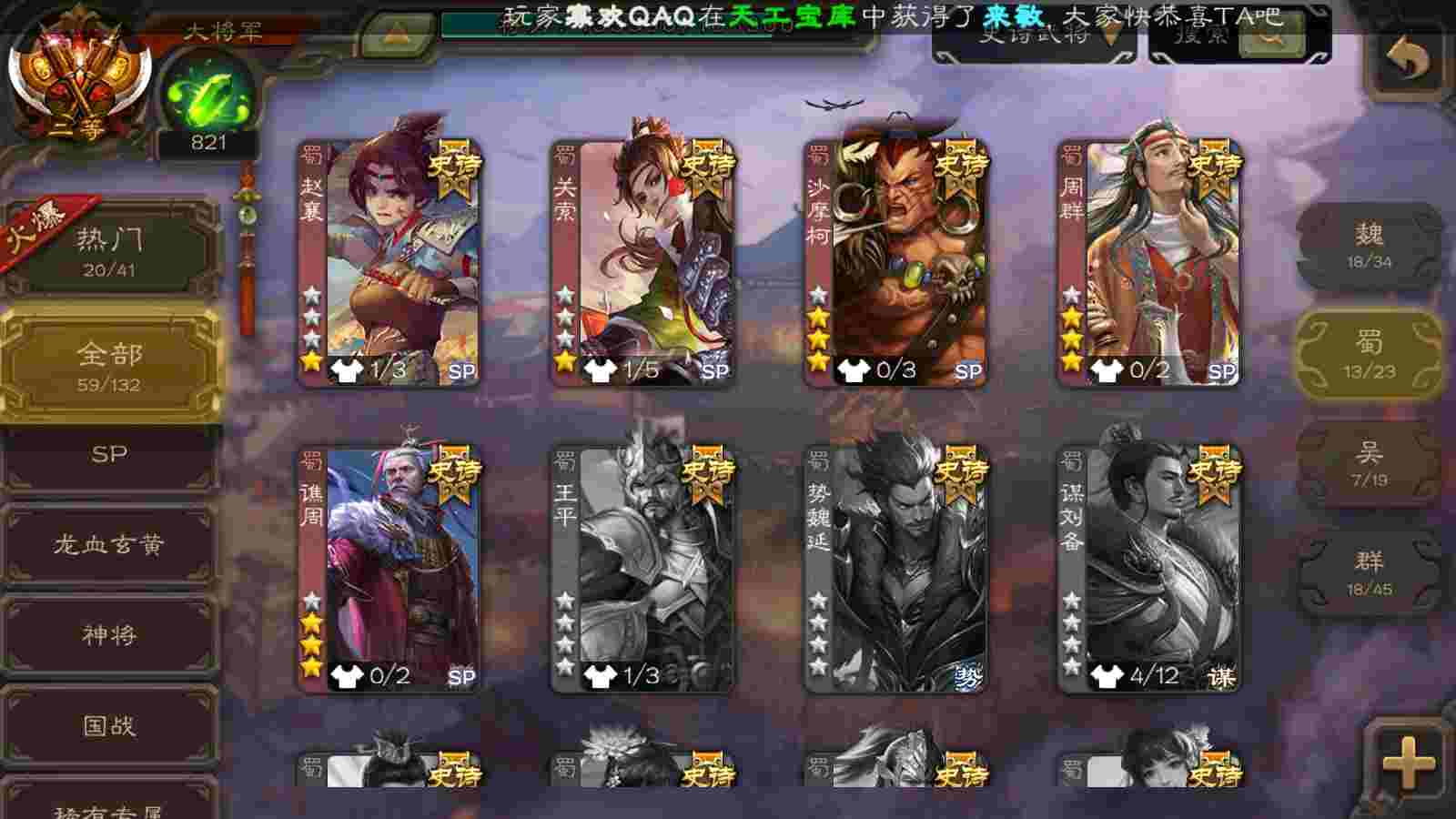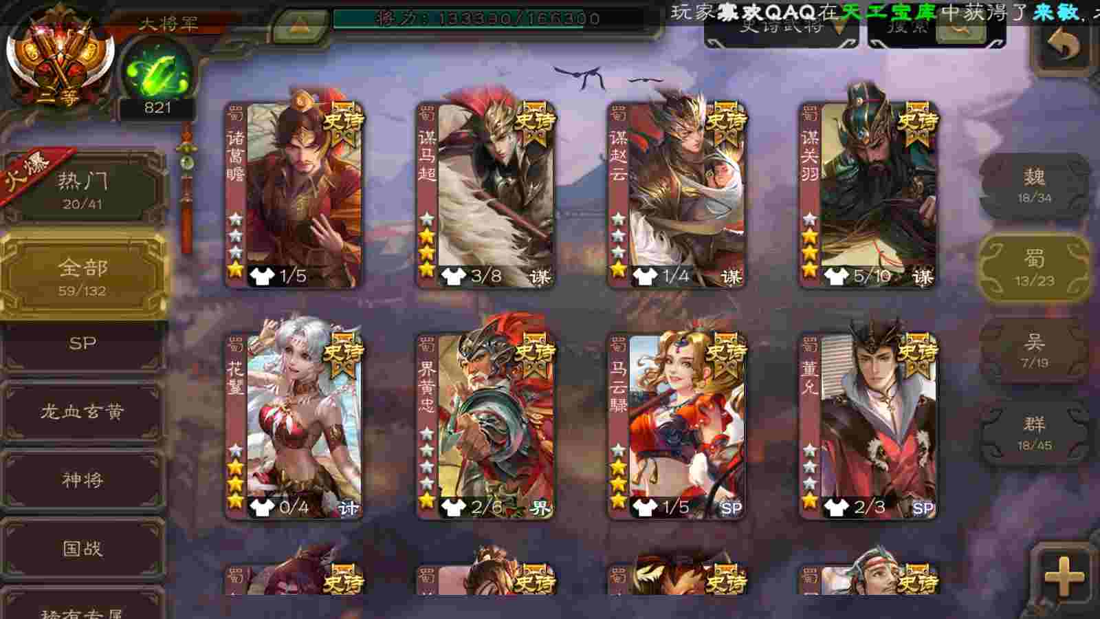 (蜀国):界黄忠,周群,谋关羽,诸葛瞻,谋赵云,花鬘,沙摩柯,谯周,谋马超,关索,马云騄,董允,赵襄