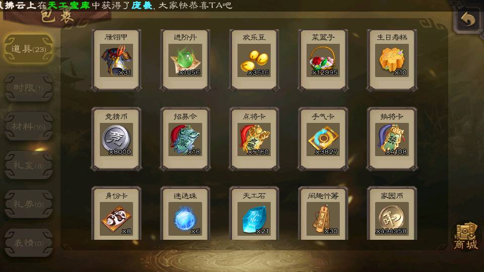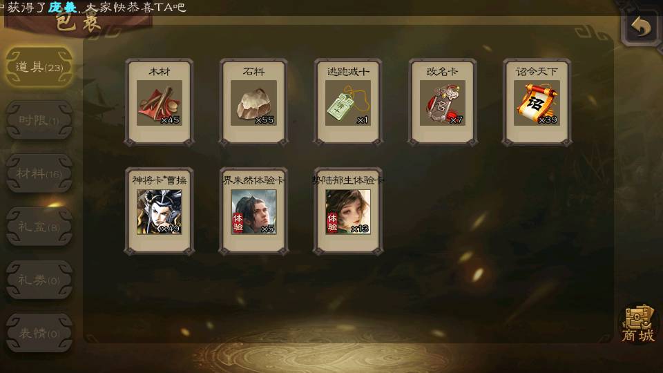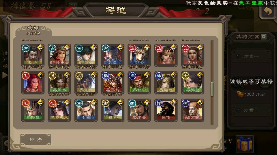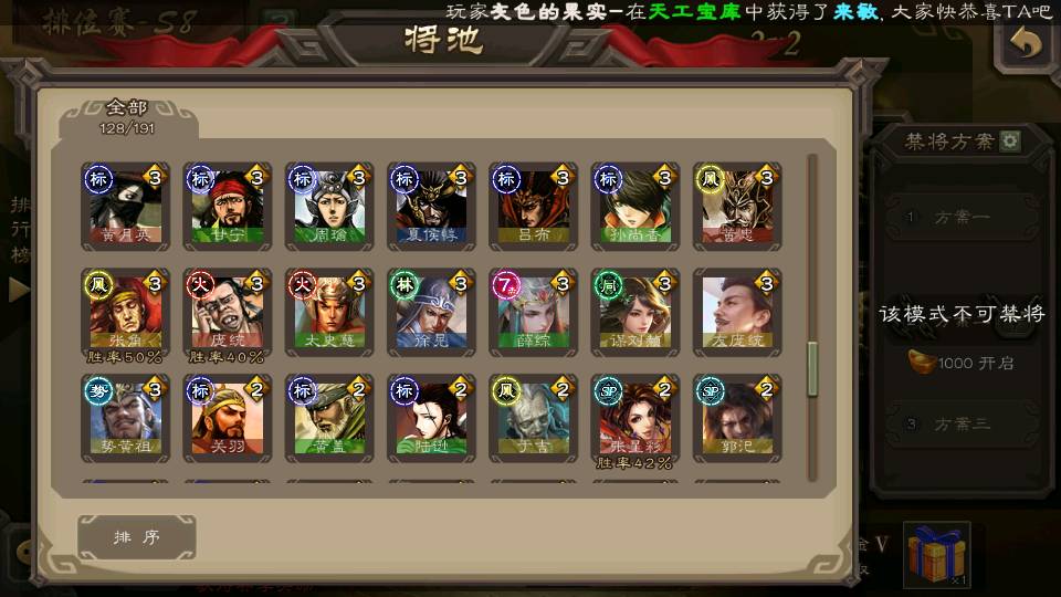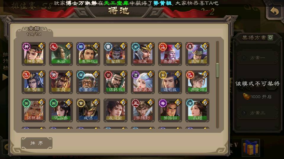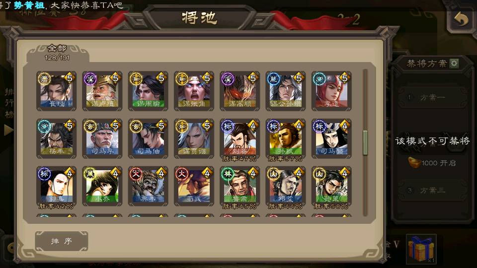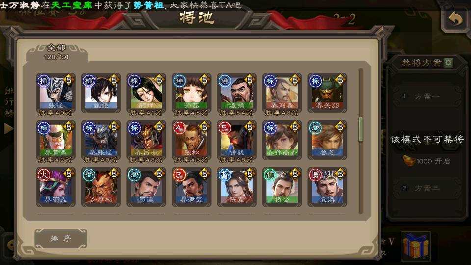 (群雄):杜预,界沮授,南华老仙,麴义,许攸,十常侍,谋貂蝉,张让,界李儒,庞德公,谋公孙瓒,谋张角,星黄忠,左慈,兀突骨