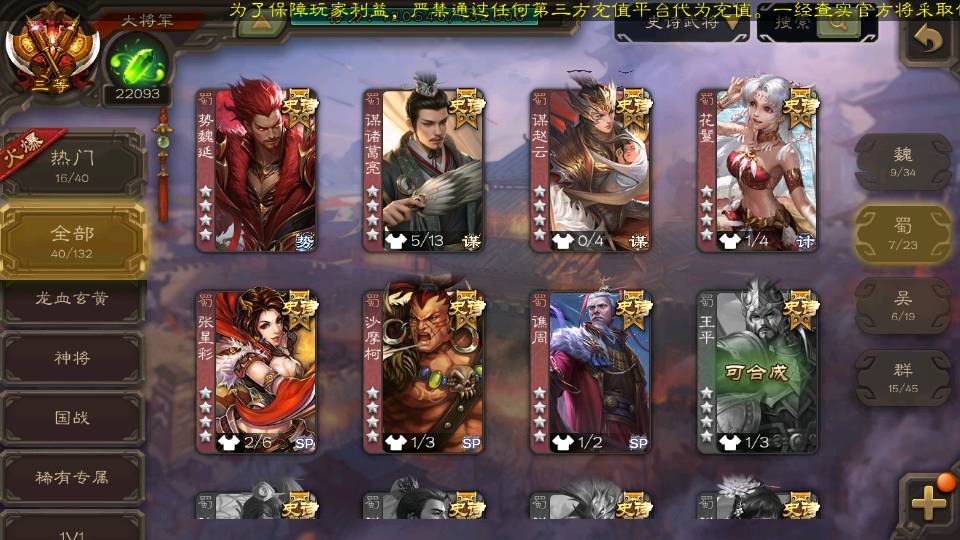 (蜀国):谋诸葛亮,势魏延,谋赵云,花鬘,沙摩柯,谯周,张星彩