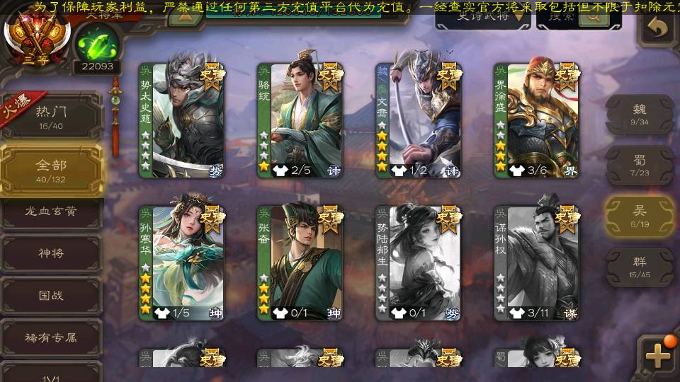 (神将):神孙策,神鲁肃,神太史慈,神陆逊