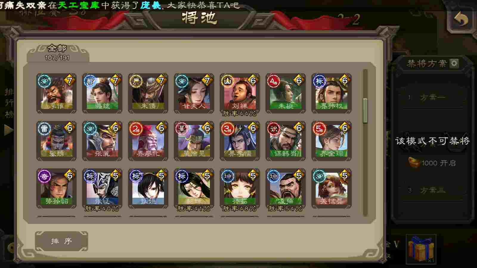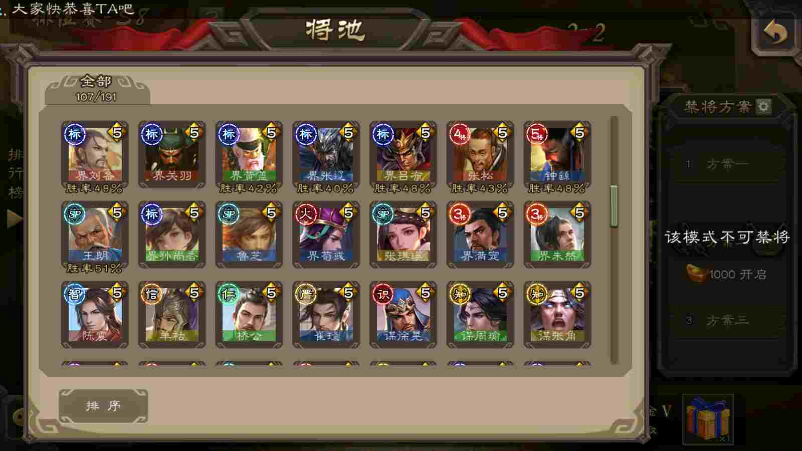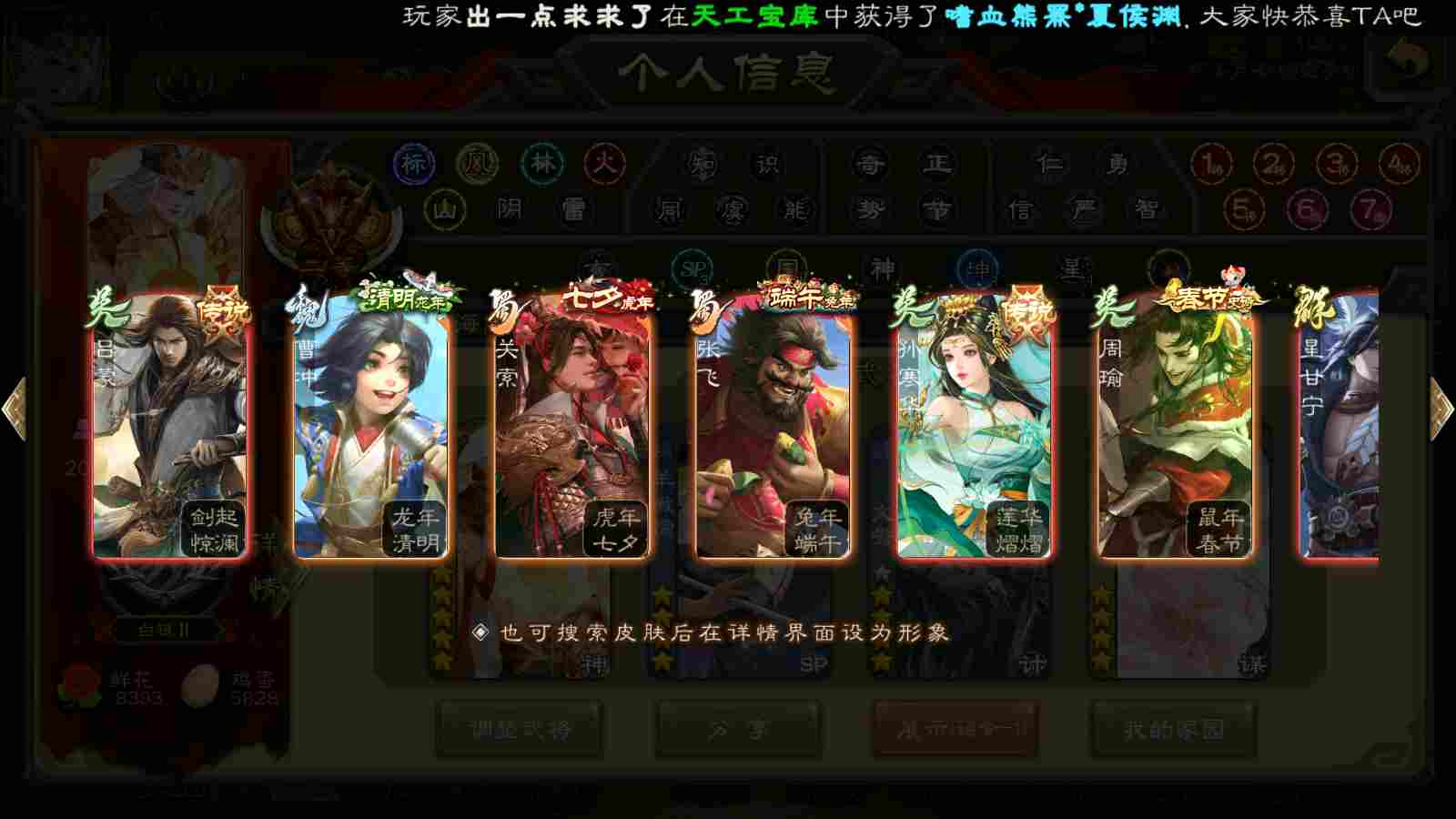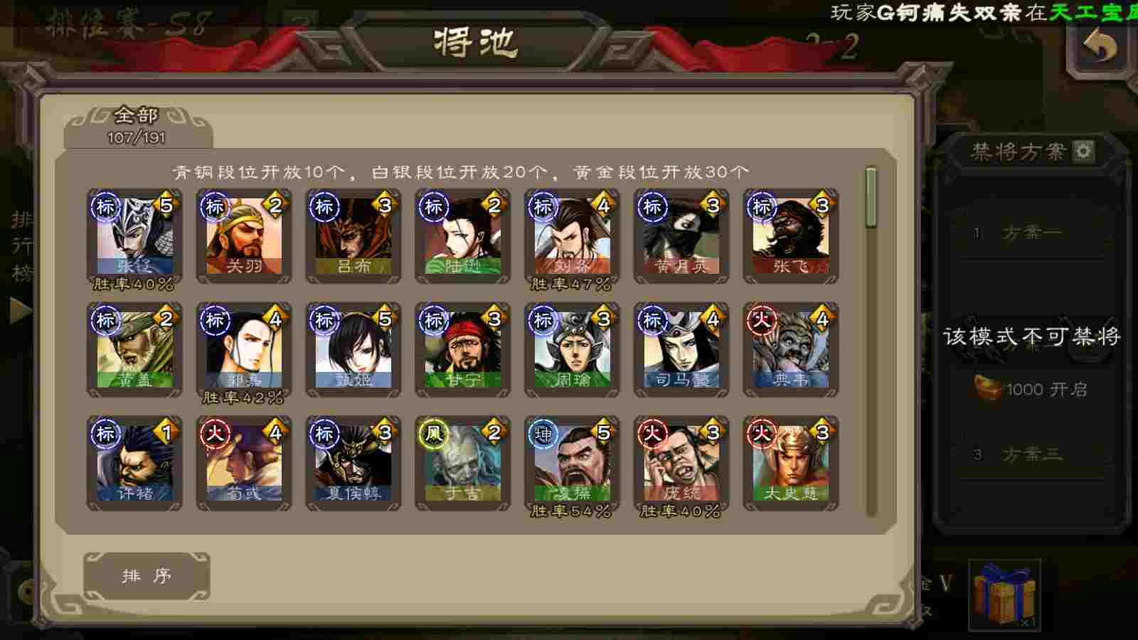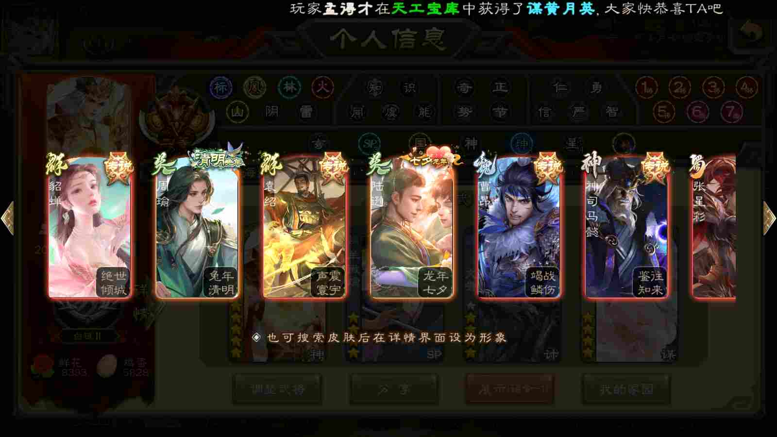 (蜀国):谋关羽,谋赵云,界黄忠,花鬘,傅佥,关索,张星彩,赵襄