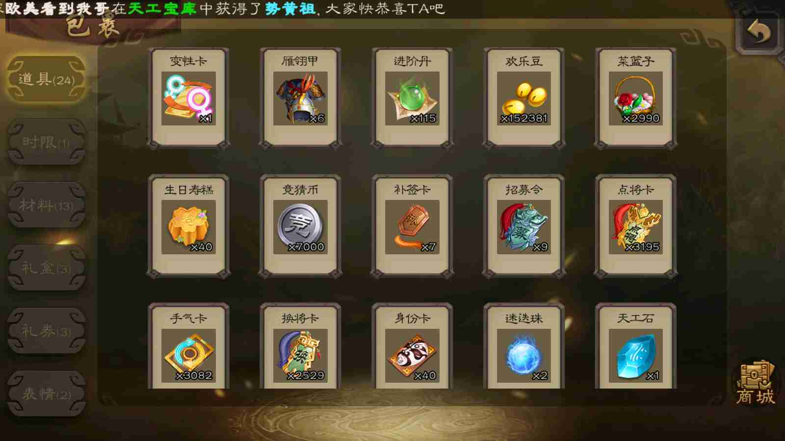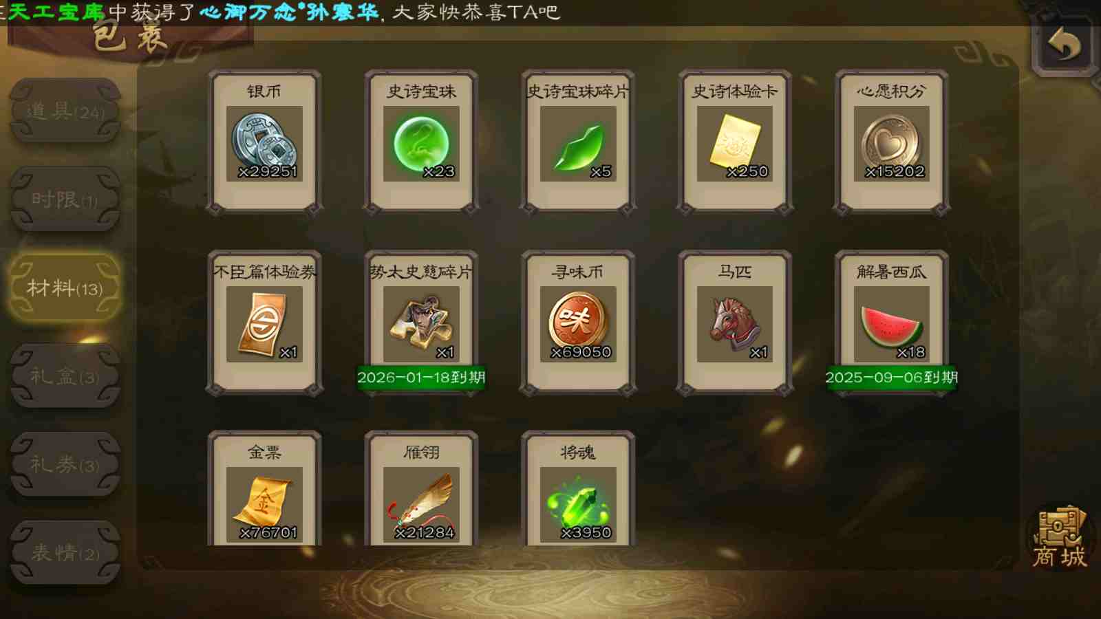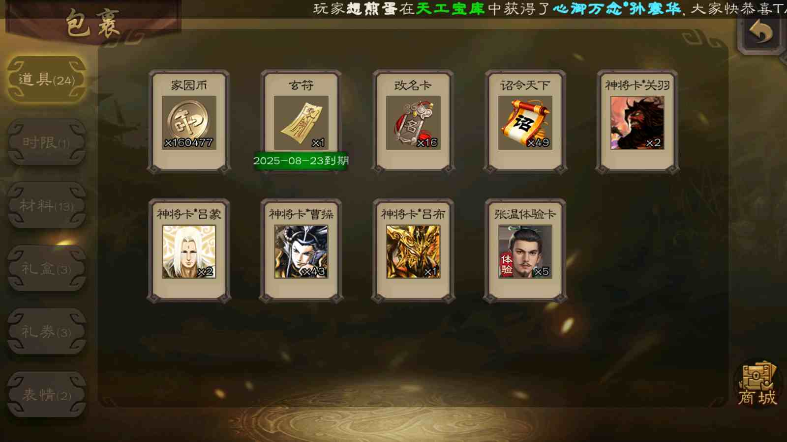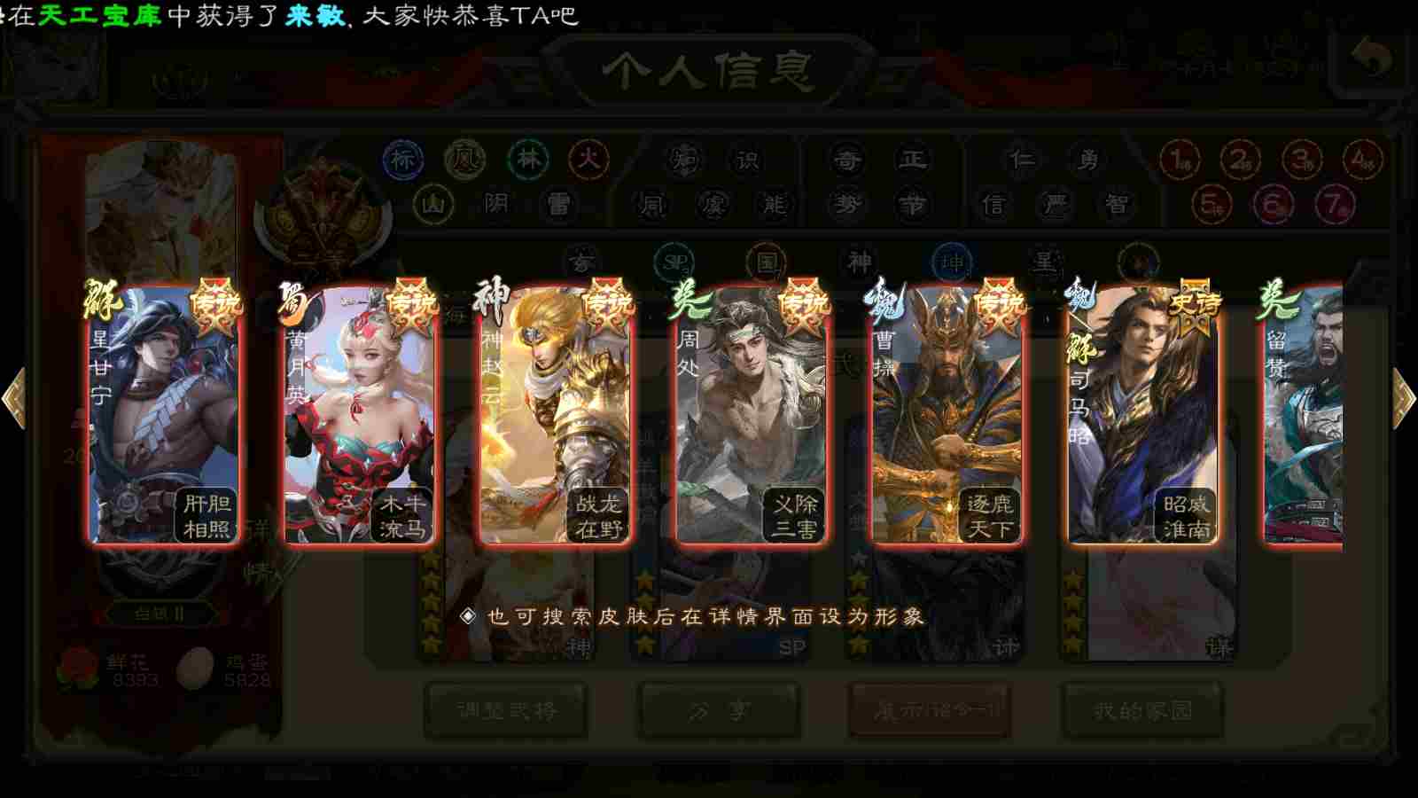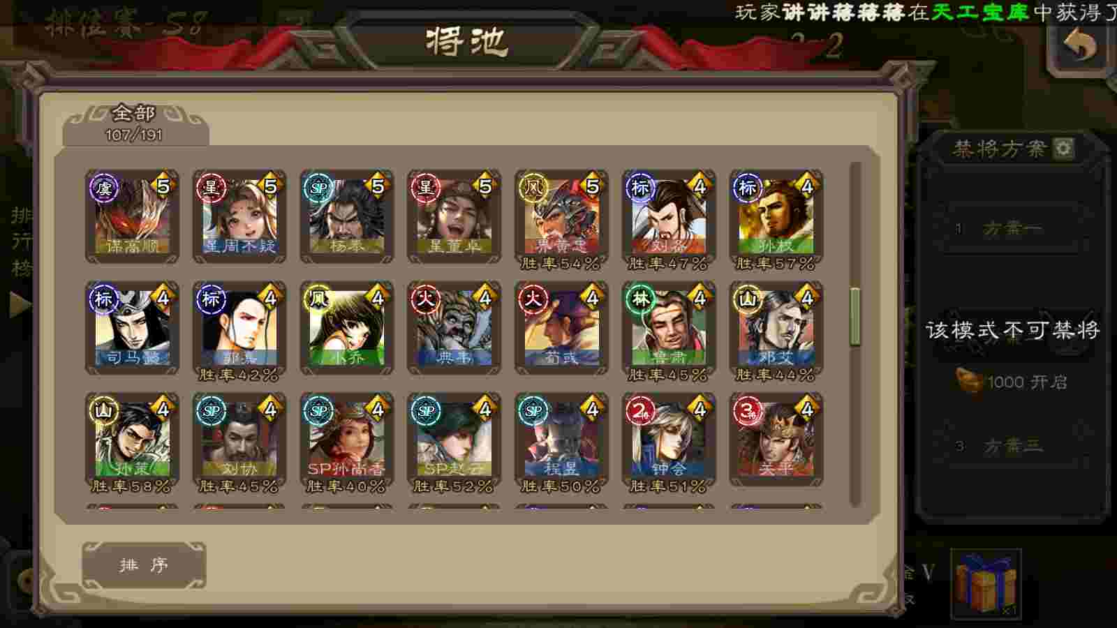 (蜀国):谋关羽,谋赵云,界黄忠,花鬘,傅佥,关索,张星彩,赵襄