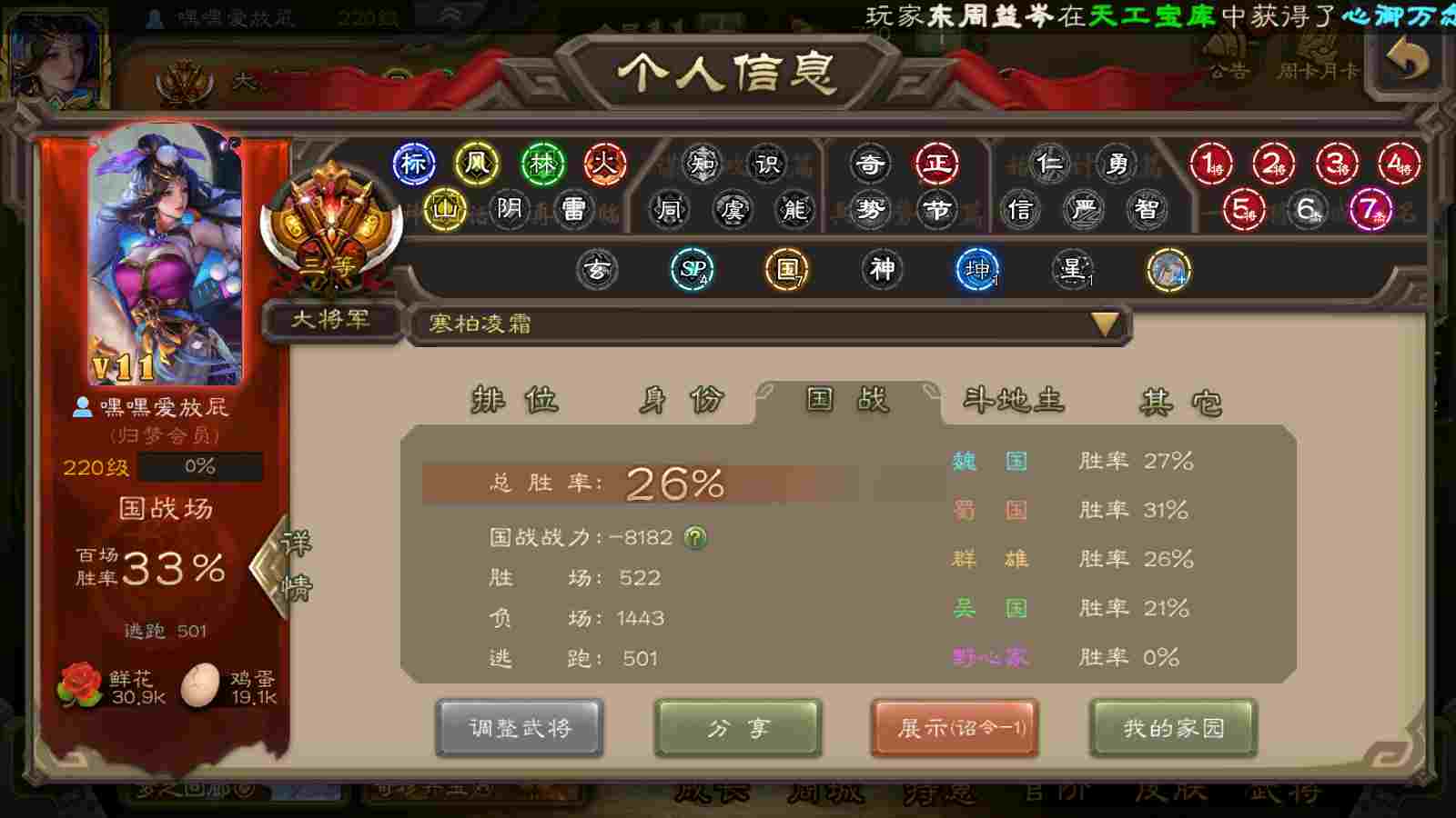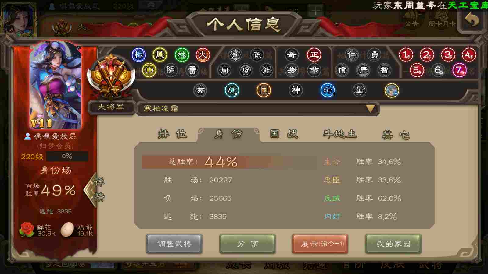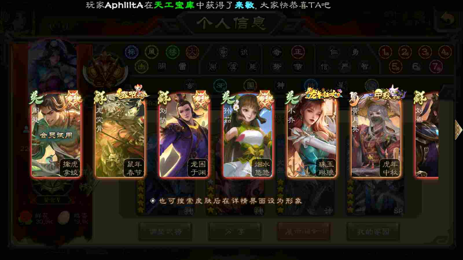 商品编号22414 全部皮肤410,动态皮肤48,全部武将367,排位武将97,国战武将95,史诗武将40,友徐庶,神郭嘉回廊,神甘宁回廊,文鸯双回廊,徐荣动皮,宝珠59,雁翎5.2w,将魂1w