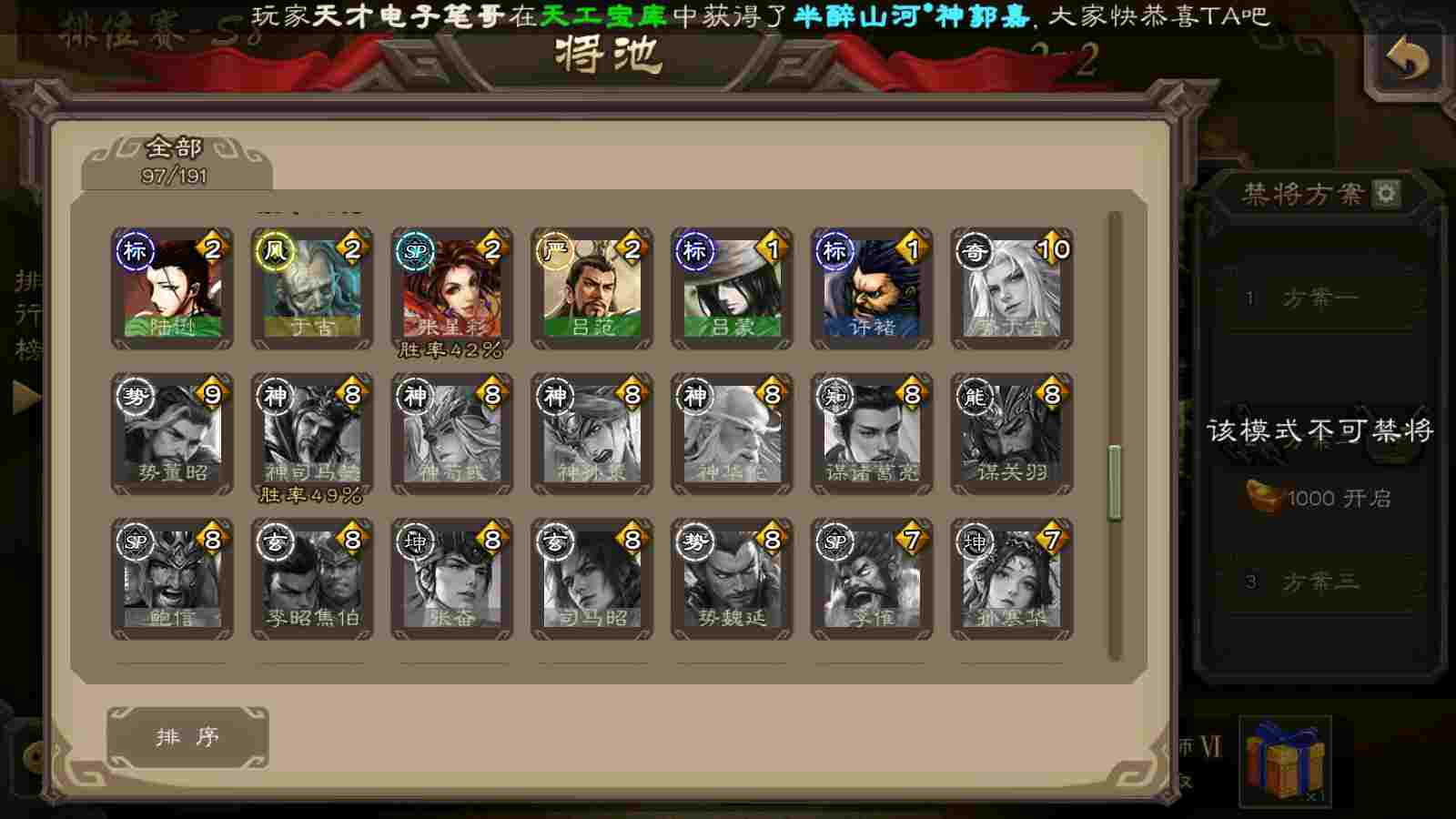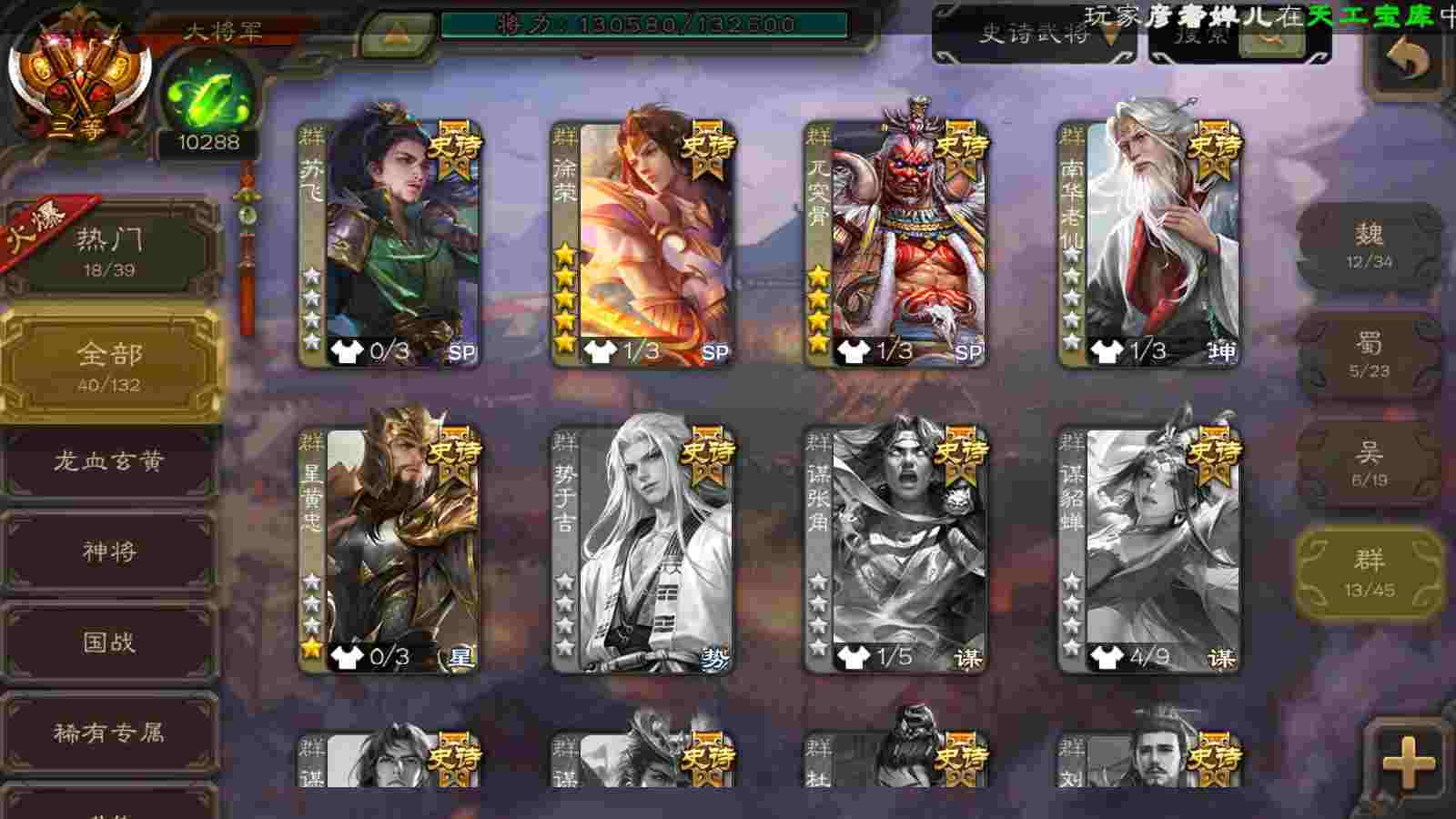 (群雄):刘焉,徐荣,界左慈,南华老仙,麴义,许攸,苏飞,士燮,星黄忠,司马徽,左慈,沮授,兀突骨