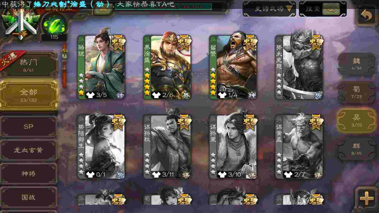 (群雄):祢衡,界左慈,界沮授,麴义,许攸,界李儒,星黄忠,兀突骨