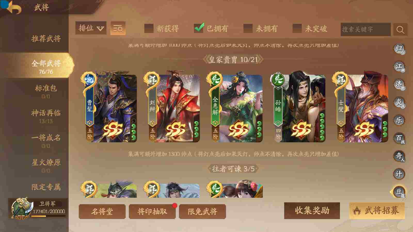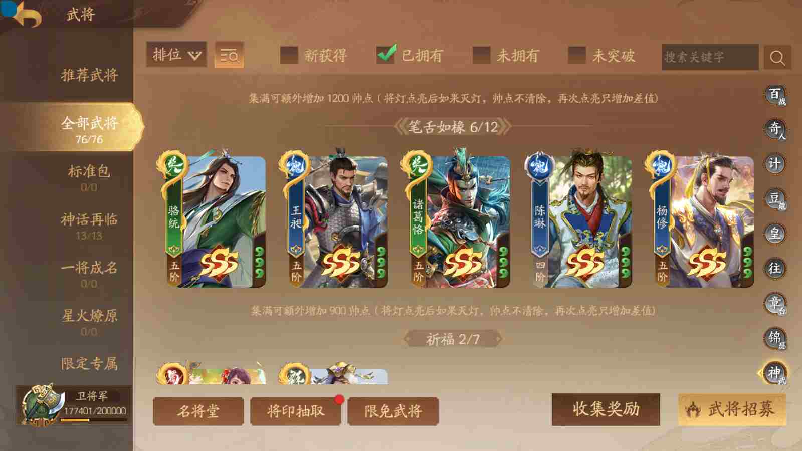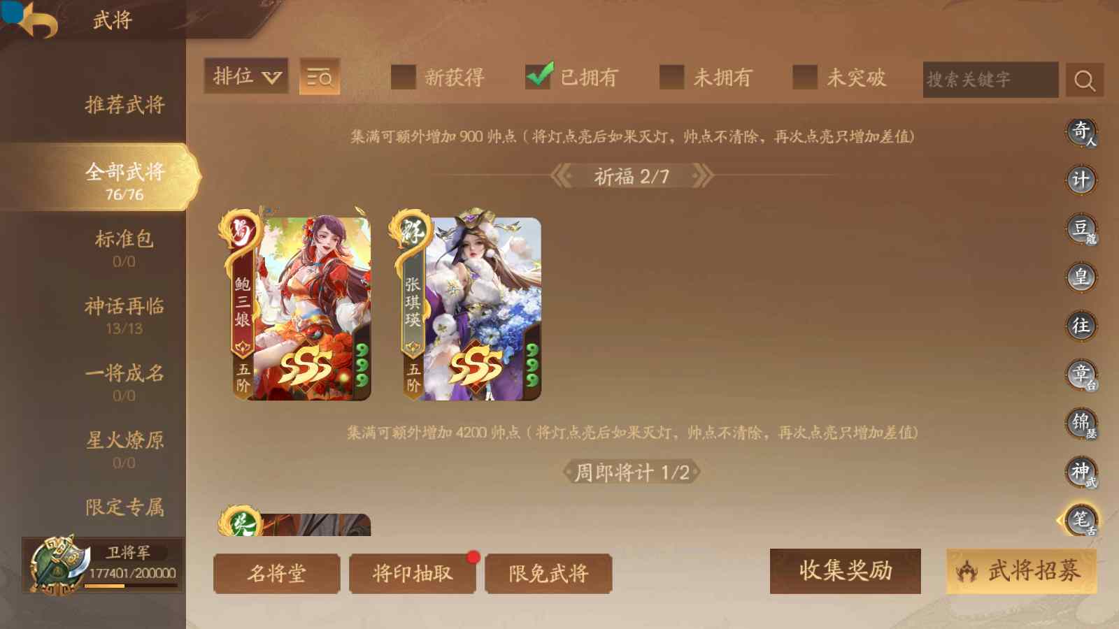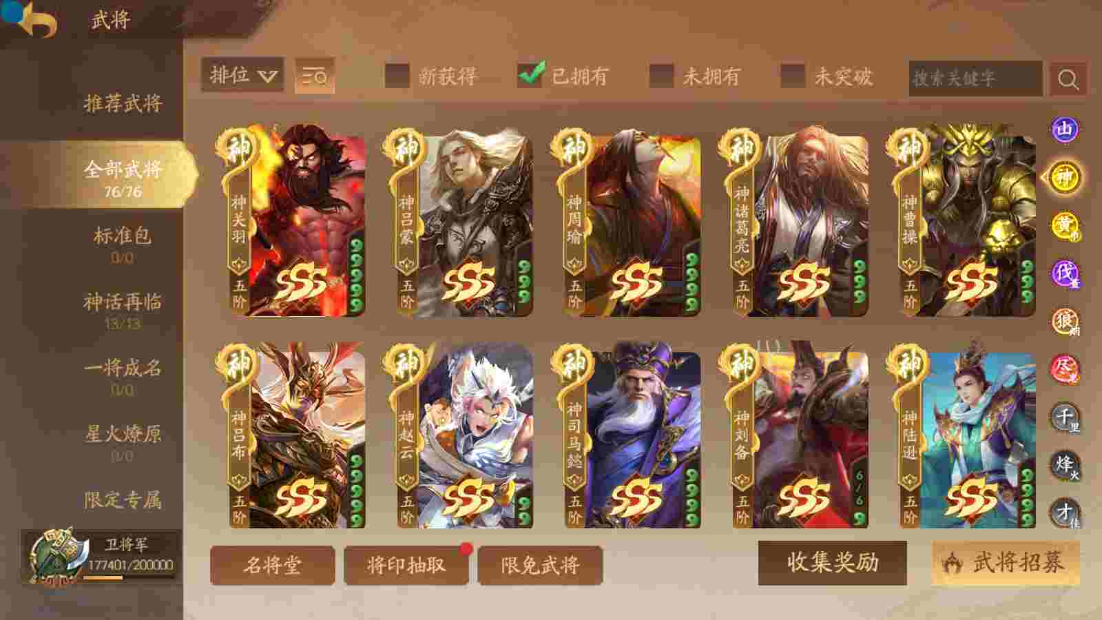 商品编号sa170 编号sa170 武将:神张飞,神姜维,神马超(限动),王荣(绝版+传动),许劭(传动+双限动),董承,曹金玉,管宁,曹髦(绝版),来莺儿(限动),张琪瑛(限动),蒲元(绝动),管辂,葛玄,鲍三娘(限动),滕公主(限动+传动),张嫙,周宣,骆统,全惠解,孙寒华,乐蔡文姬 将灵:SSA年兽,SSA赵襄,SSA曹纯,SSA张琪瑛,SSA关索,SSA小杀 包裹:传世玉3,祈福灯3,V7会员,总武将365,总皮肤1929,总国战101,帅点17.7w