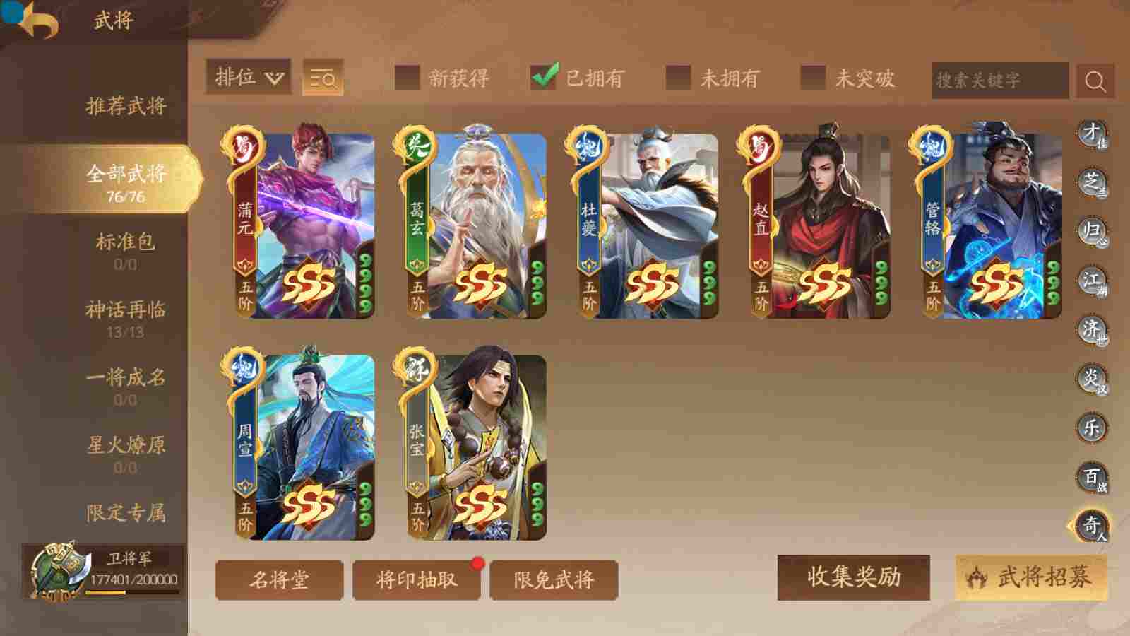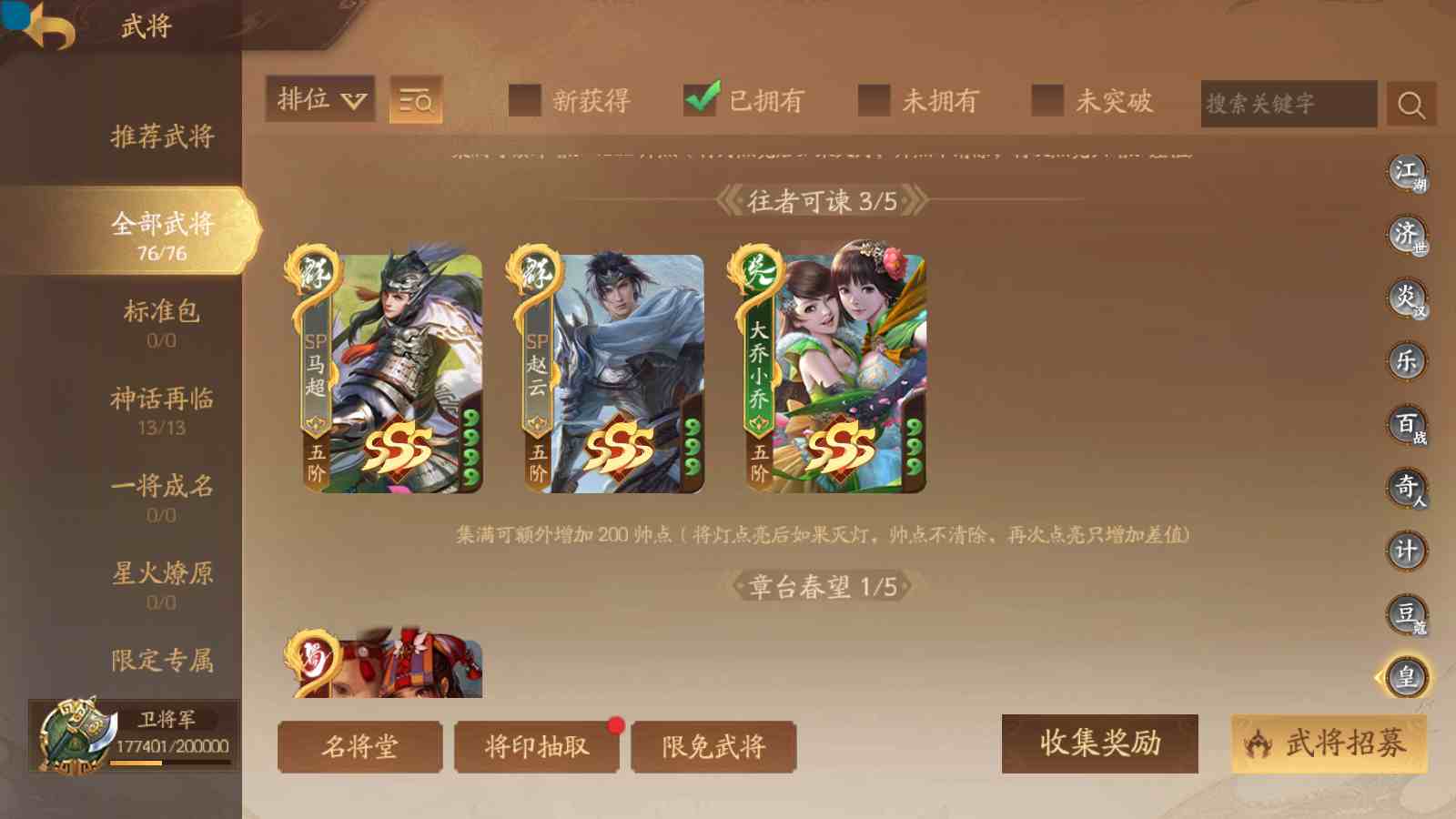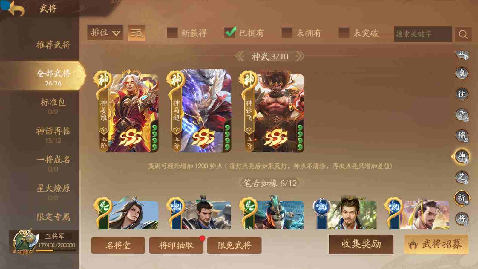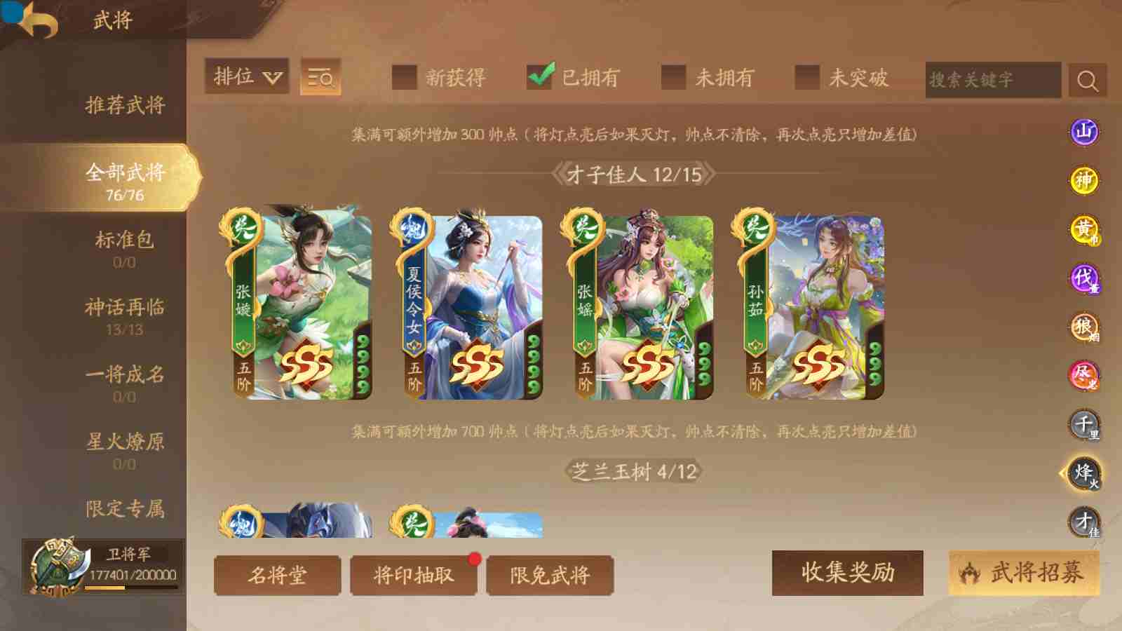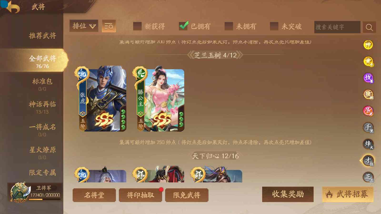 商品编号sa170 编号sa170 武将:神张飞,神姜维,神马超(限动),王荣(绝版+传动),许劭(传动+双限动),董承,曹金玉,管宁,曹髦(绝版),来莺儿(限动),张琪瑛(限动),蒲元(绝动),管辂,葛玄,鲍三娘(限动),滕公主(限动+传动),张嫙,周宣,骆统,全惠解,孙寒华,乐蔡文姬 将灵:SSA年兽,SSA赵襄,SSA曹纯,SSA张琪瑛,SSA关索,SSA小杀 包裹:传世玉3,祈福灯3,V7会员,总武将365,总皮肤1929,总国战101,帅点17.7w