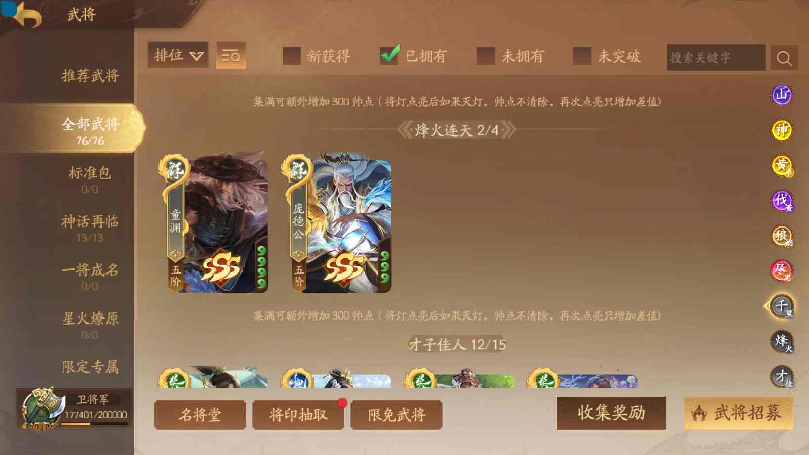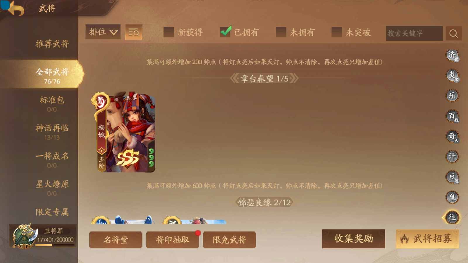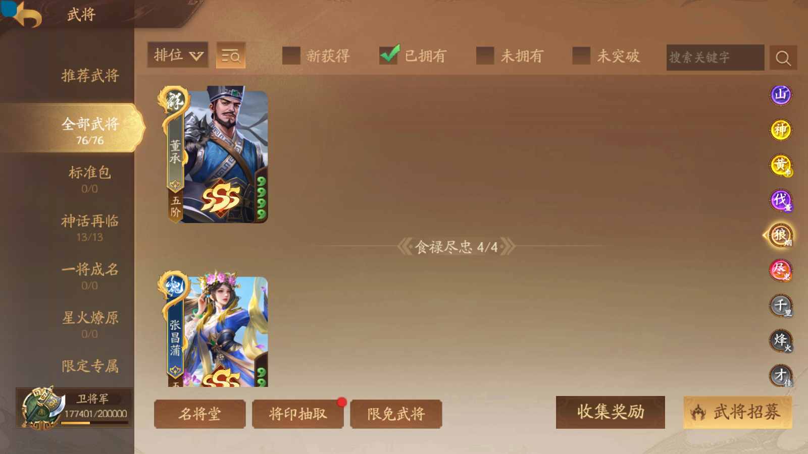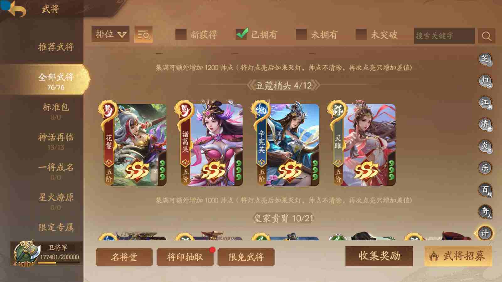商品编号sa170 编号sa170 武将:神张飞,神姜维,神马超(限动),王荣(绝版+传动),许劭(传动+双限动),董承,曹金玉,管宁,曹髦(绝版),来莺儿(限动),张琪瑛(限动),蒲元(绝动),管辂,葛玄,鲍三娘(限动),滕公主(限动+传动),张嫙,周宣,骆统,全惠解,孙寒华,乐蔡文姬 将灵:SSA年兽,SSA赵襄,SSA曹纯,SSA张琪瑛,SSA关索,SSA小杀 包裹:传世玉3,祈福灯3,V7会员,总武将365,总皮肤1929,总国战101,帅点17.7w