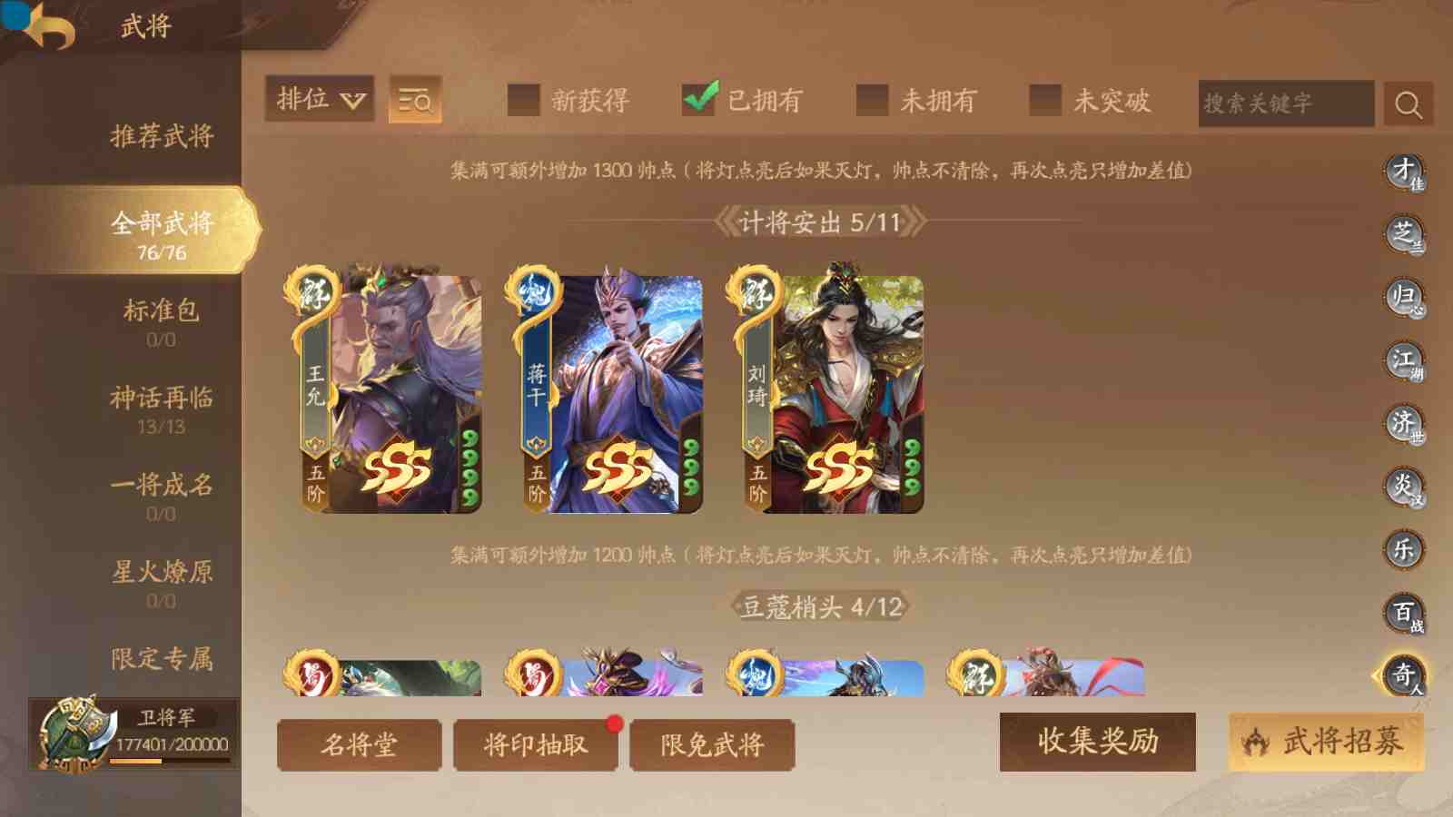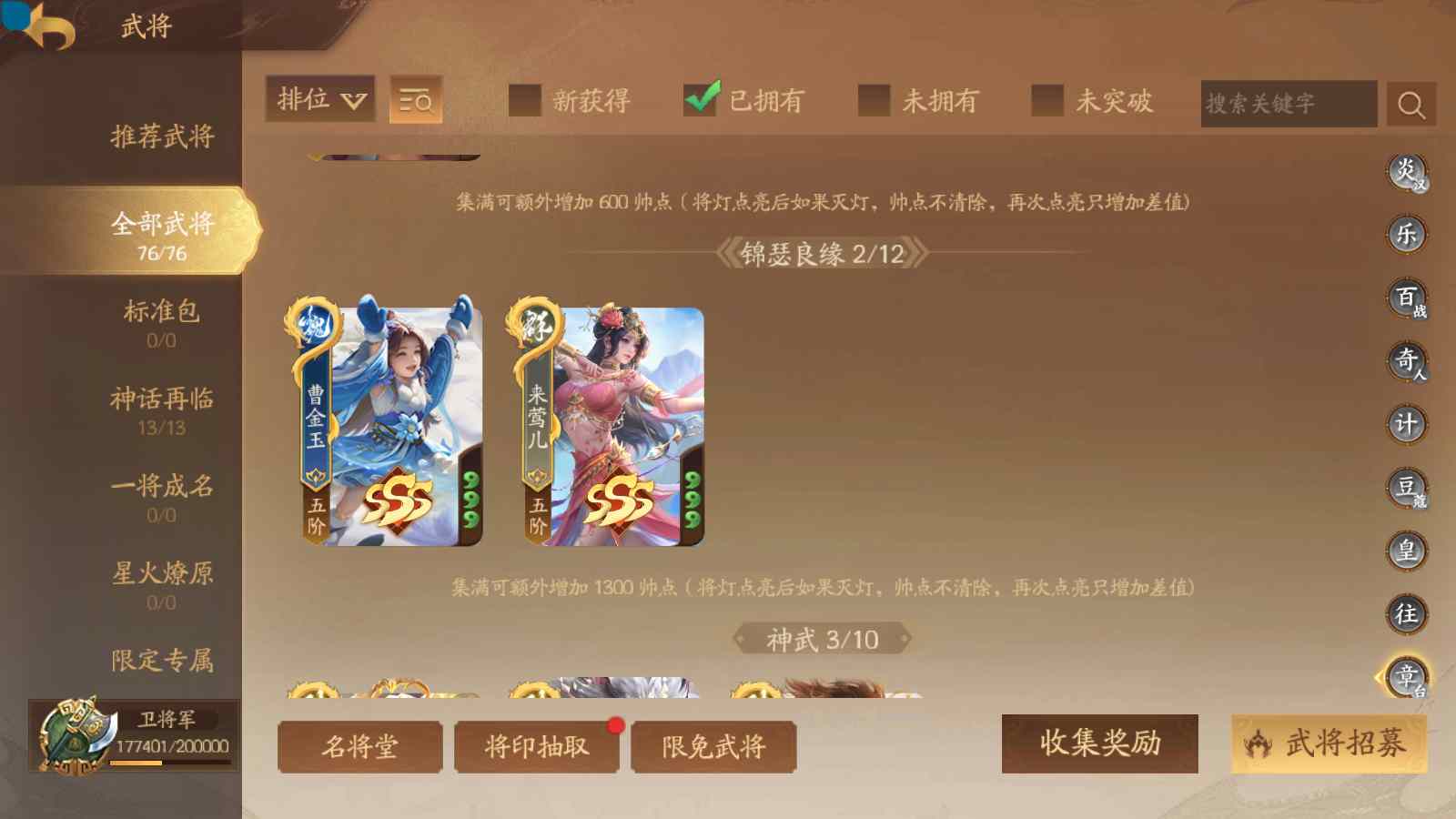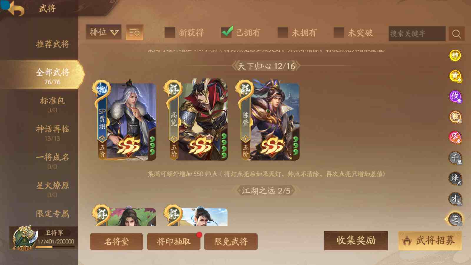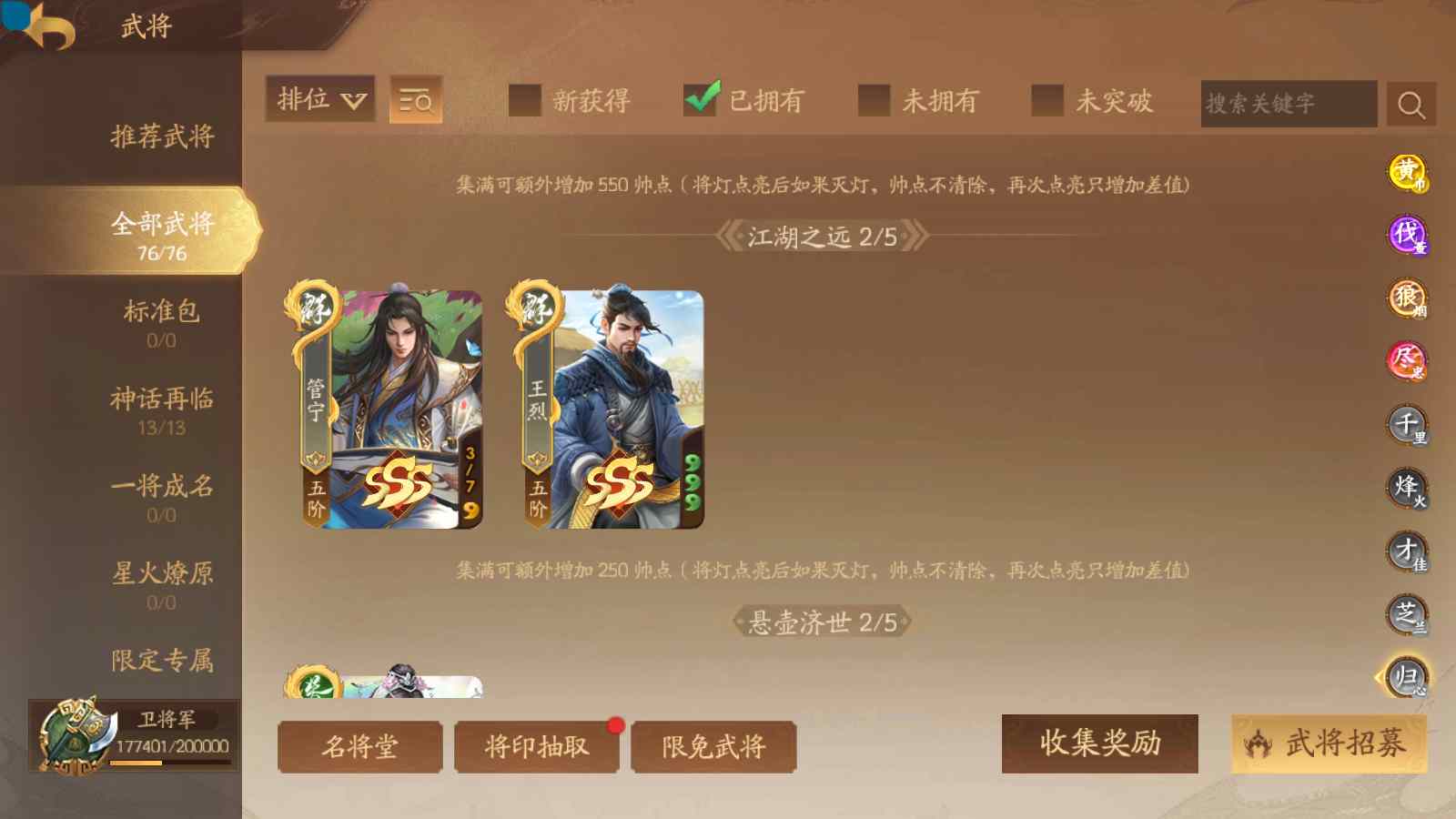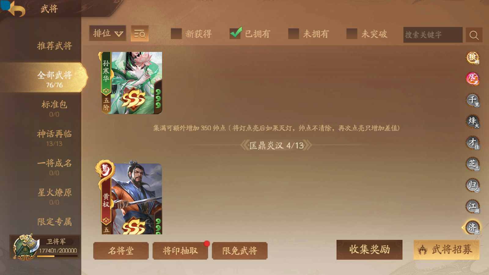 商品编号sa170 编号sa170 武将:神张飞,神姜维,神马超(限动),王荣(绝版+传动),许劭(传动+双限动),董承,曹金玉,管宁,曹髦(绝版),来莺儿(限动),张琪瑛(限动),蒲元(绝动),管辂,葛玄,鲍三娘(限动),滕公主(限动+传动),张嫙,周宣,骆统,全惠解,孙寒华,乐蔡文姬 将灵:SSA年兽,SSA赵襄,SSA曹纯,SSA张琪瑛,SSA关索,SSA小杀 包裹:传世玉3,祈福灯3,V7会员,总武将365,总皮肤1929,总国战101,帅点17.7w