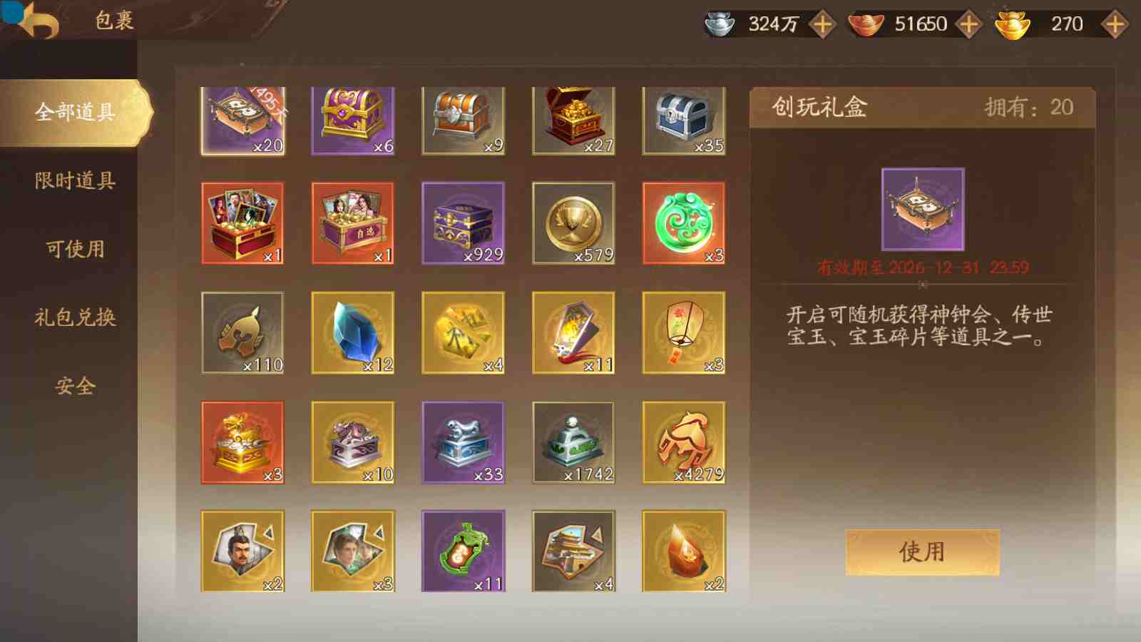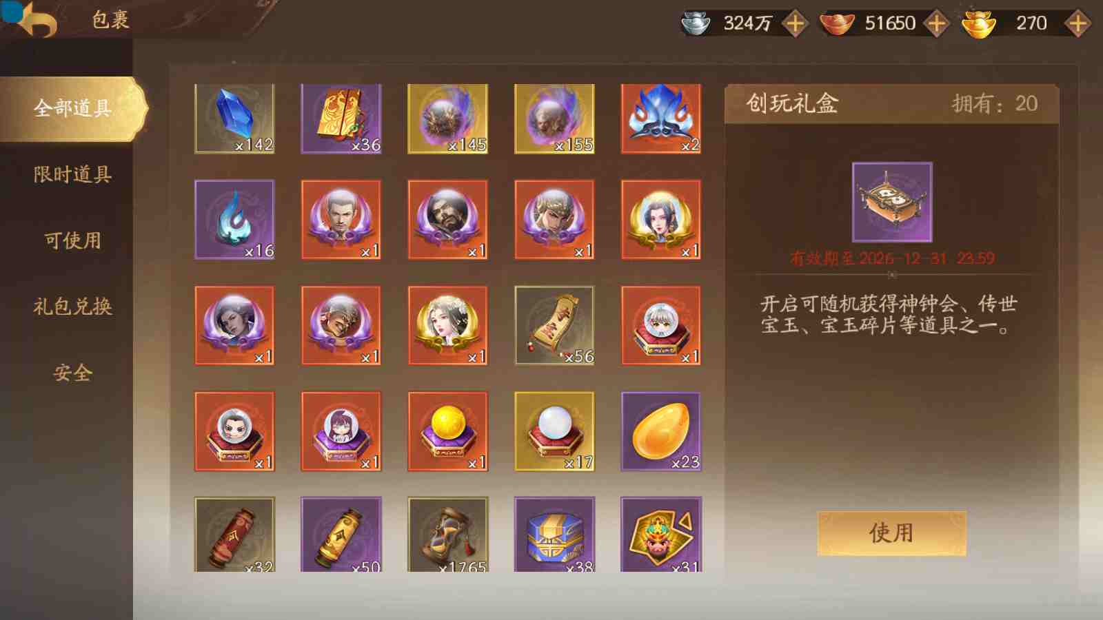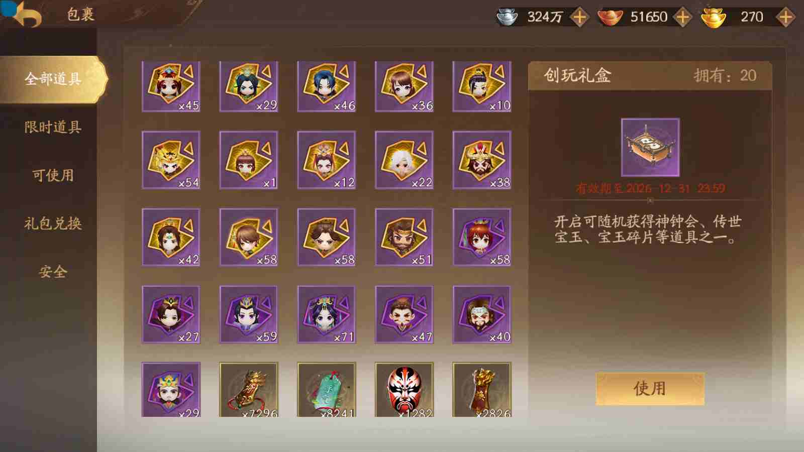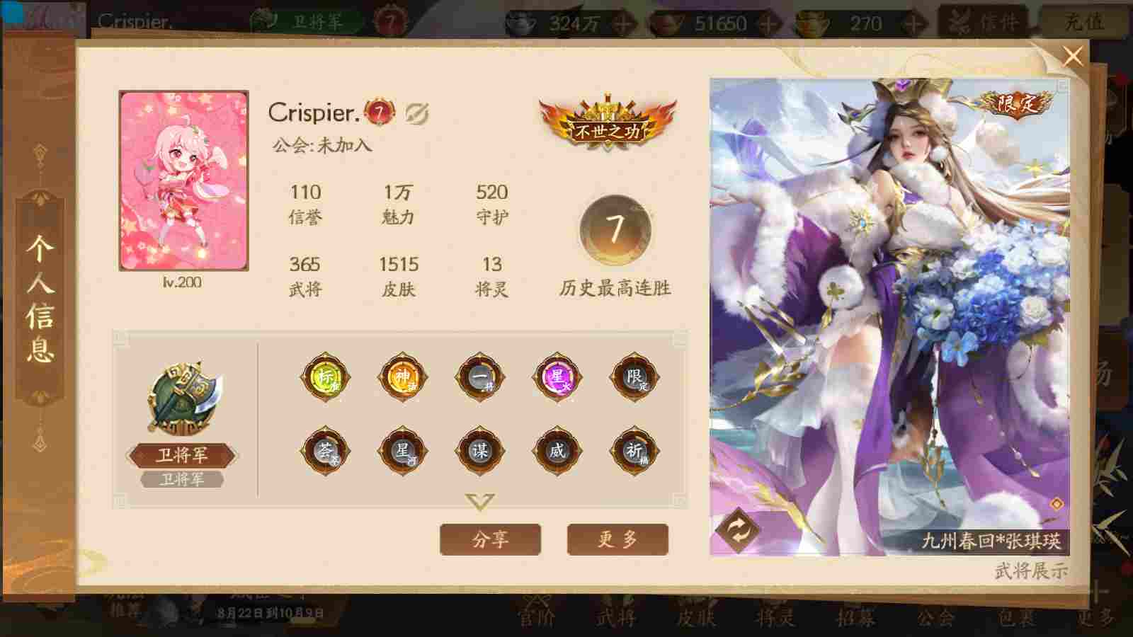 商品编号sa170 编号sa170 武将:神张飞,神姜维,神马超(限动),王荣(绝版+传动),许劭(传动+双限动),董承,曹金玉,管宁,曹髦(绝版),来莺儿(限动),张琪瑛(限动),蒲元(绝动),管辂,葛玄,鲍三娘(限动),滕公主(限动+传动),张嫙,周宣,骆统,全惠解,孙寒华,乐蔡文姬 将灵:SSA年兽,SSA赵襄,SSA曹纯,SSA张琪瑛,SSA关索,SSA小杀 包裹:传世玉3,祈福灯3,V7会员,总武将365,总皮肤1929,总国战101,帅点17.7w