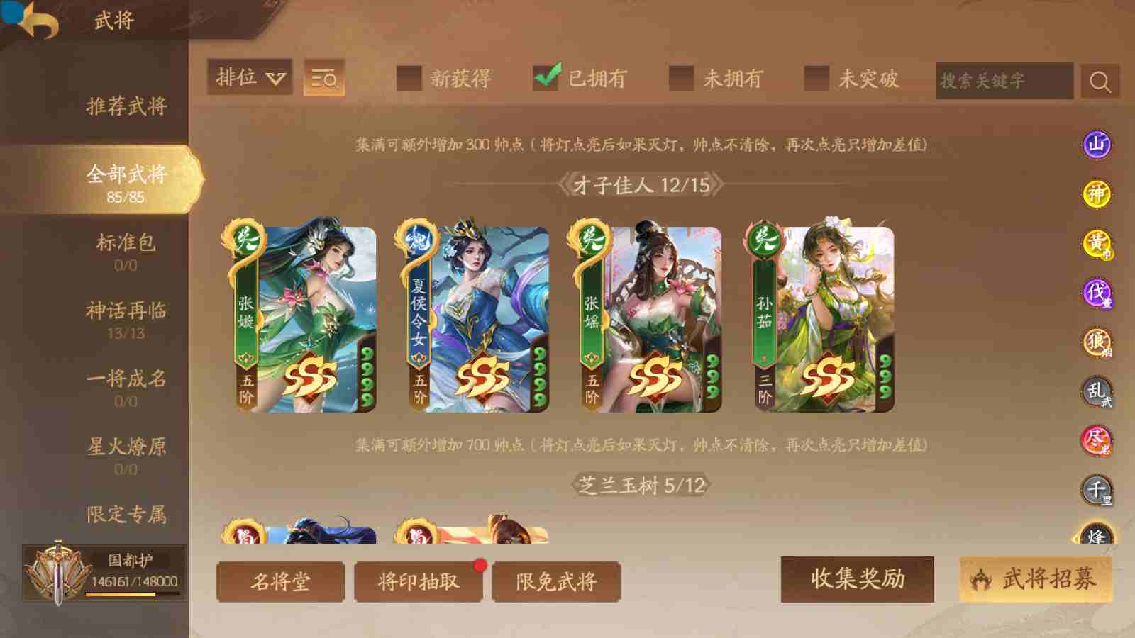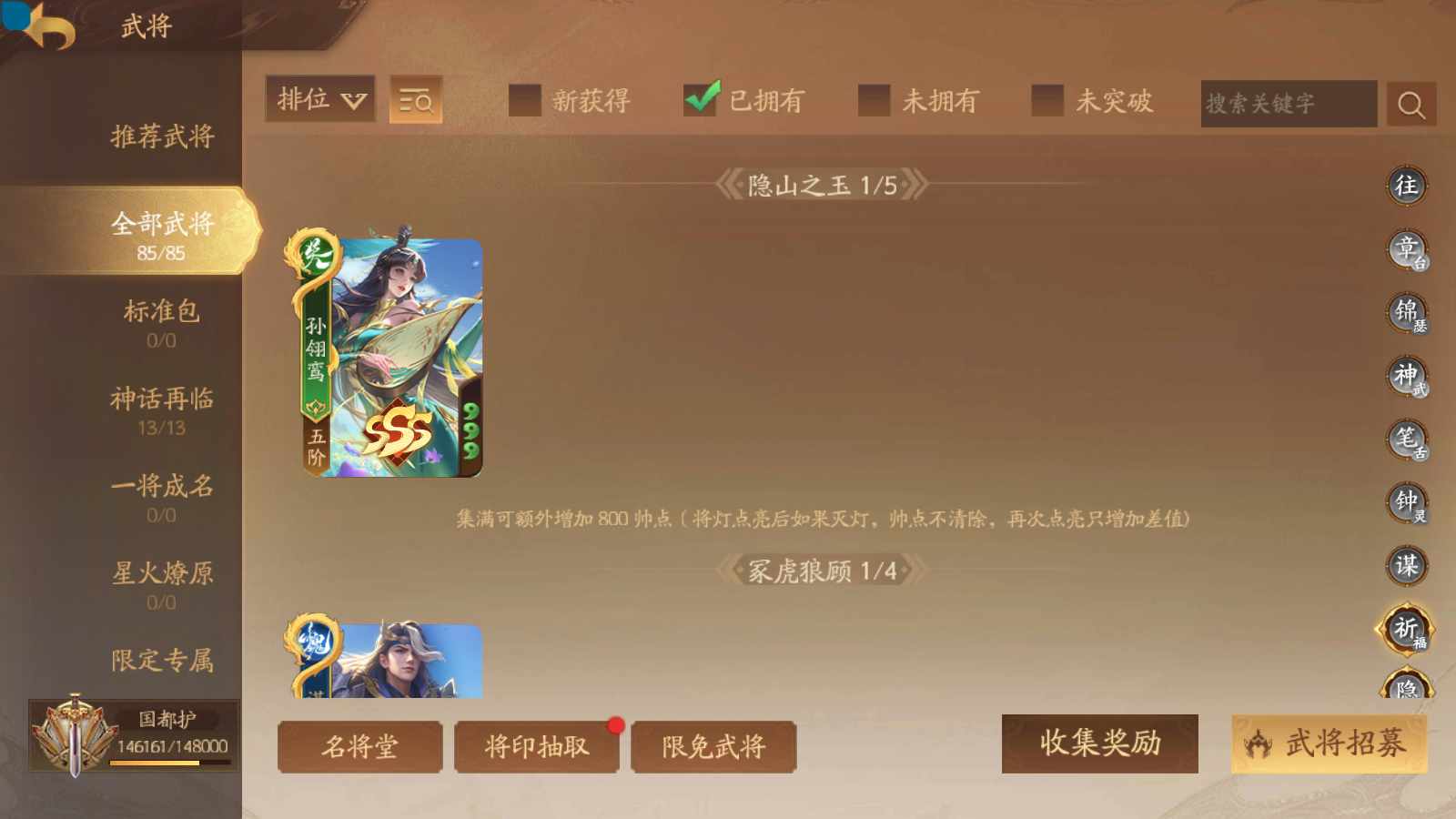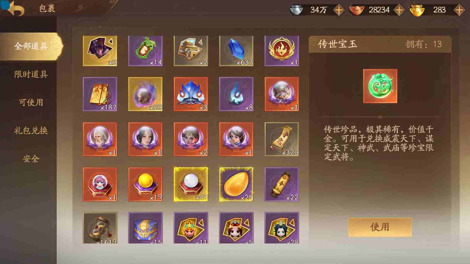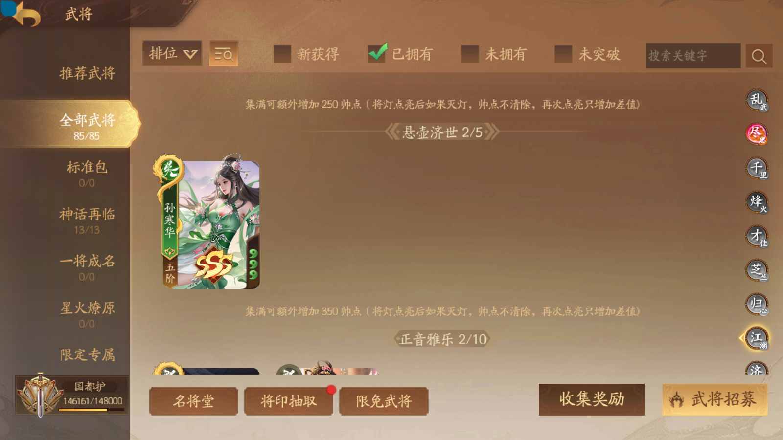 商品编号sa171 编号sa171 武将:神姜维,神马超(限动),神张飞(限动),神黄忠,王荣(绝版),许劭,董承,关索,赵襄(限动),曹婴,南华老仙,曹金玉(限动),管宁,曹髦(绝版),来莺儿,蒲元,徐荣,留赞,孙翊,张嫙,周宣,丁尚涴,骆统,郭照,孙翎鸾,笮融,薛灵芸,芮姬,全惠解,田尚衣,孙寒华,乐蔡文姬 将灵:SSA曹纯,SSA小闪 包裹:传世玉13,祈福灯10,V7会员,总武将378,总皮肤1817,总国战101,帅点14.6w