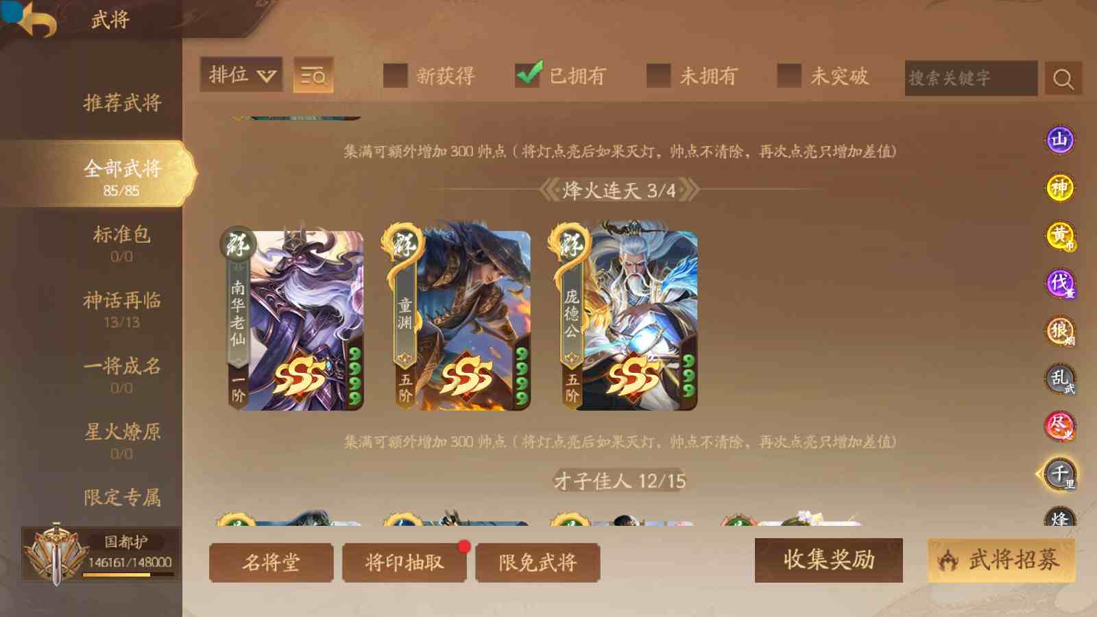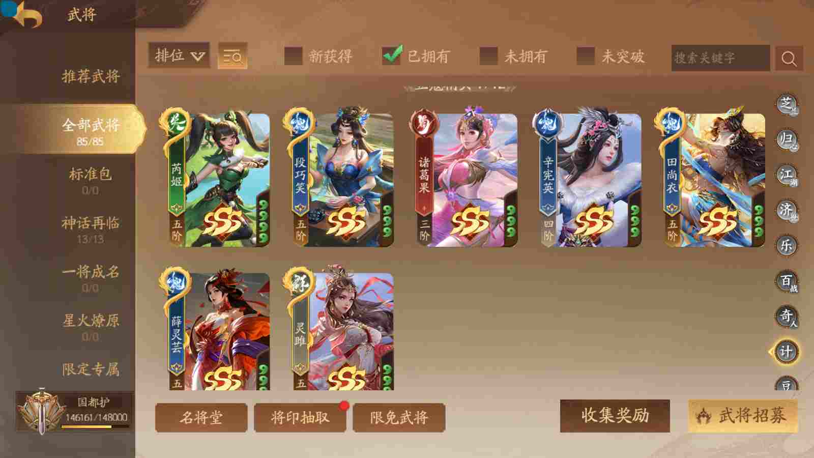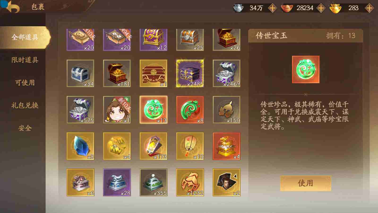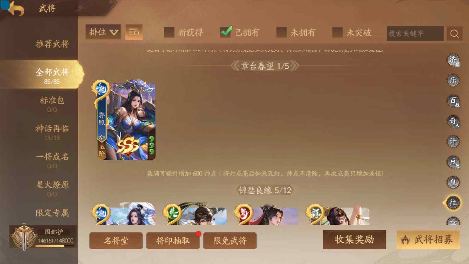 商品编号sa171 编号sa171 武将:神姜维,神马超(限动),神张飞(限动),神黄忠,王荣(绝版),许劭,董承,关索,赵襄(限动),曹婴,南华老仙,曹金玉(限动),管宁,曹髦(绝版),来莺儿,蒲元,徐荣,留赞,孙翊,张嫙,周宣,丁尚涴,骆统,郭照,孙翎鸾,笮融,薛灵芸,芮姬,全惠解,田尚衣,孙寒华,乐蔡文姬 将灵:SSA曹纯,SSA小闪 包裹:传世玉13,祈福灯10,V7会员,总武将378,总皮肤1817,总国战101,帅点14.6w