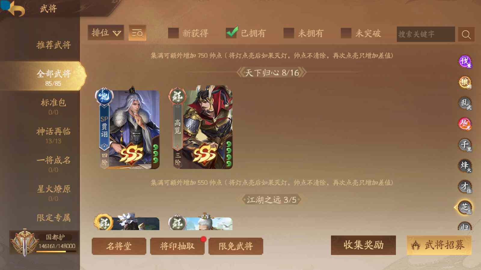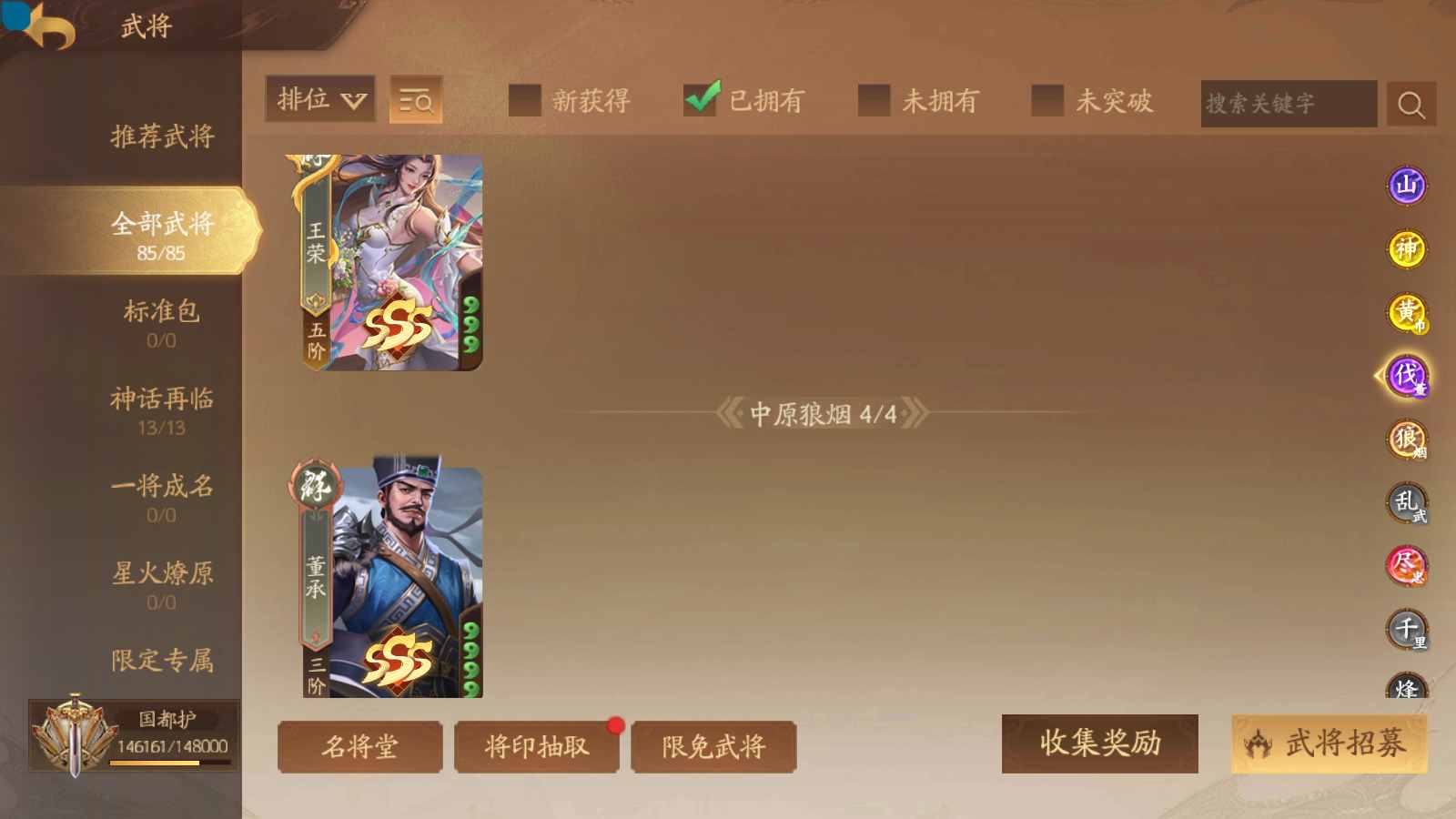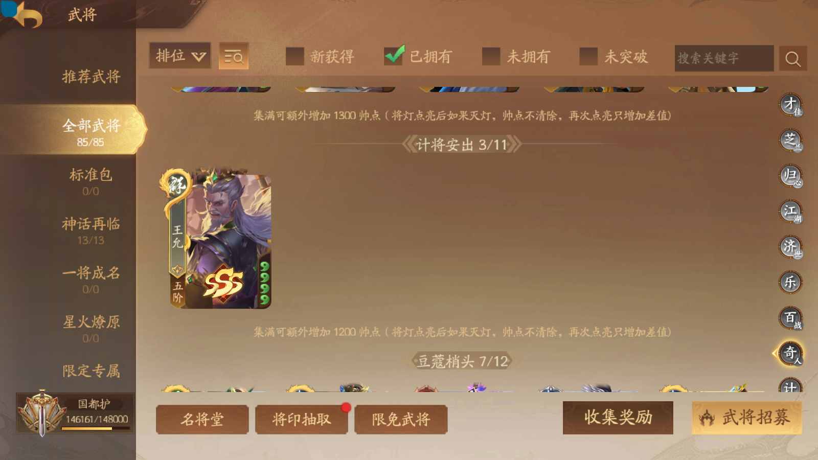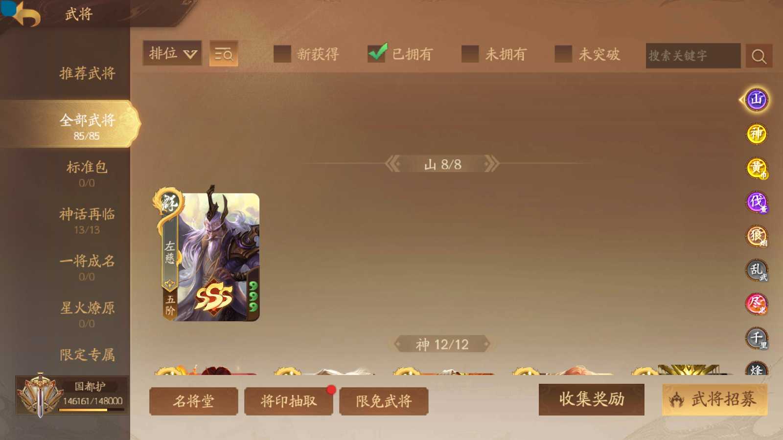 商品编号sa171 编号sa171 武将:神姜维,神马超(限动),神张飞(限动),神黄忠,王荣(绝版),许劭,董承,关索,赵襄(限动),曹婴,南华老仙,曹金玉(限动),管宁,曹髦(绝版),来莺儿,蒲元,徐荣,留赞,孙翊,张嫙,周宣,丁尚涴,骆统,郭照,孙翎鸾,笮融,薛灵芸,芮姬,全惠解,田尚衣,孙寒华,乐蔡文姬 将灵:SSA曹纯,SSA小闪 包裹:传世玉13,祈福灯10,V7会员,总武将378,总皮肤1817,总国战101,帅点14.6w