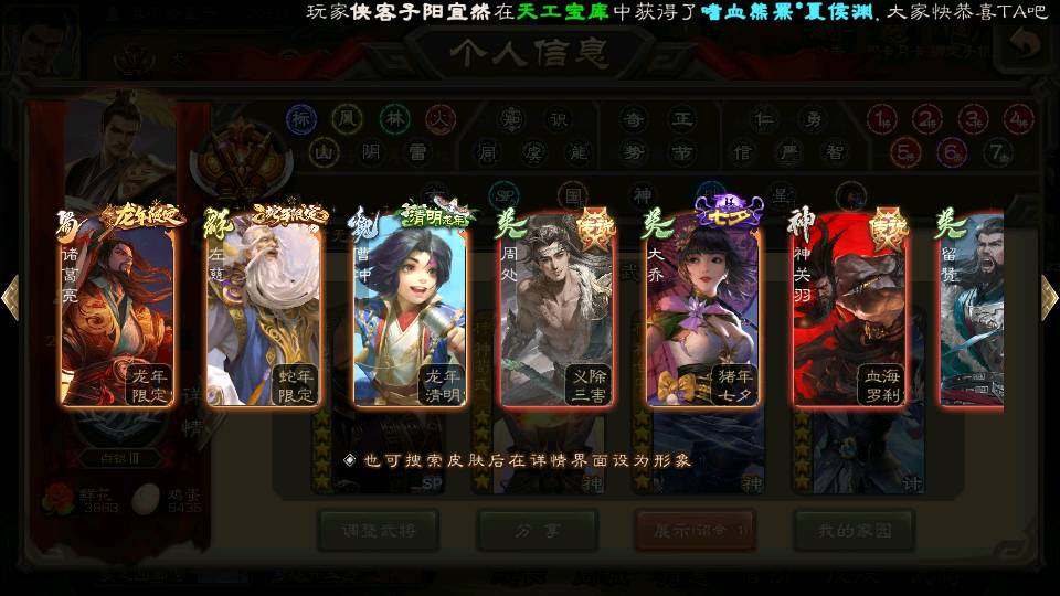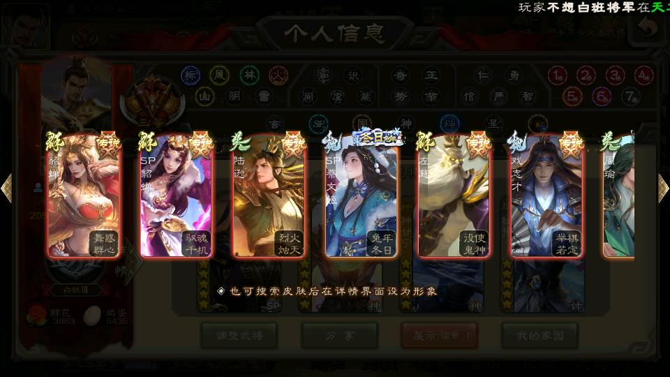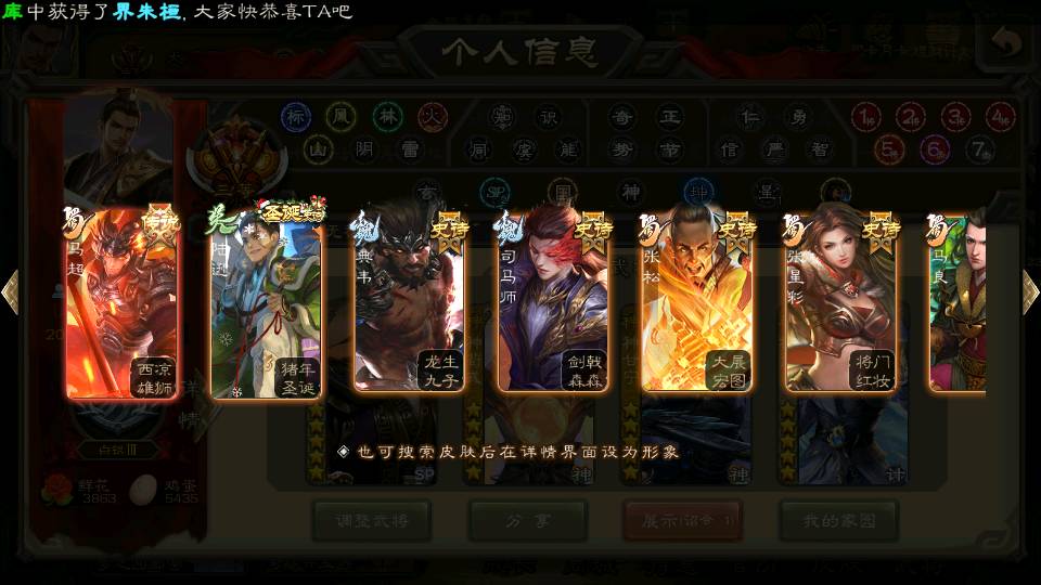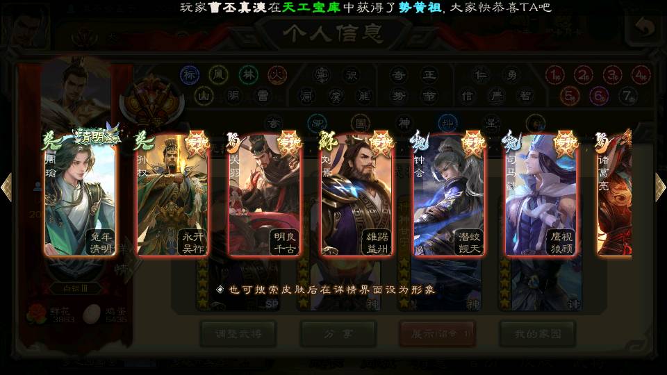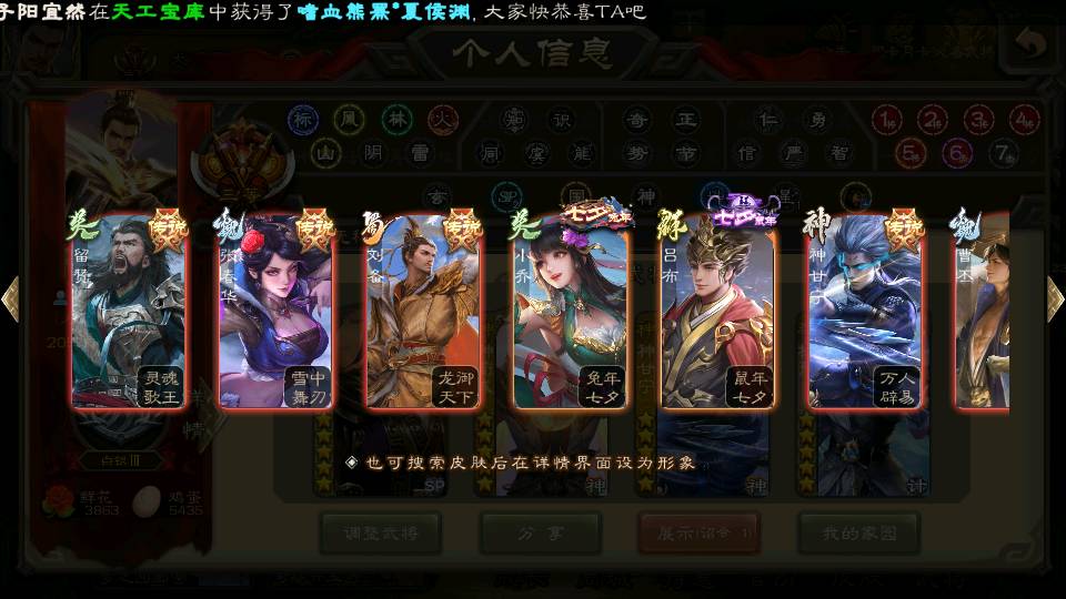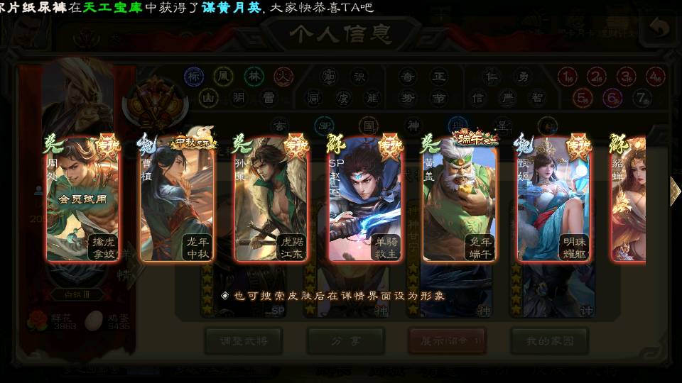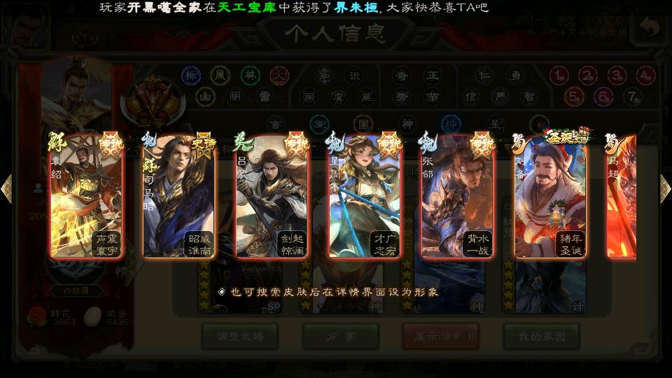 商品编号22452 全部皮肤431,动态皮肤44,全部武将355,排位武将99,国战武将88,史诗武将50,界钟会回廊,神荀彧动皮,杜预动皮,欢乐豆6w