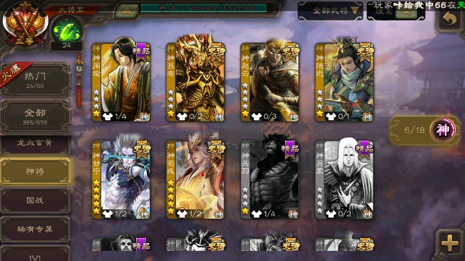 (神将):神荀彧,神甘宁,神陆逊,神赵云,神吕布