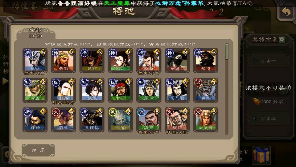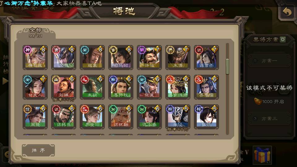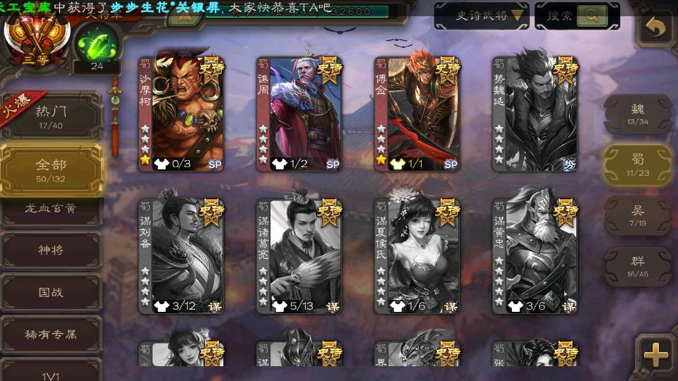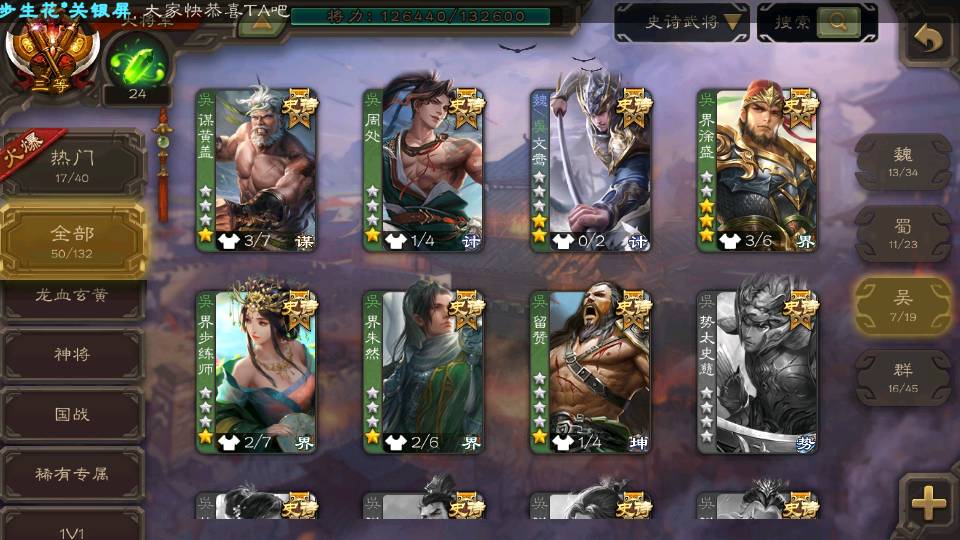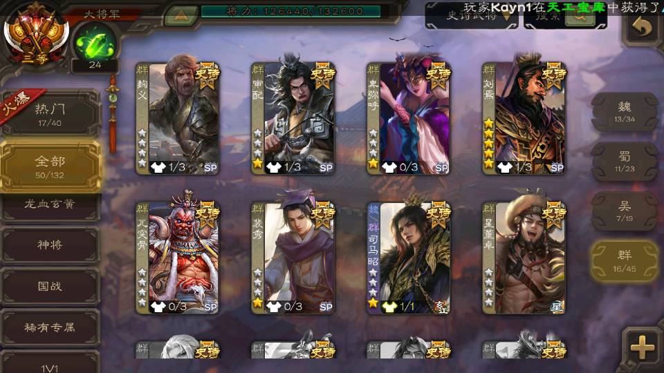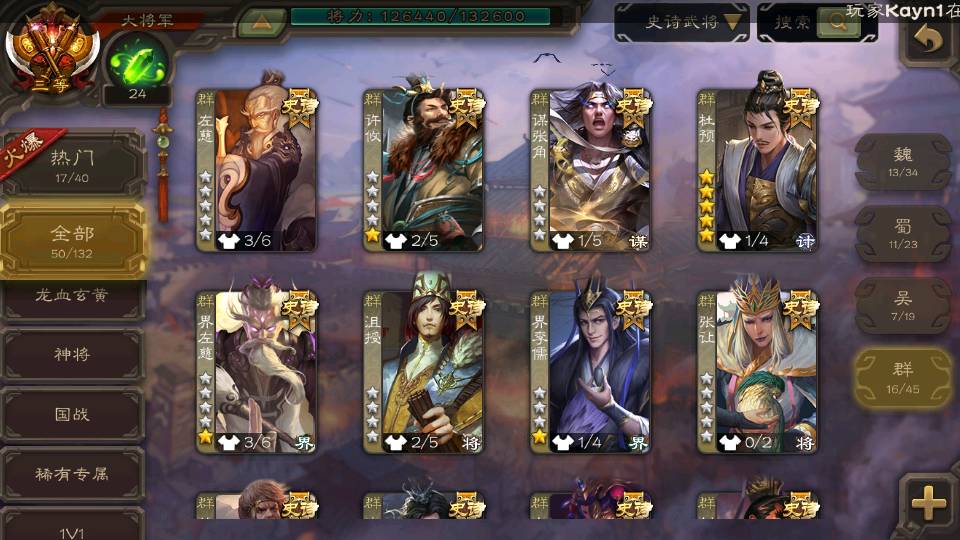 (群雄):刘焉,杜预,界左慈,麴义,许攸,星董卓,司马昭,张让,界李儒,裴秀,卑弥呼,谋张角,审配,左慈,沮授,兀突骨