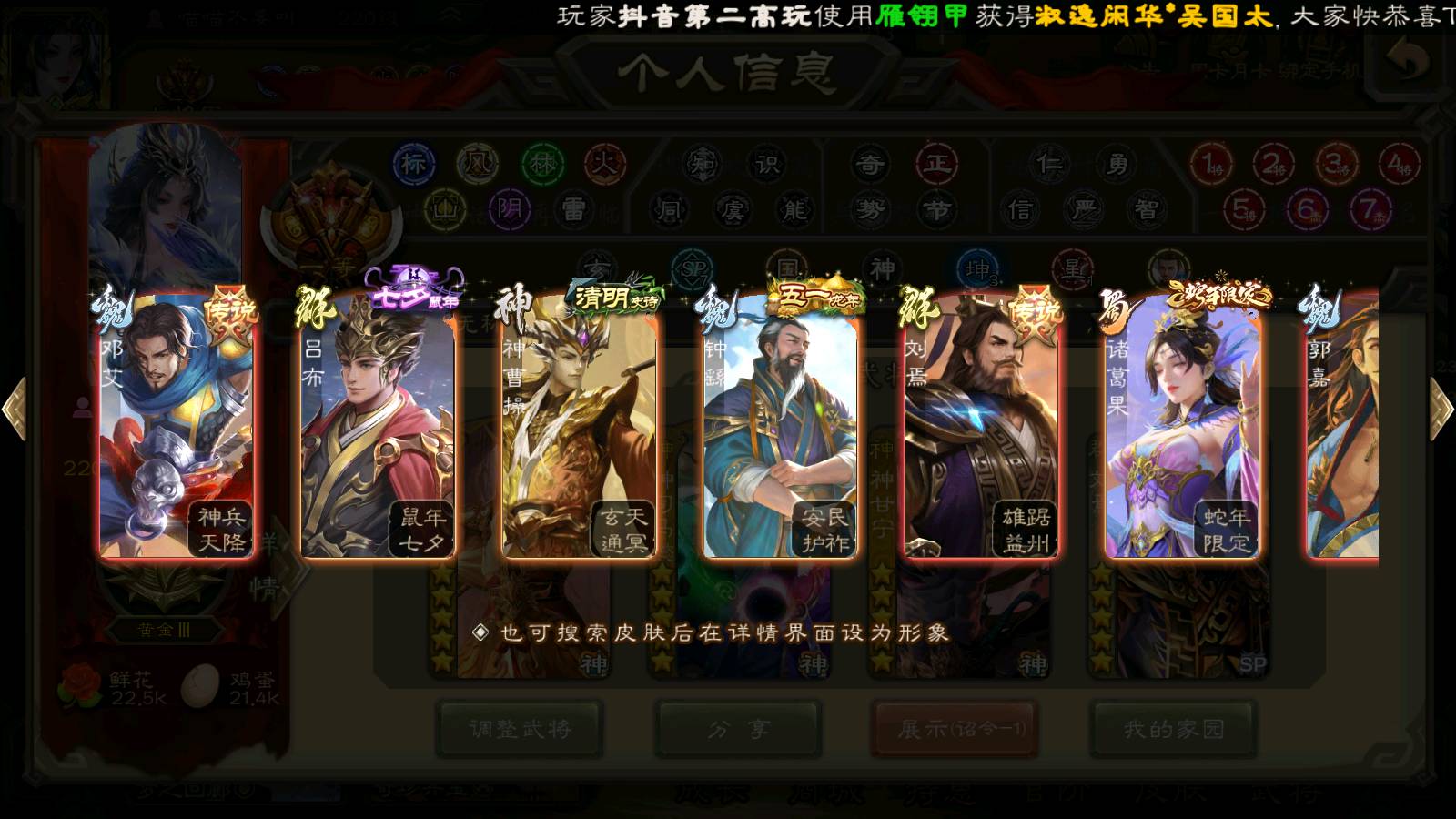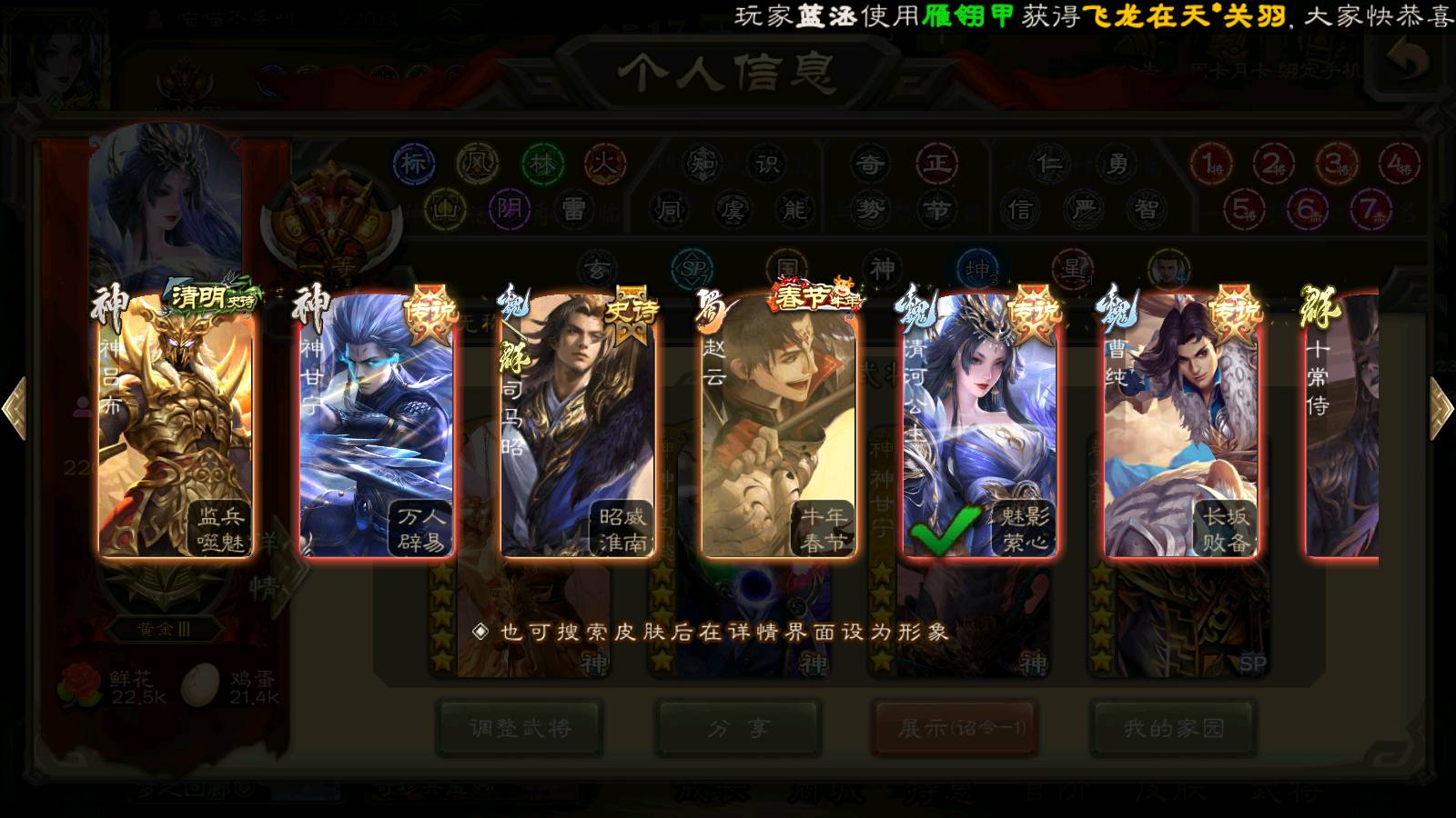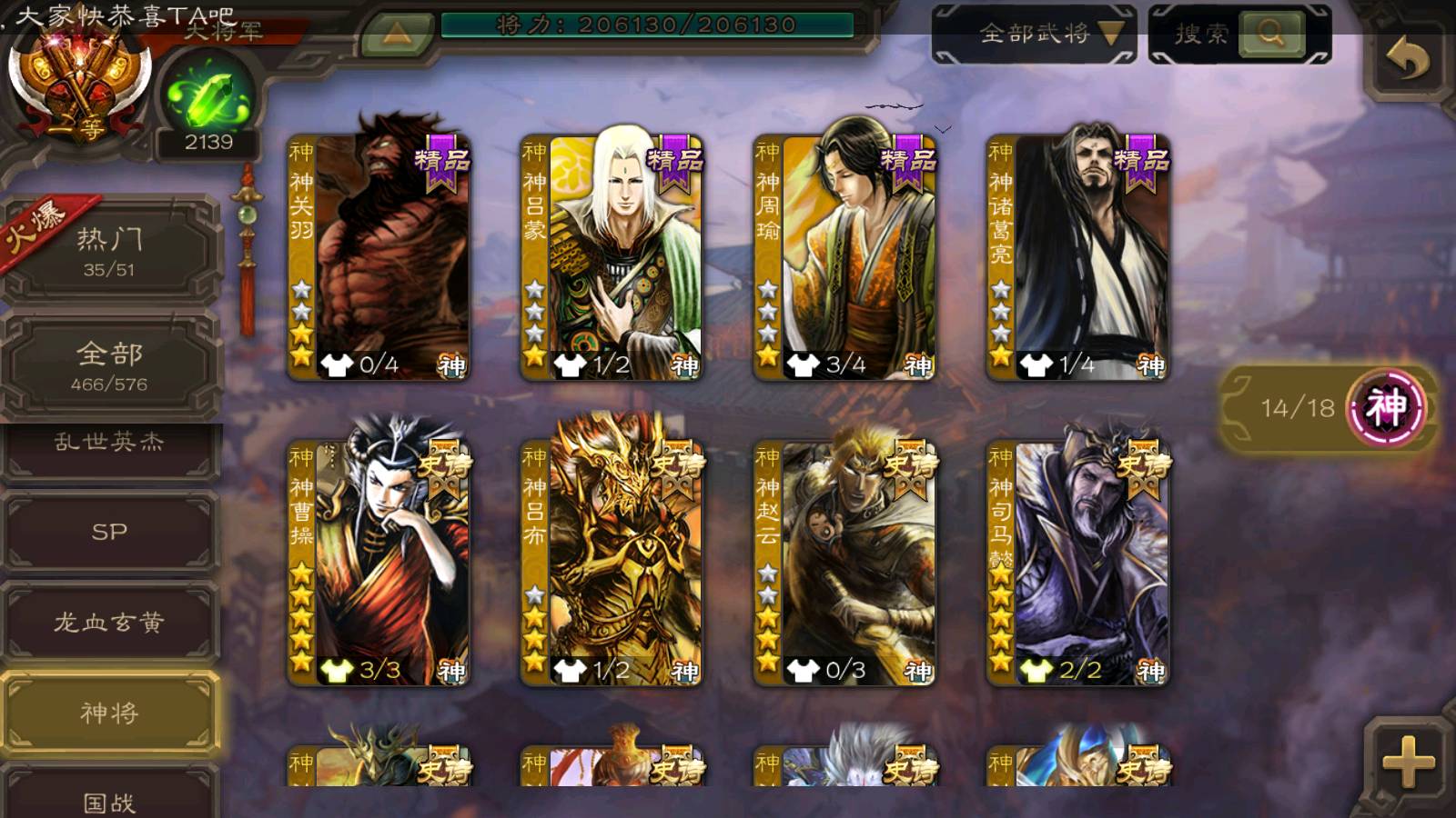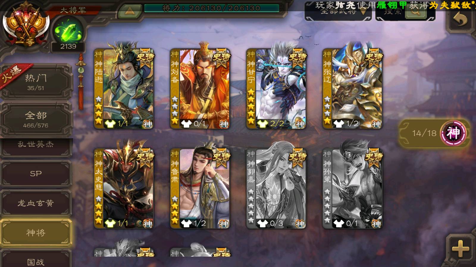 (神将):神甘宁,神曹操,神鲁肃,神司马懿,神太史慈,神陆逊,神赵云,神吕布,神刘备,神张辽