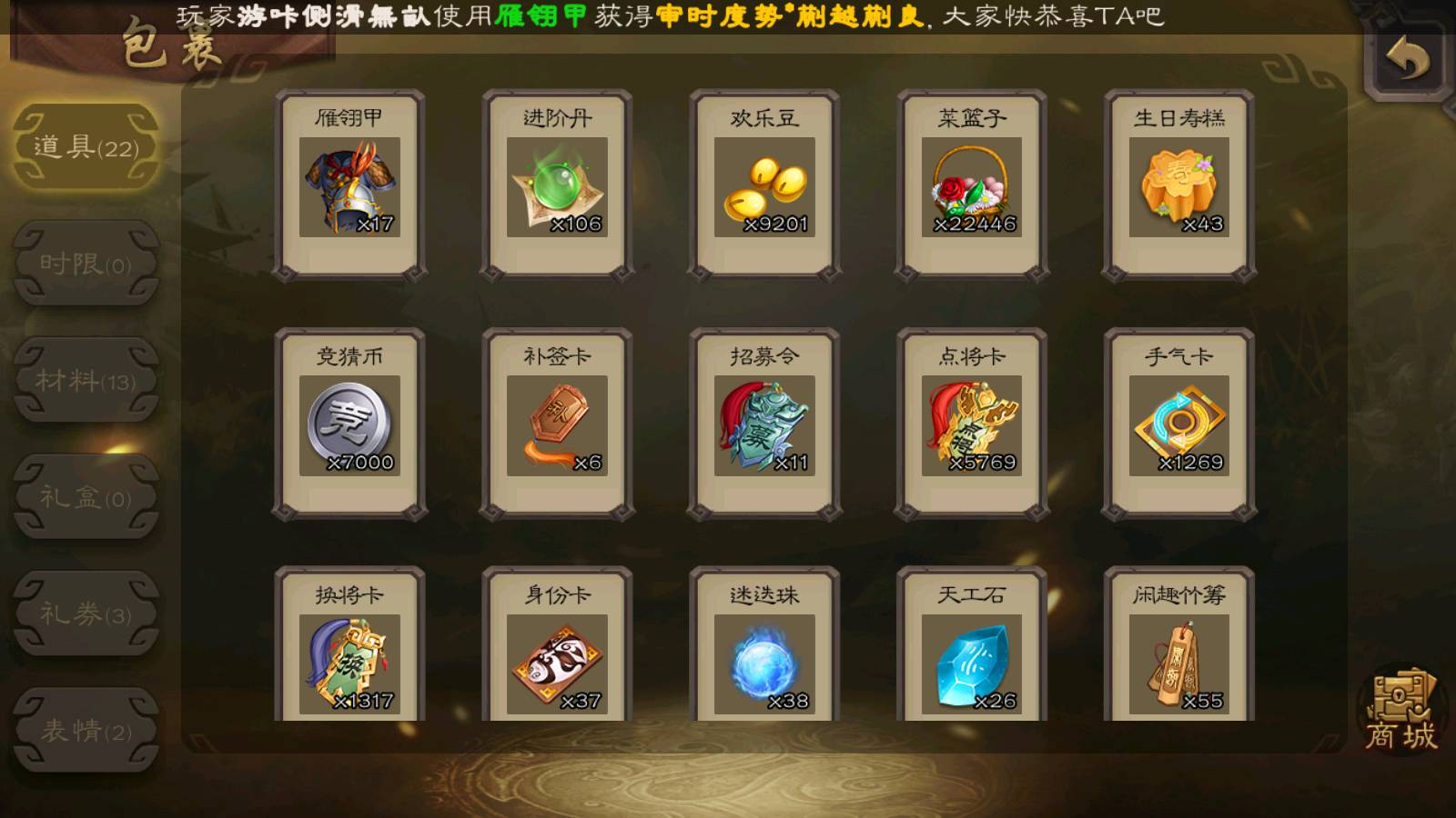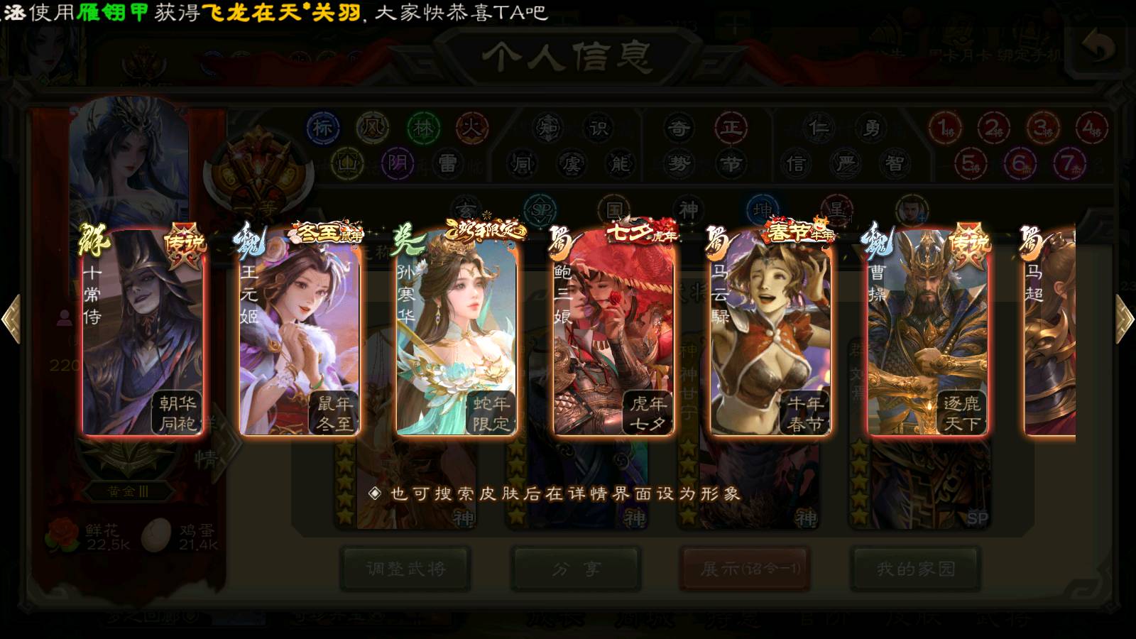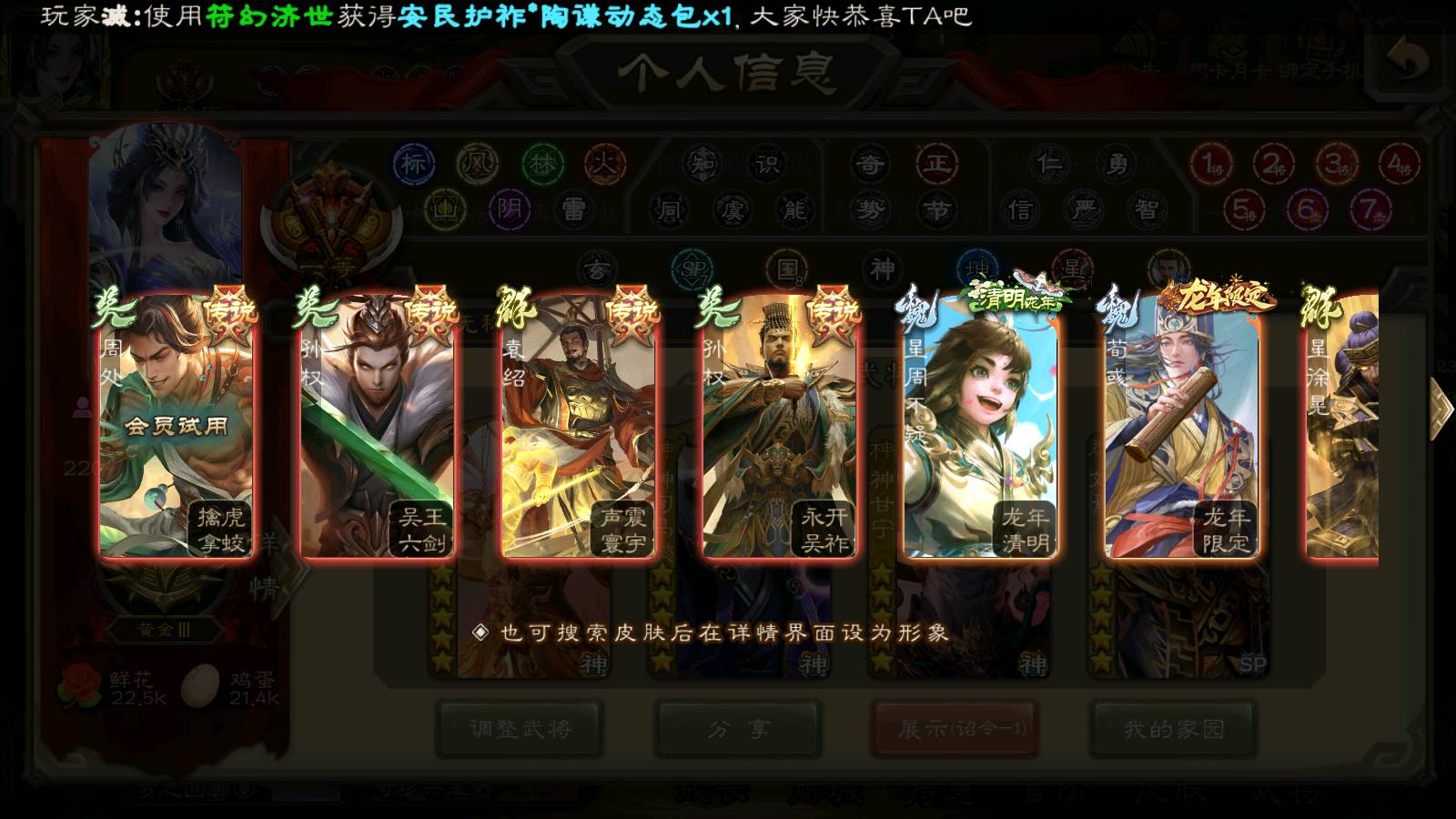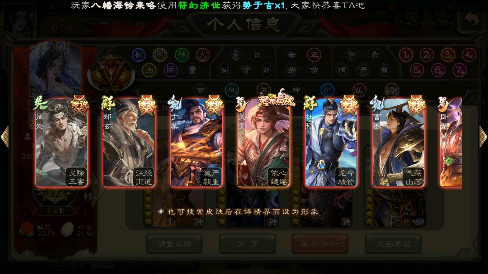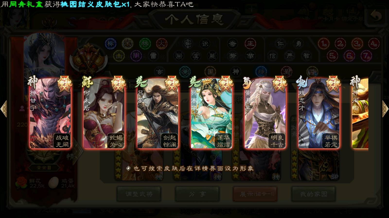 (群雄):刘焉,徐荣,杜预,祢衡,友诸葛亮,界左慈,界沮授,麴义,许攸,十常侍,星董卓,司马昭,张让,界李儒,苏飞,庞德公,星甘宁,势于吉,张琪瑛,卑弥呼,士燮,谋张角,王允,公孙康,郑玄,陶谦,审配,星黄忠,司马徽,左慈,沮授,兀突骨