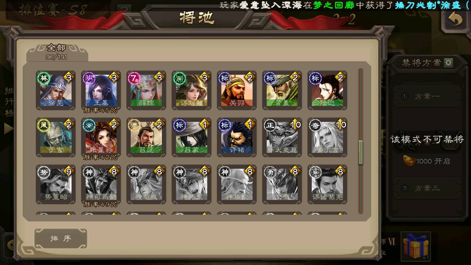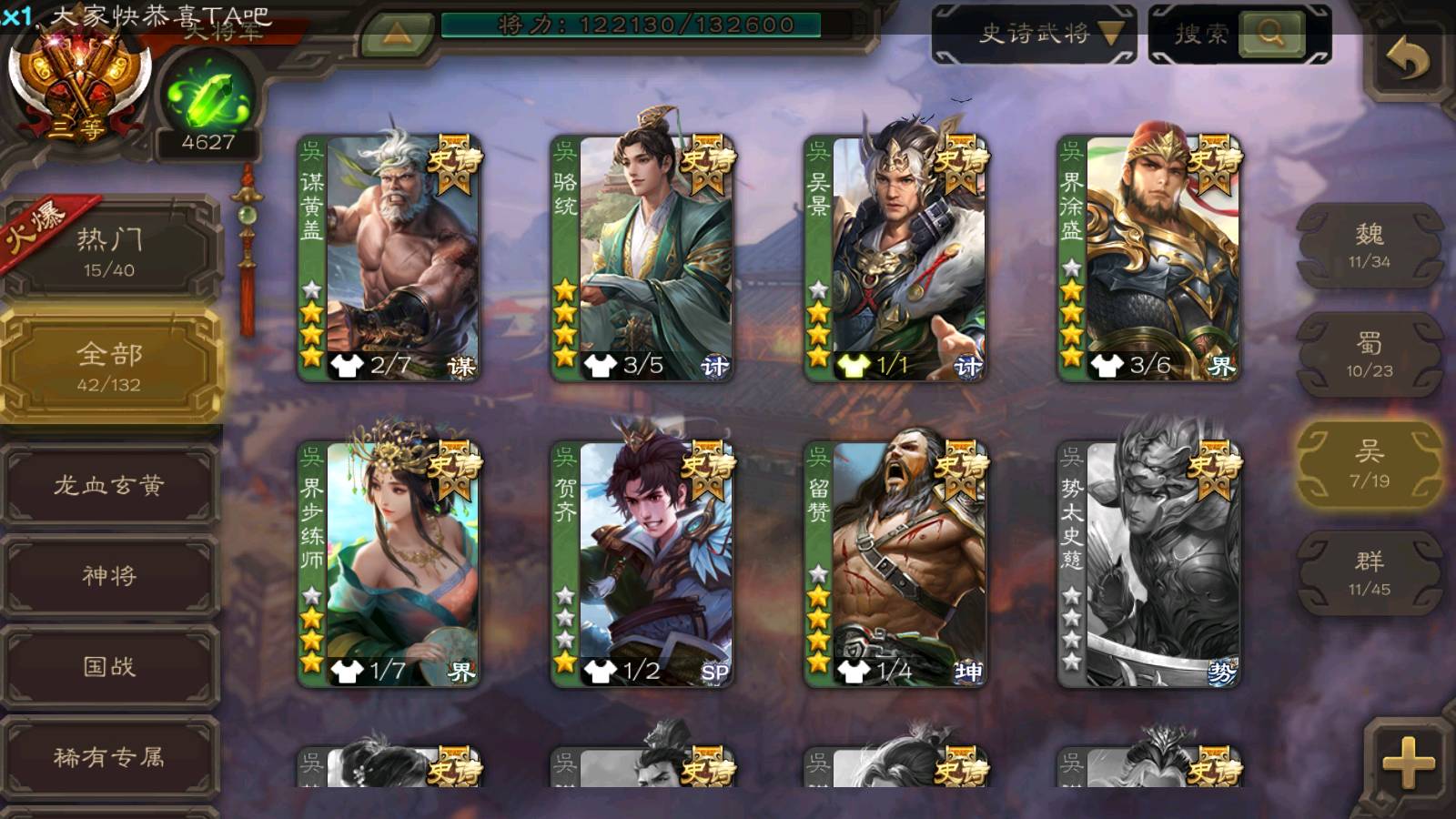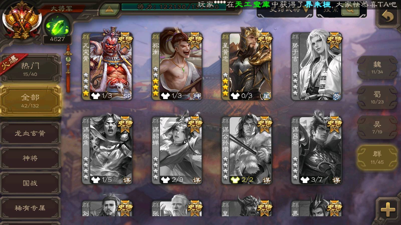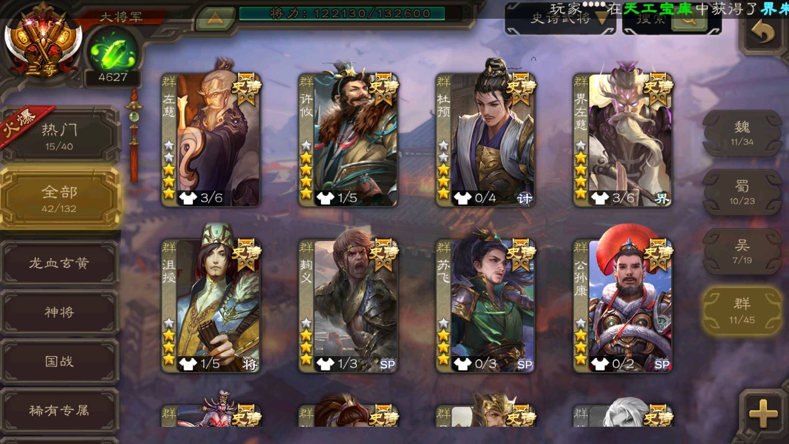 (群雄):杜预,祢衡,界左慈,麴义,许攸,苏飞,公孙康,星黄忠,左慈,沮授,兀突骨