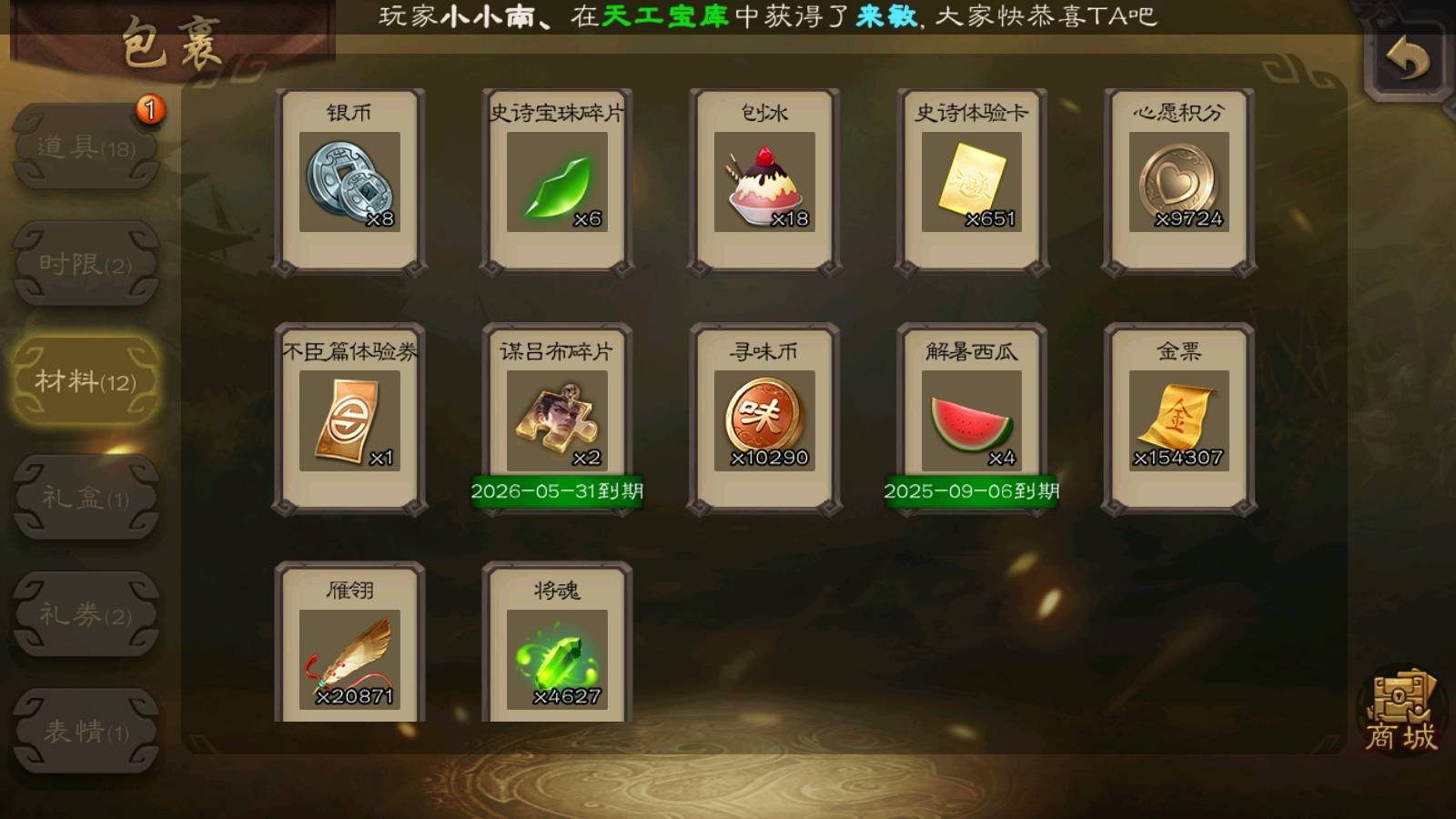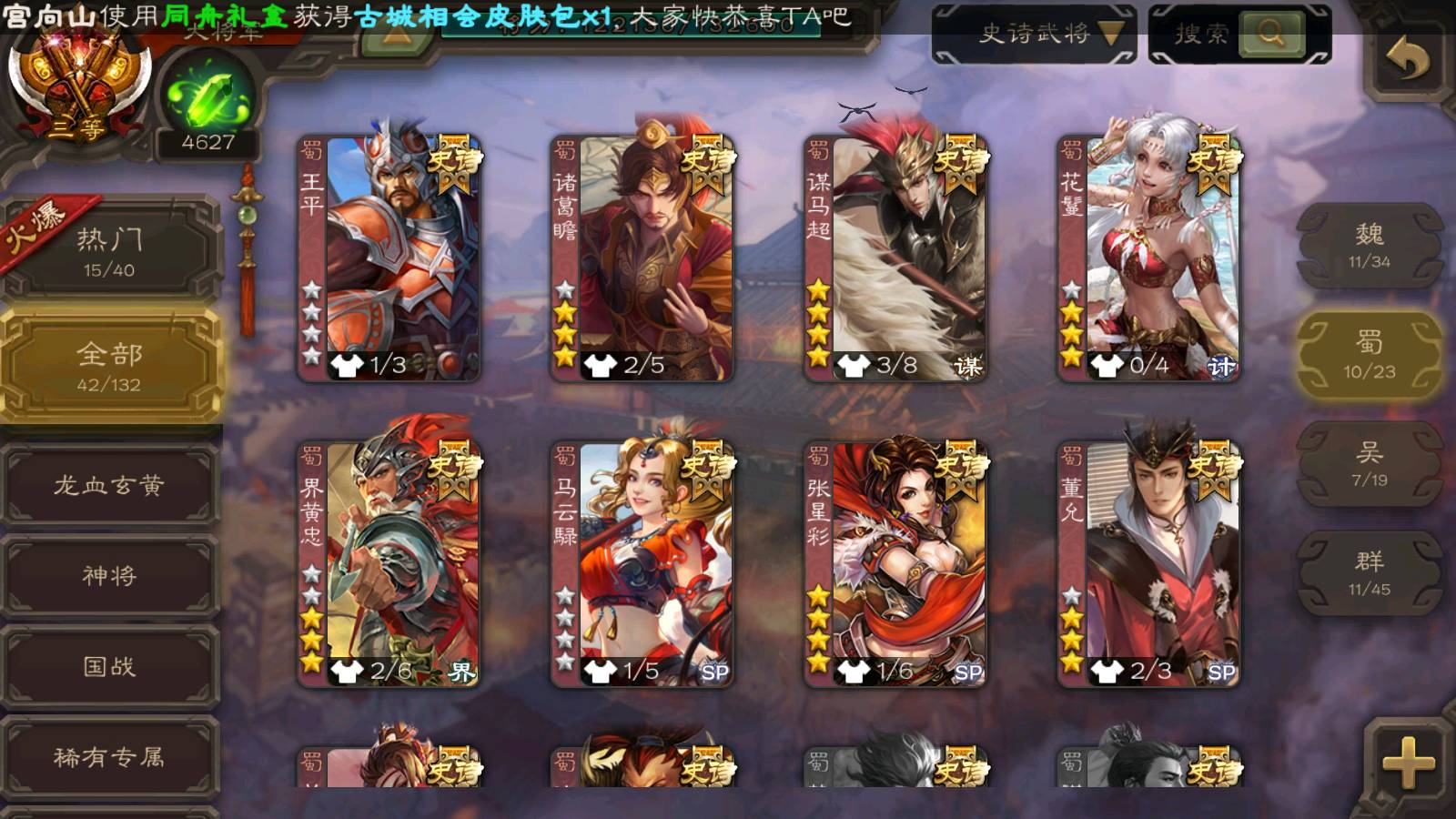 (蜀国):界黄忠,诸葛瞻,花鬘,沙摩柯,谋马超,关索,张星彩,王平,马云騄,董允