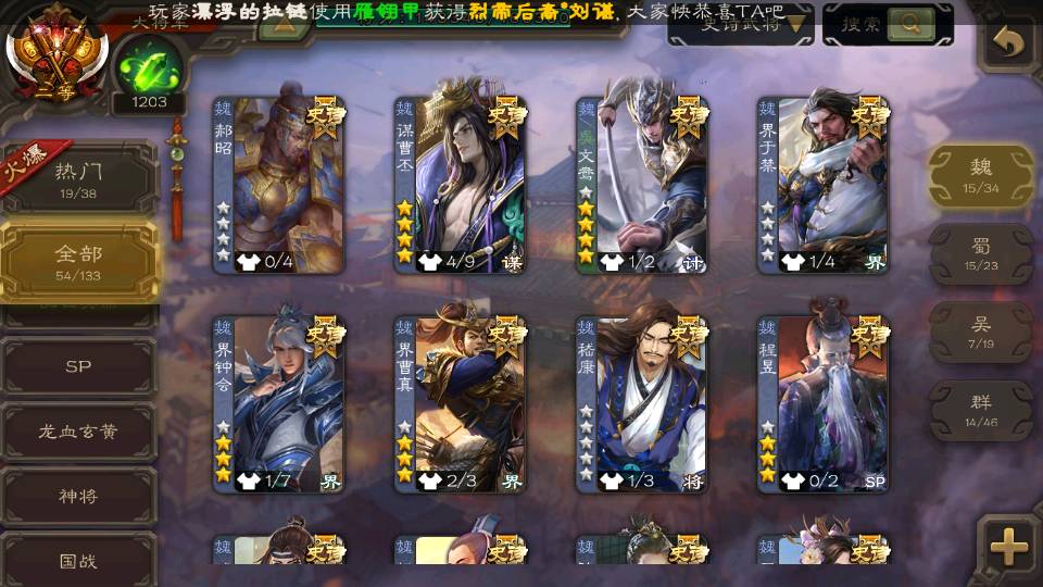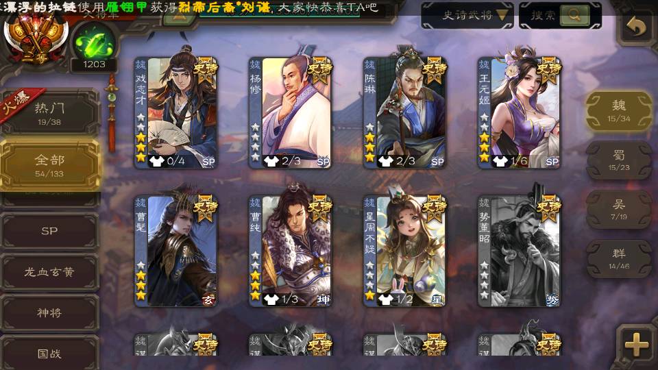 (魏国):王元姬,文鸯,戏志才,界钟会,曹髦,谋曹丕,界于禁,郝昭,界曹真,星周不疑,程昱,曹纯,杨修,陈琳,嵇康