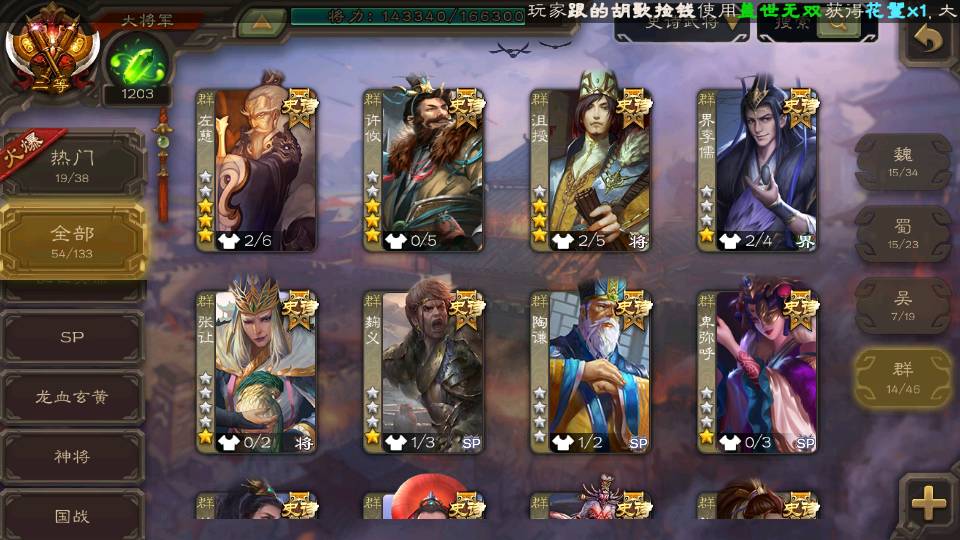 (群雄):祢衡,南华老仙,麴义,许攸,十常侍,张让,界李儒,苏飞,卑弥呼,公孙康,陶谦,左慈,沮授,兀突骨