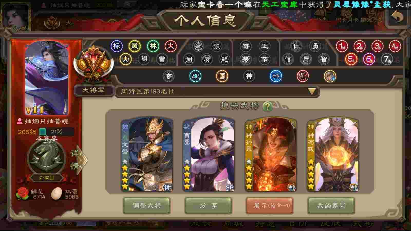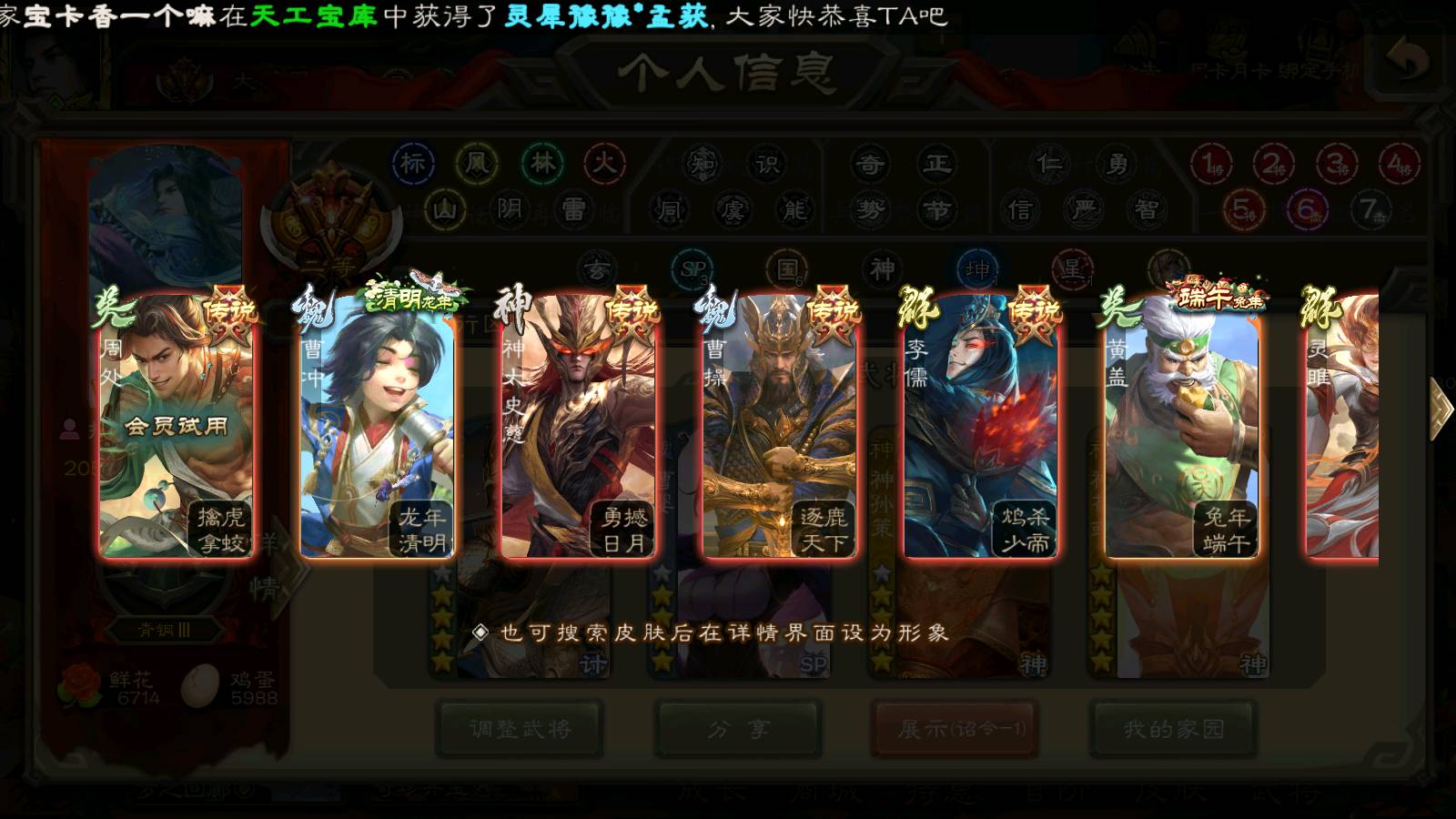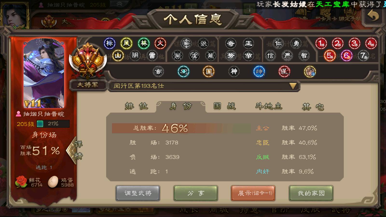 商品编号22512 全部皮肤479,动态皮肤62,全部武将370,排位武将99,国战武将92,史诗武将48,文鸯双回廊,界钟会回廊,麴义动皮,神孙策动皮,神荀彧动皮,心愿积分1.1w,将魂5.9k