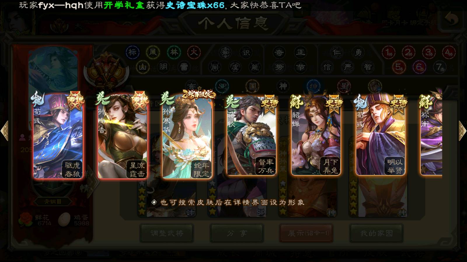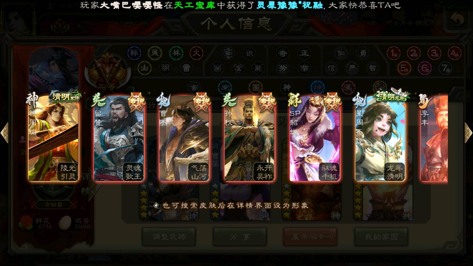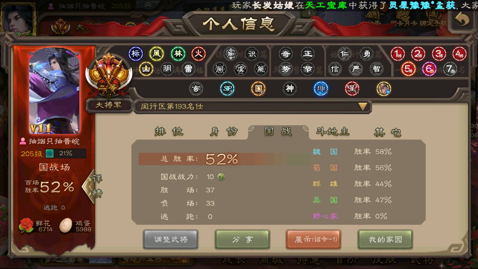 商品编号22512 全部皮肤479,动态皮肤62,全部武将370,排位武将99,国战武将92,史诗武将48,文鸯双回廊,界钟会回廊,麴义动皮,神孙策动皮,神荀彧动皮,心愿积分1.1w,将魂5.9k