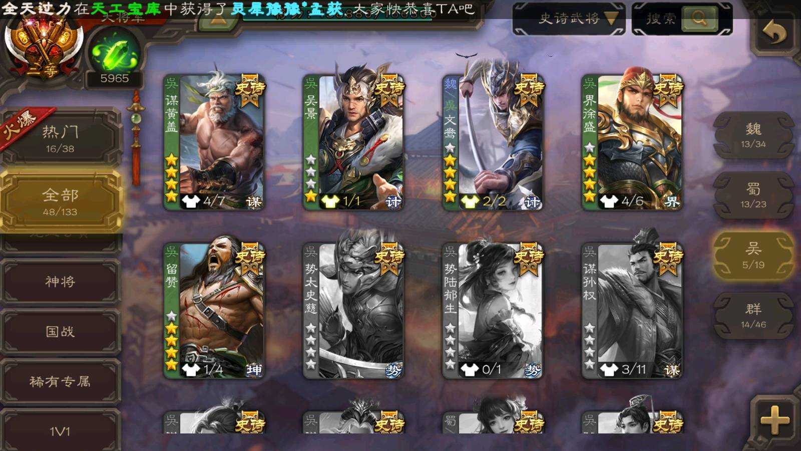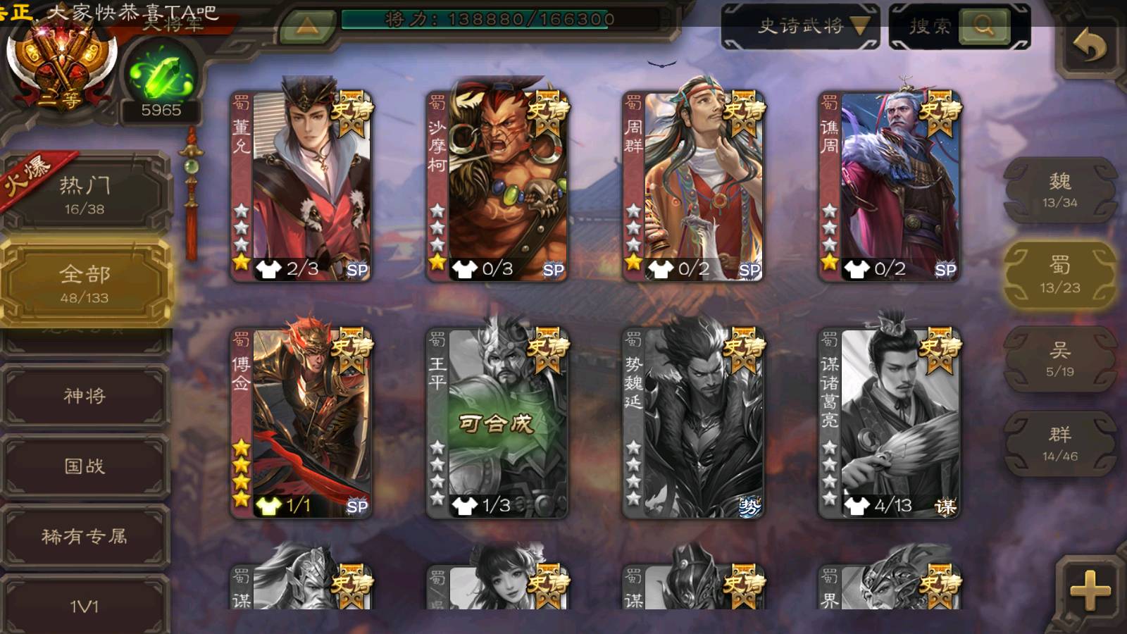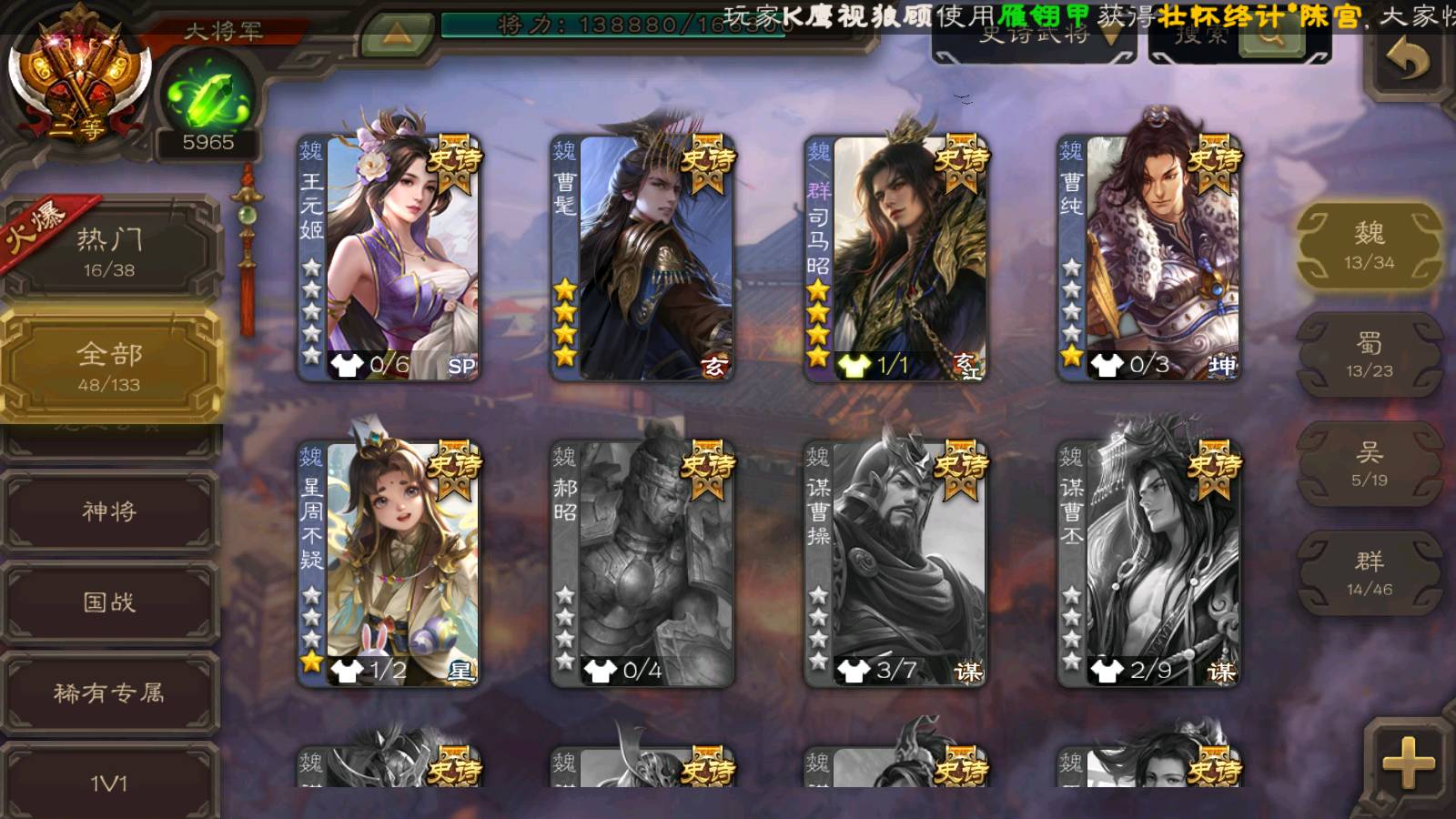 (群雄):界左慈,南华老仙,麴义,司马昭,张让,界李儒,苏飞,裴秀,公孙康,郑玄,星黄忠,左慈,沮授,兀突骨