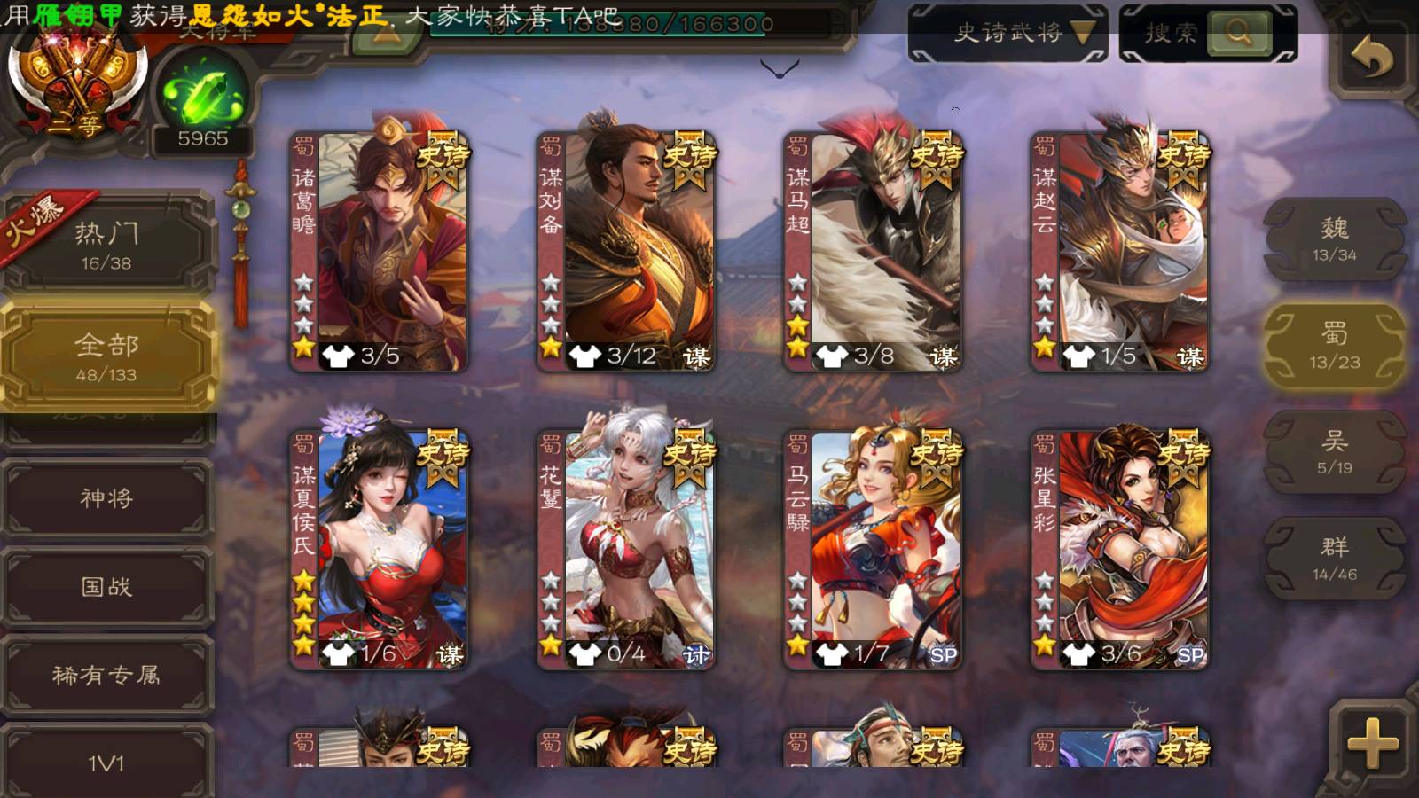 (蜀国):诸葛瞻,谋夏侯氏,周群,沙摩柯,花鬘,谯周,傅佥,谋赵云,谋马超,谋刘备,张星彩,马云騄,董允