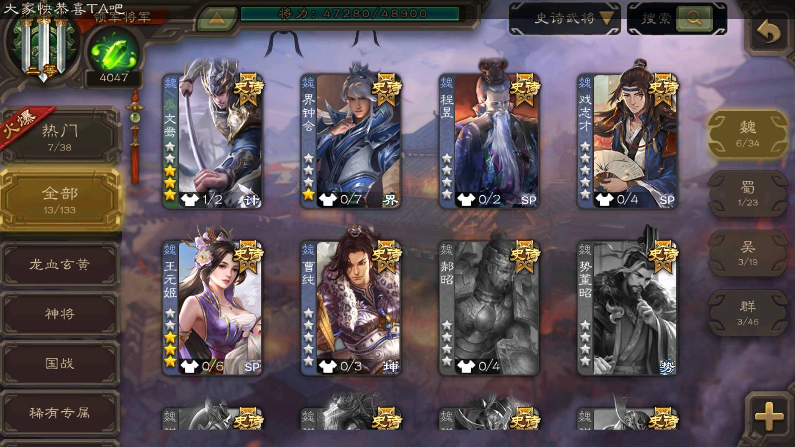 (魏国):王元姬,文鸯,戏志才,界钟会,程昱,曹纯