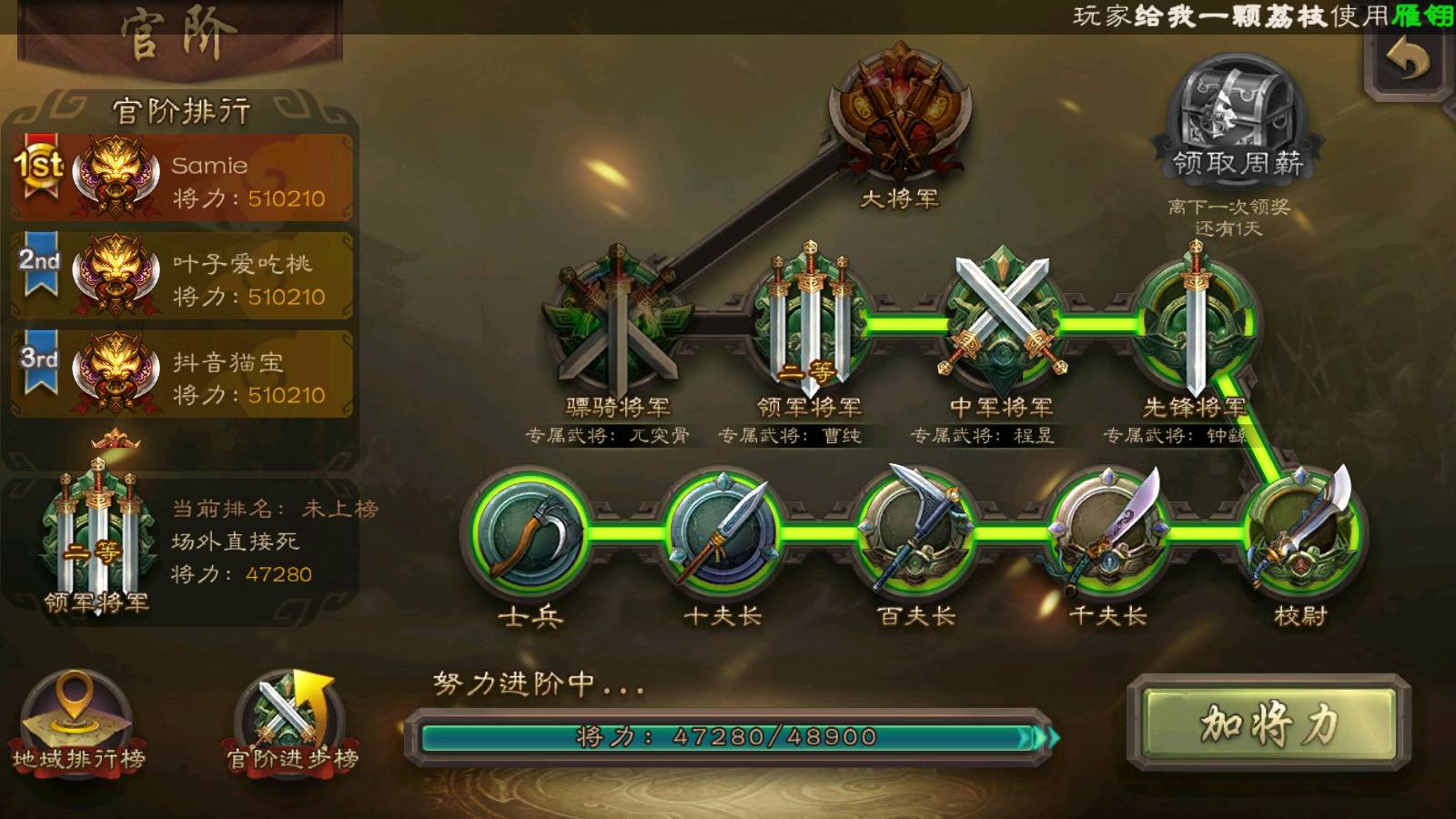 官阶:领军