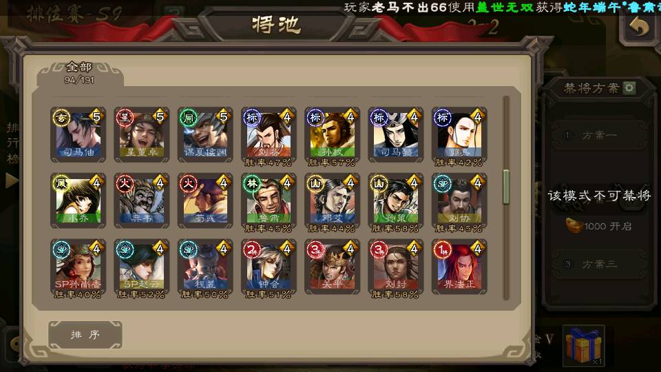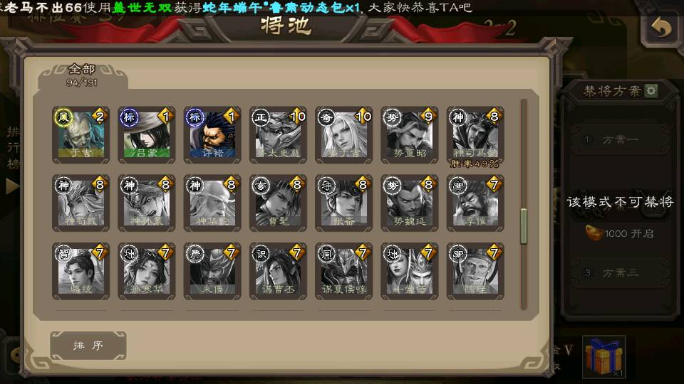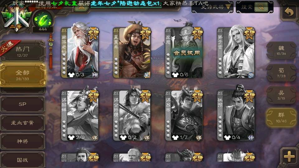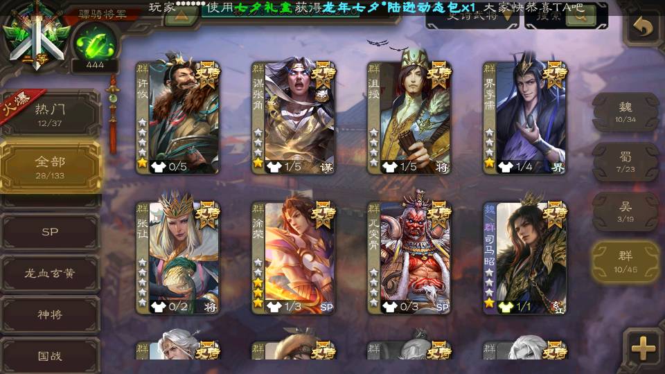 (群雄):徐荣,南华老仙,许攸,司马昭,张让,界李儒,星董卓,谋张角,沮授,兀突骨