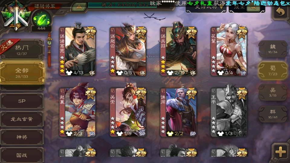 (蜀国):谋关羽,谋诸葛亮,谋赵云,花鬘,谯周,关索,赵襄