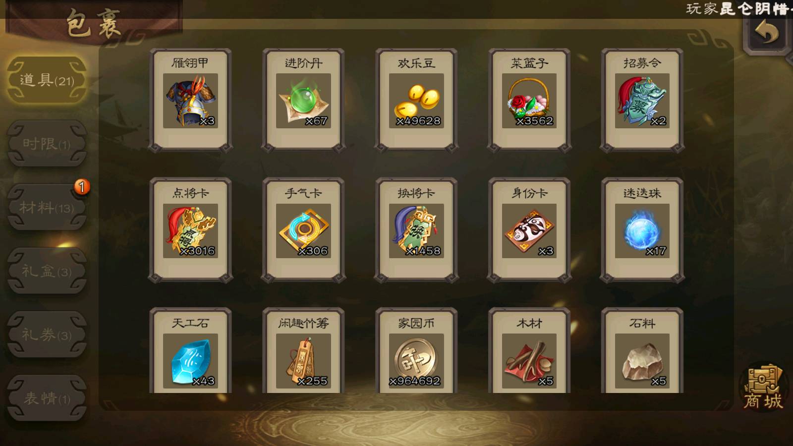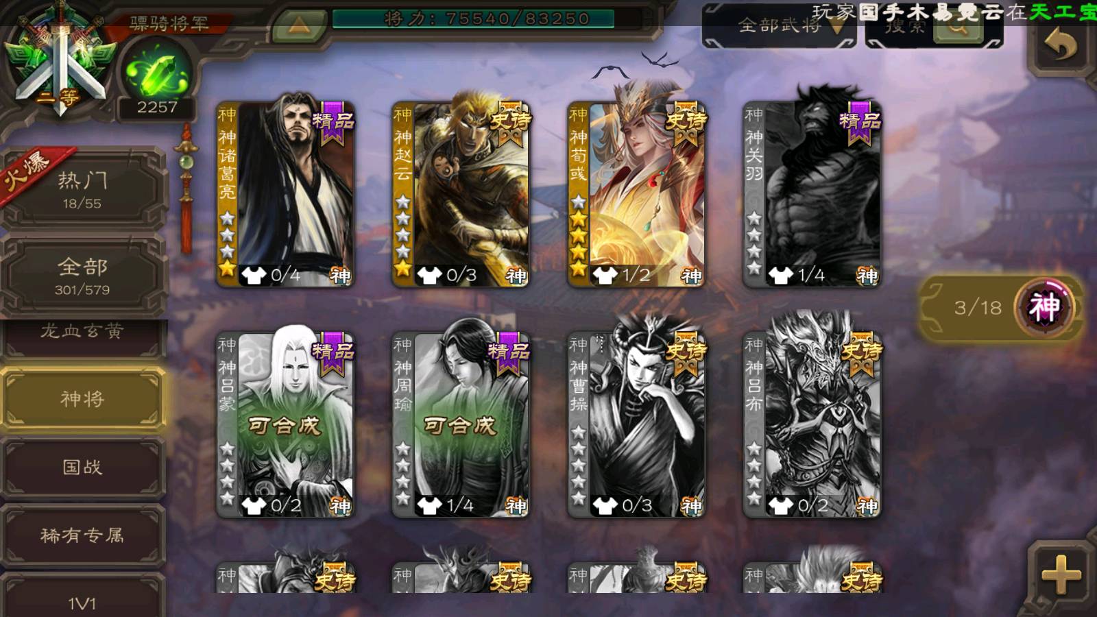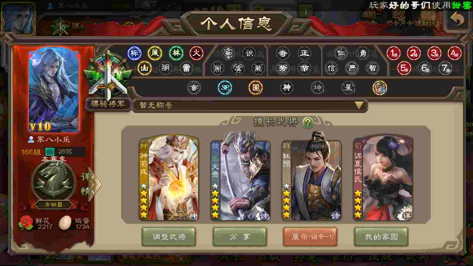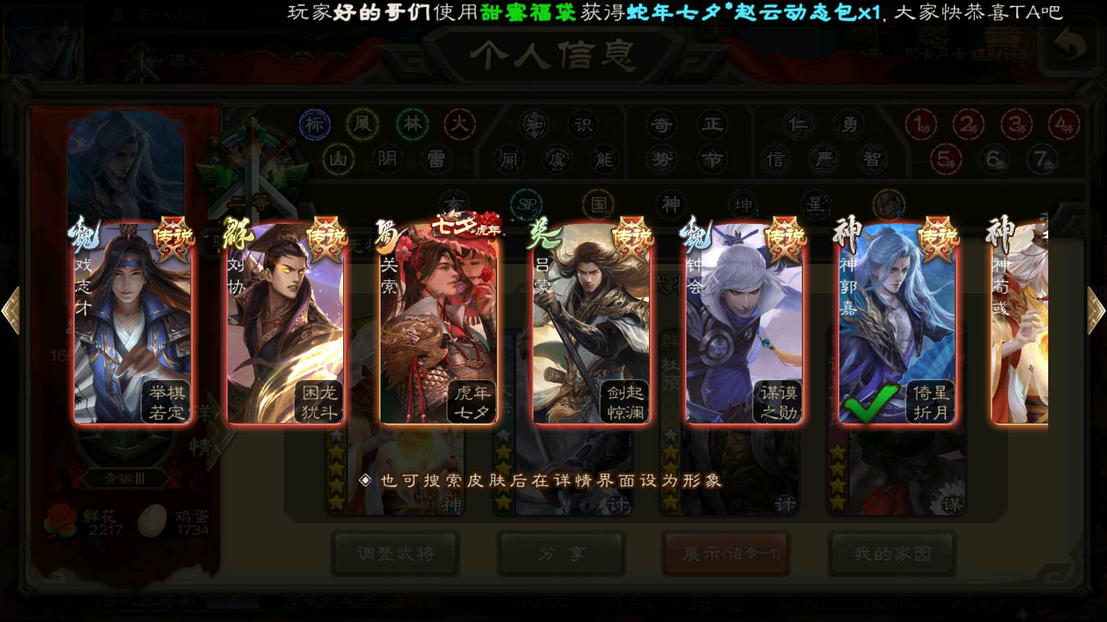商品编号22538 全部皮肤287,动态皮肤12,全部武将301,排位武将85,国战武将86,史诗武将20,欢乐豆4.9w,心愿积分9.7k