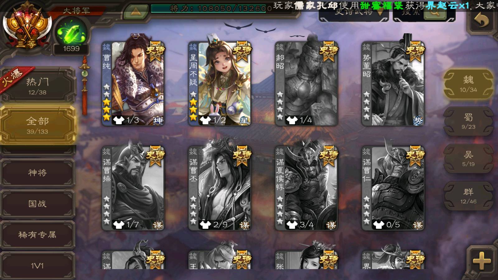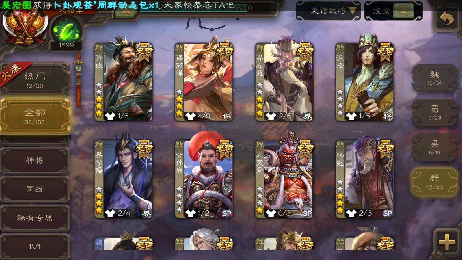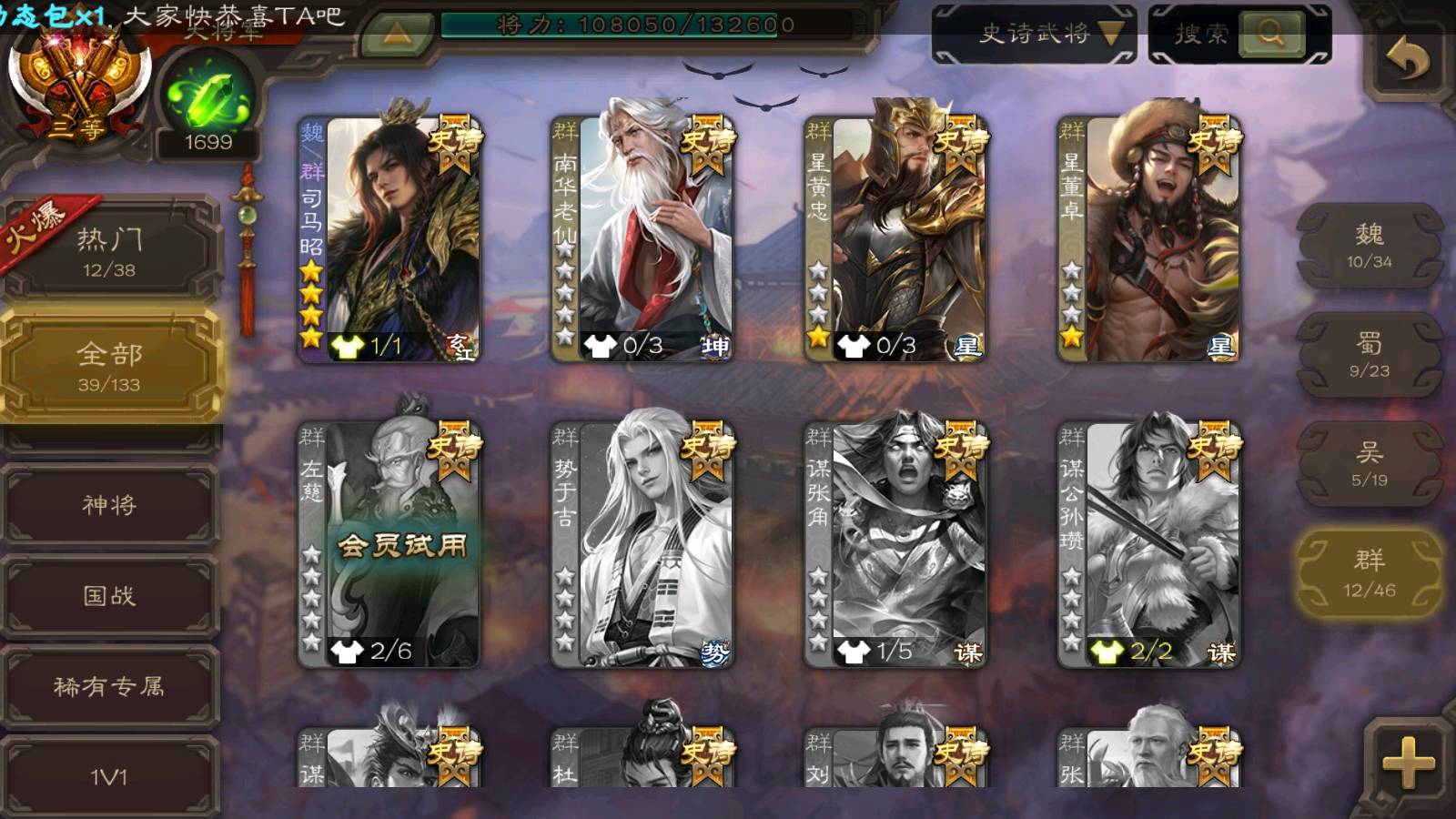 (群雄):杨彪,界左慈,南华老仙,谋貂蝉,司马昭,许攸,界李儒,公孙康,星黄忠,星董卓,沮授,兀突骨