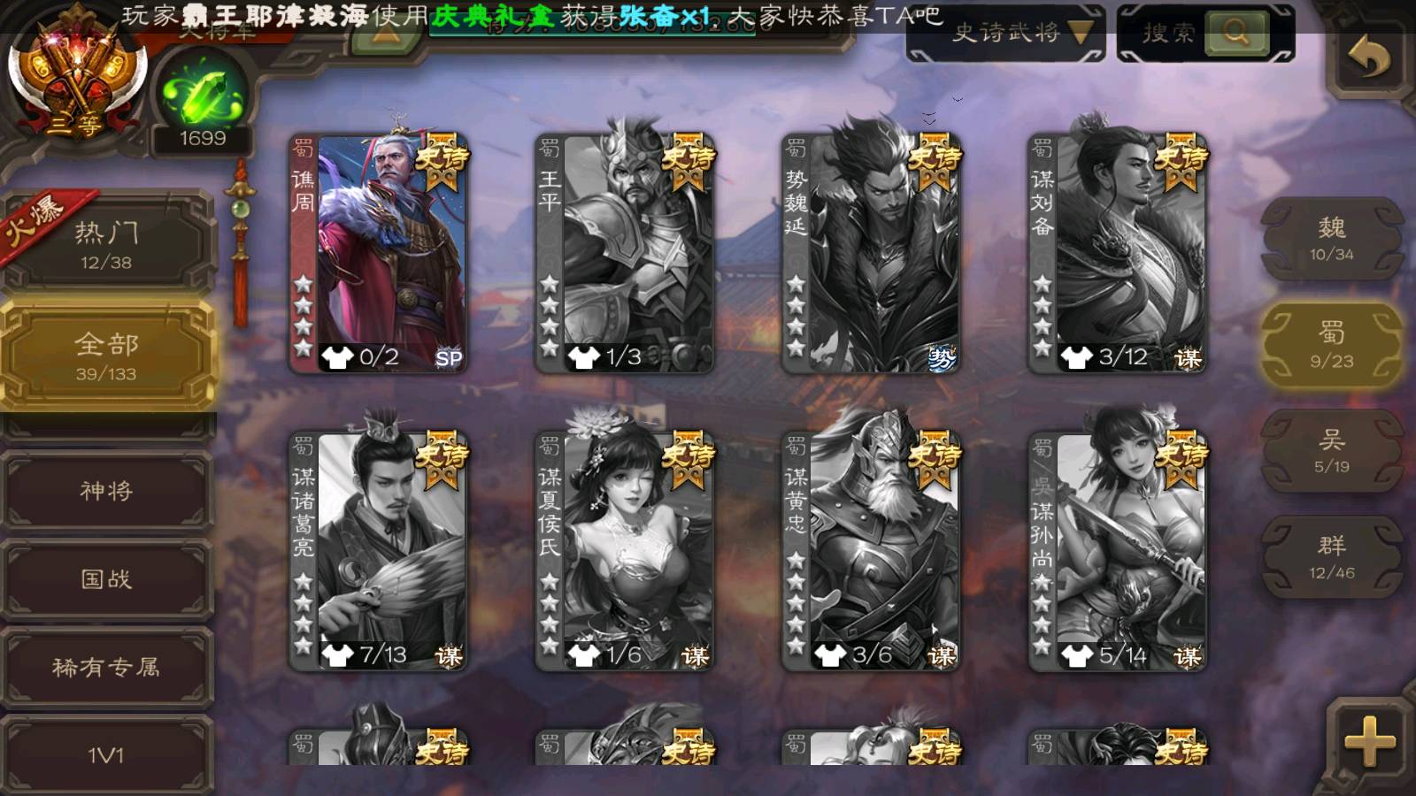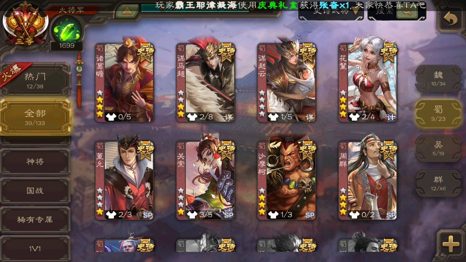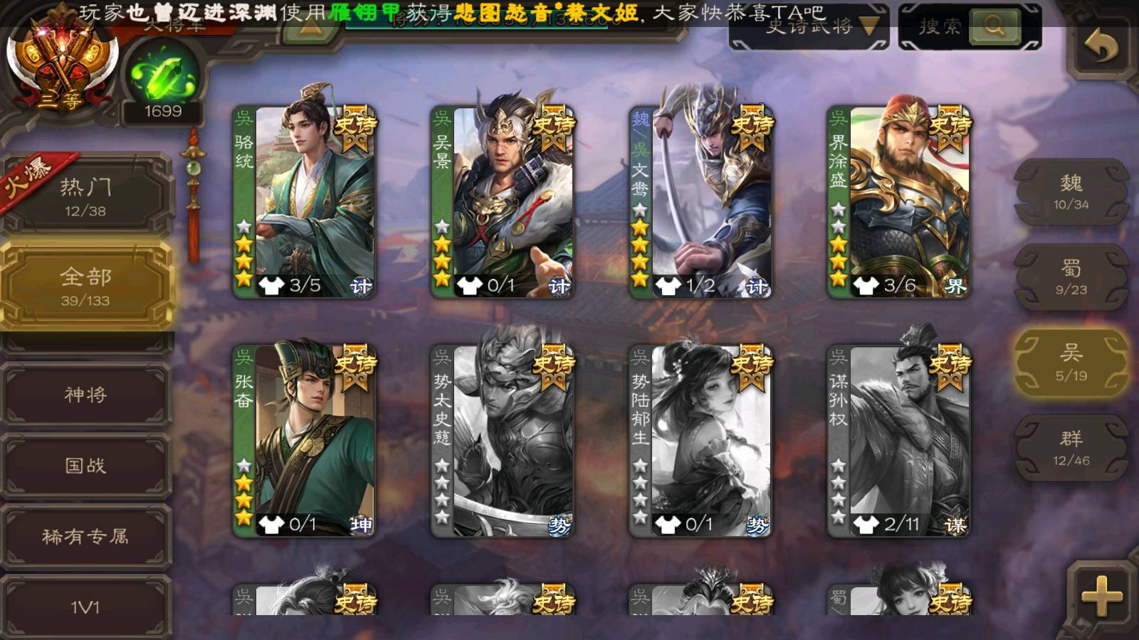 (群雄):杨彪,界左慈,南华老仙,谋貂蝉,司马昭,许攸,界李儒,公孙康,星黄忠,星董卓,沮授,兀突骨