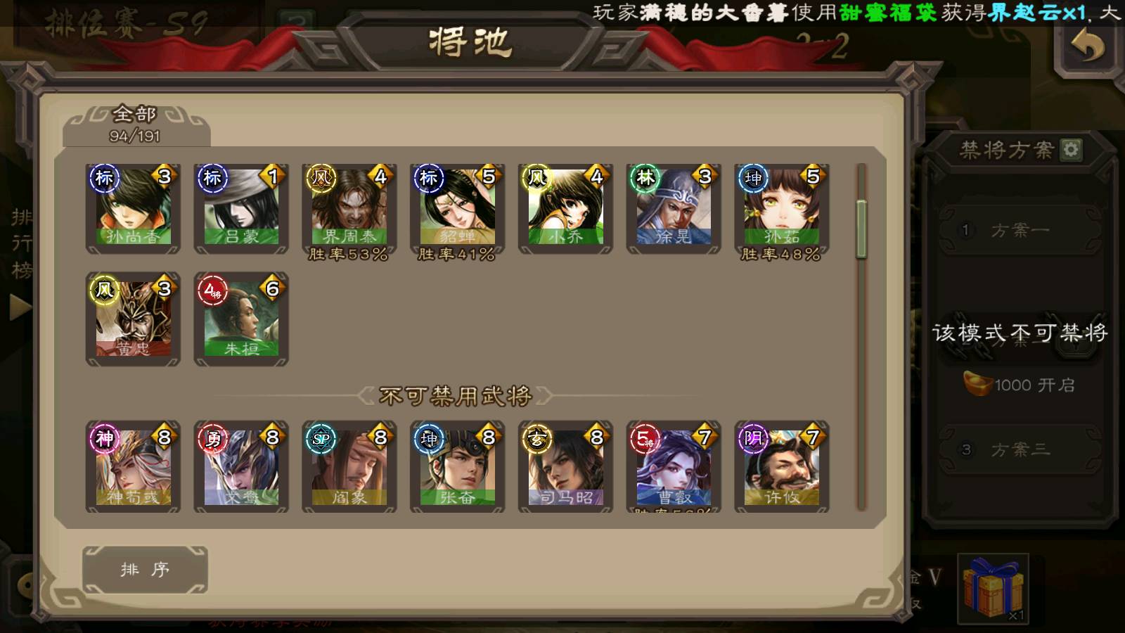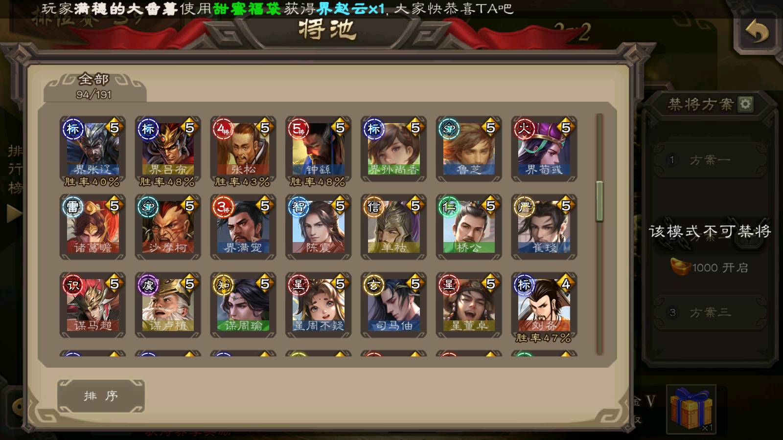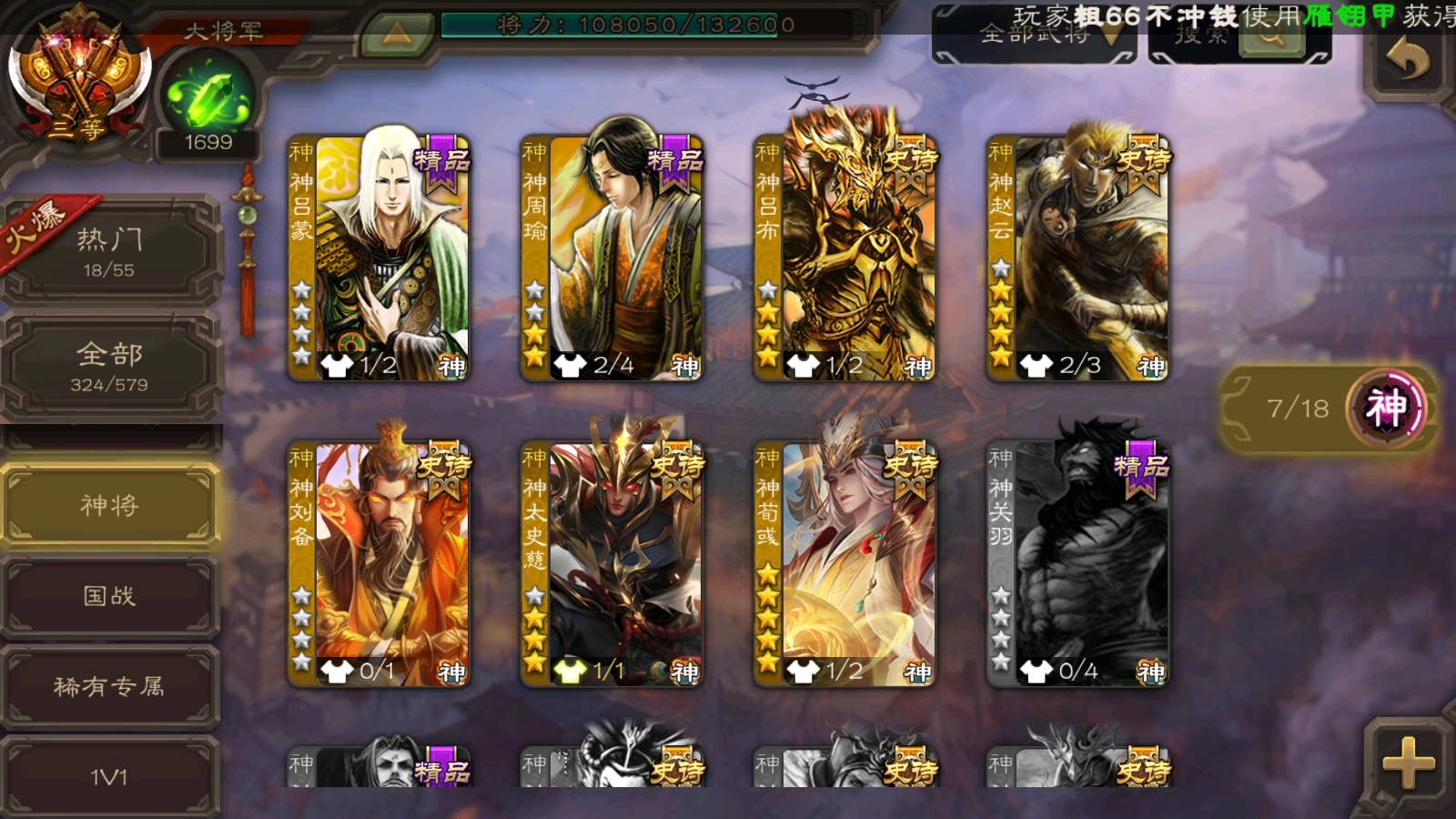 (神将):神荀彧,神太史慈,神赵云,神吕布,神刘备