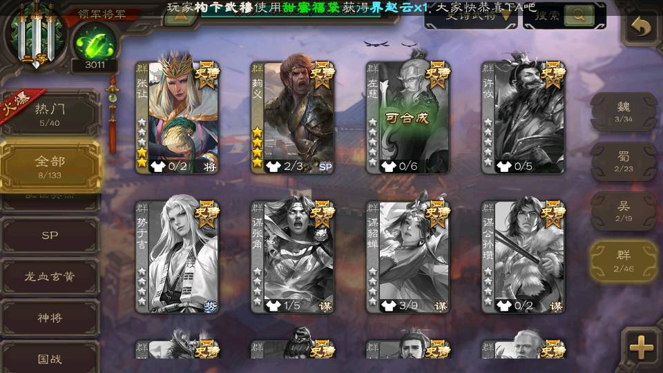 商品编号22541 全部皮肤196,动态皮肤11,全部武将210,排位武将66,国战武将66,史诗武将8,文鸯动皮,麴义动皮,将魂3k