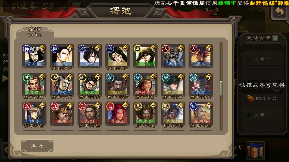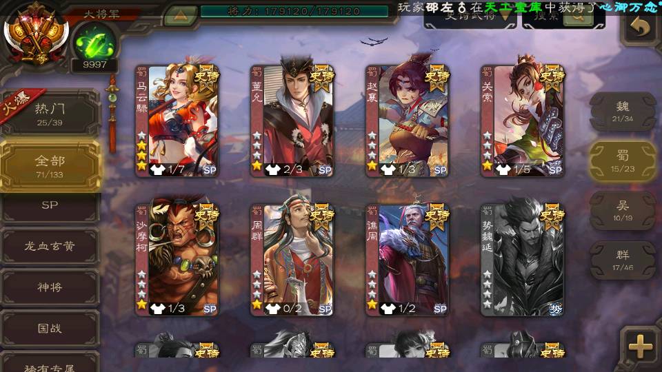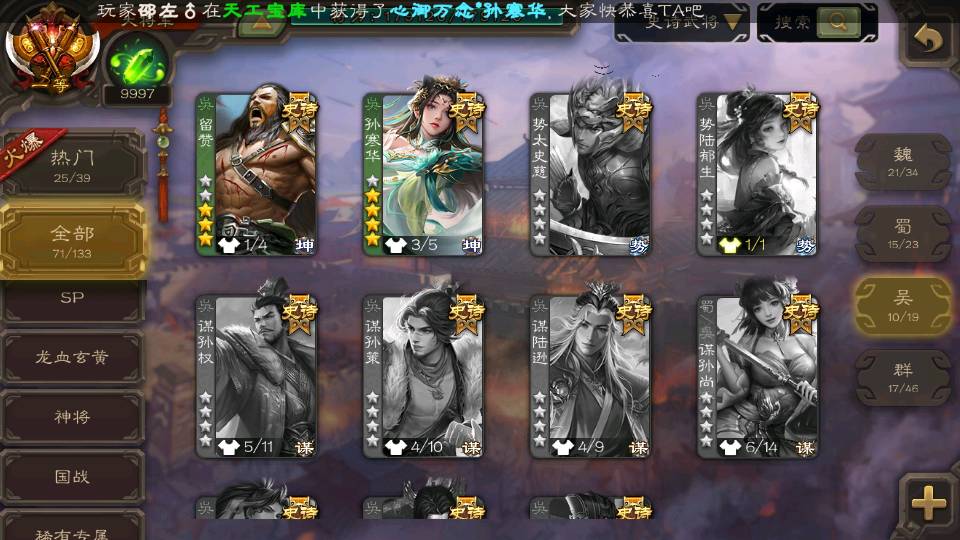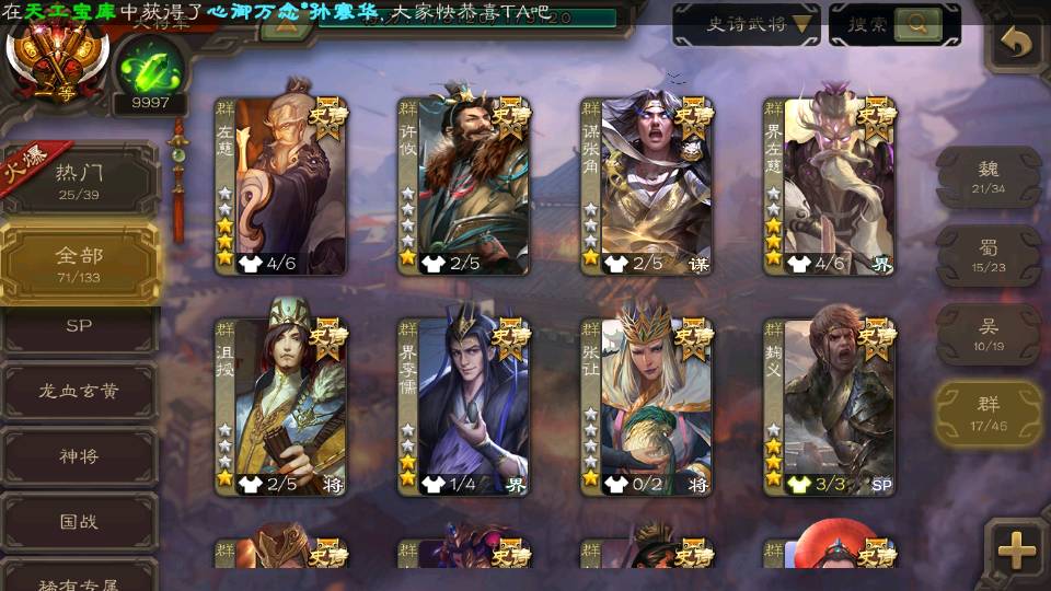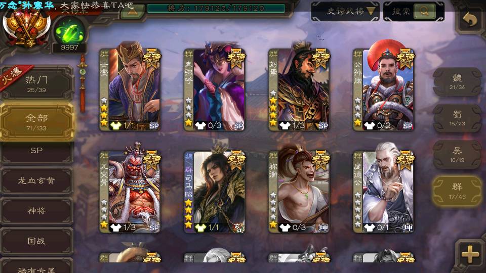 (群雄):刘焉,祢衡,界左慈,麴义,许攸,司马昭,张让,界李儒,星董卓,庞德公,卑弥呼,士燮,谋张角,公孙康,左慈,沮授,兀突骨