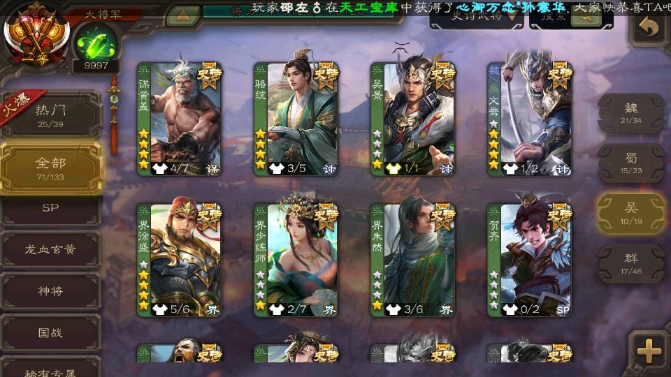 (吴国):界徐盛,留赞,孙寒华,谋黄盖,骆统,界朱然,界步练师,吴景,贺齐
