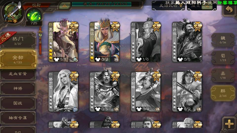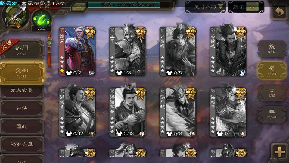 商品编号22576 全部皮肤94,动态皮肤2,全部武将123,排位武将40,国战武将43,史诗武将4,界左慈动皮,雁翎4.6w