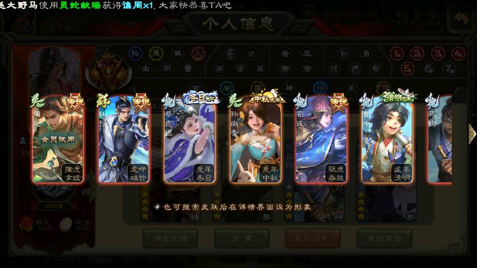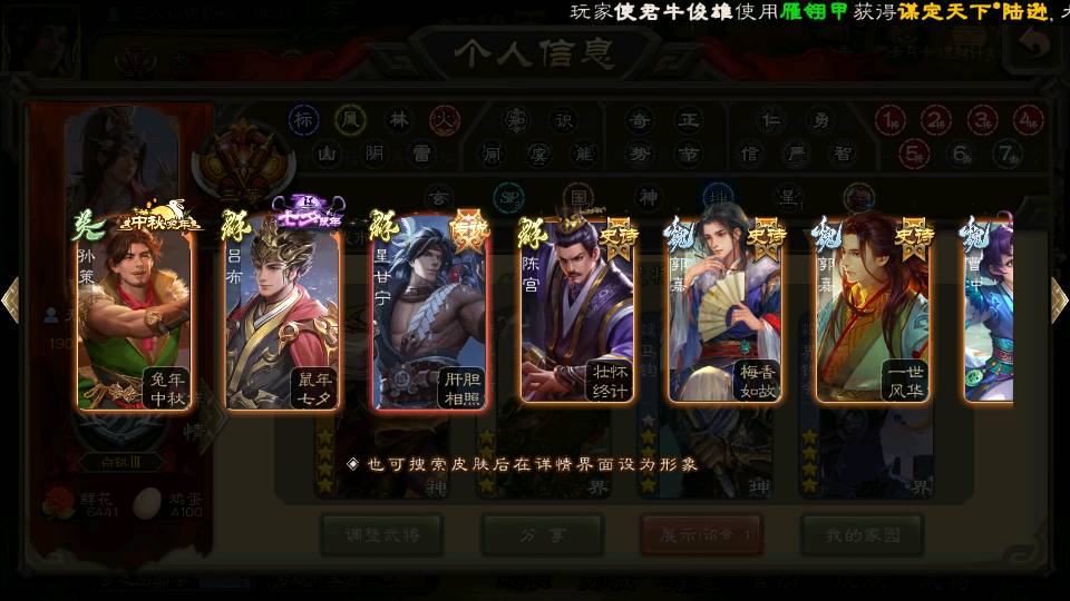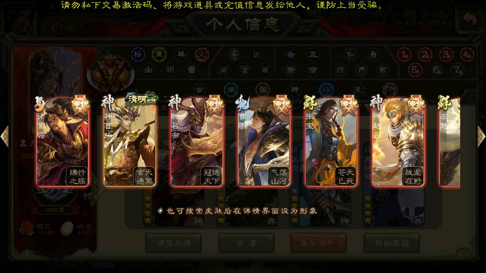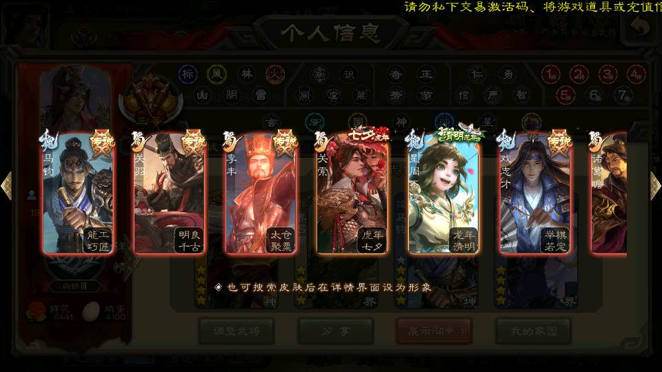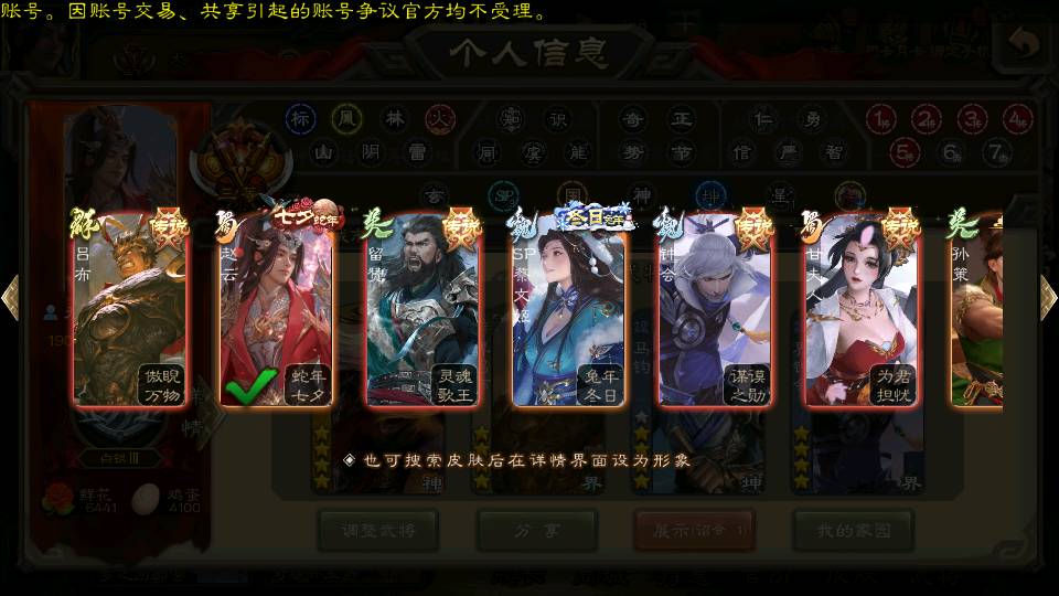 商品编号22584 全部皮肤384,动态皮肤34,全部武将321,排位武将87,国战武将82,史诗武将29,文鸯动皮,杜预动皮,马钧动皮