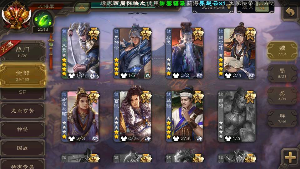 (魏国):文鸯,马钧,界钟会,戏志才,SP司马昭,程昱,曹纯