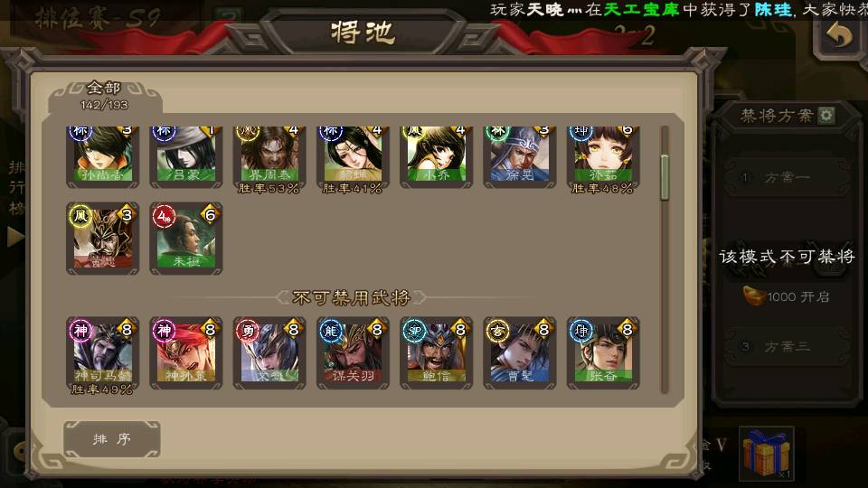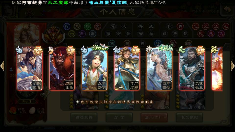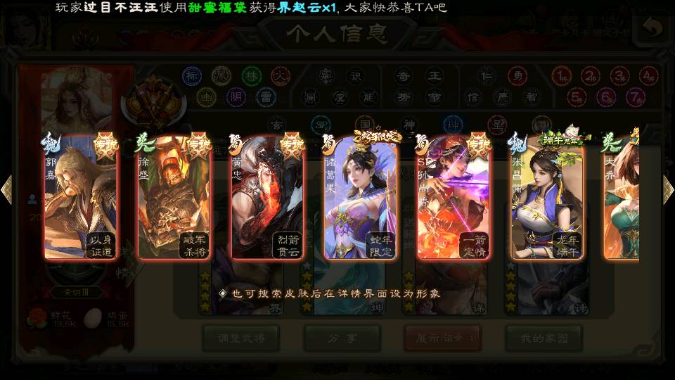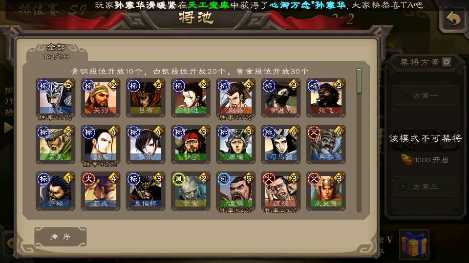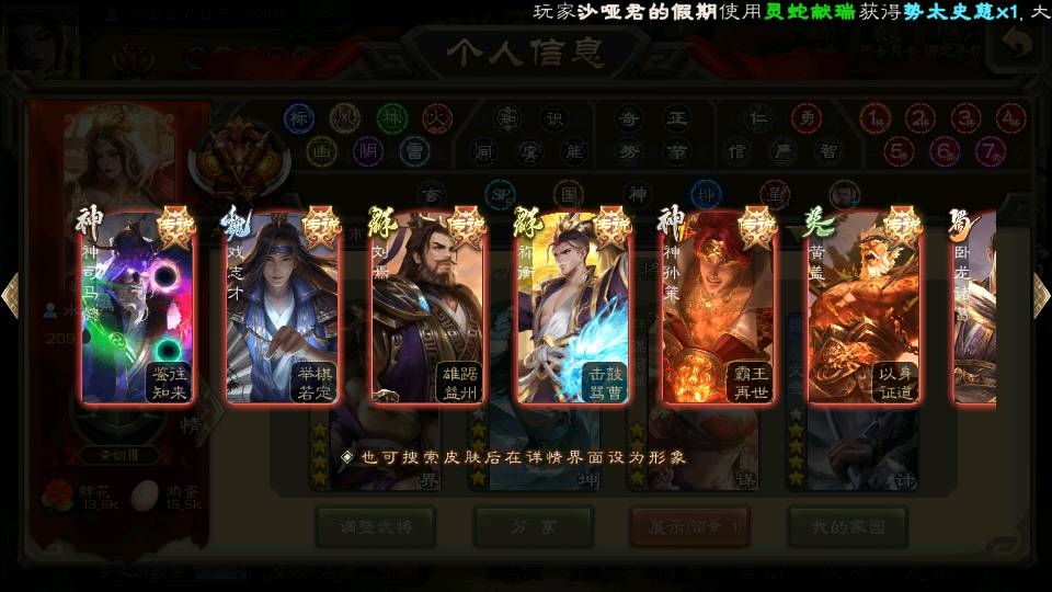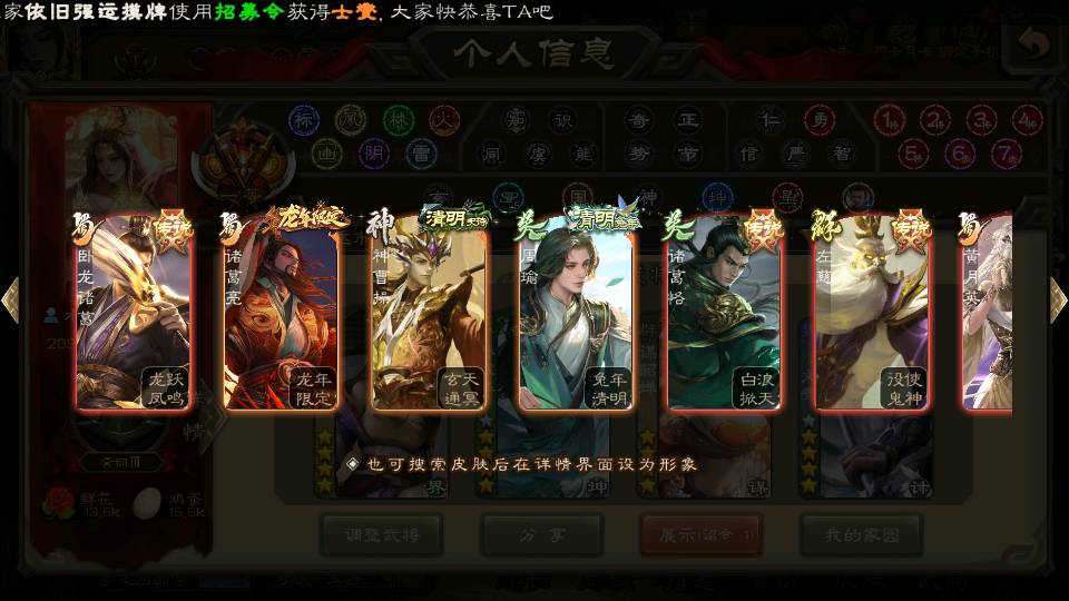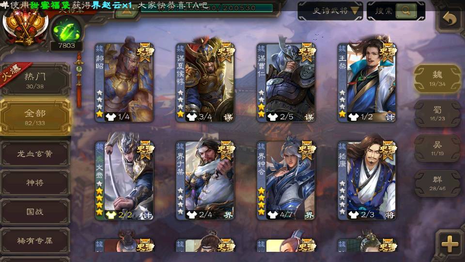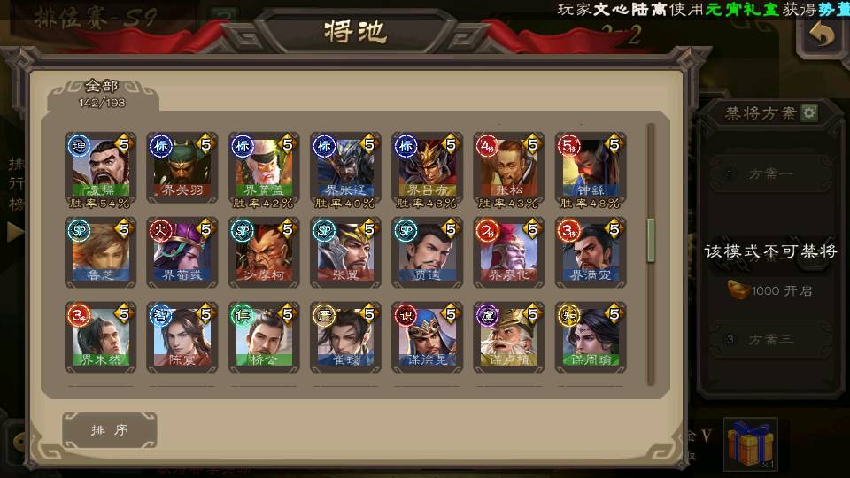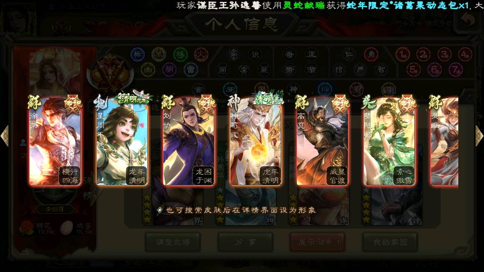 (群雄):刘焉,徐荣,杨彪,杜预,祢衡,友诸葛亮,界左慈,界沮授,麴义,许攸,十常侍,谋貂蝉,张让,界李儒,苏飞,星甘宁,裴秀,卑弥呼,士燮,王允,公孙康,刘璋,郑玄,陶谦,星黄忠,左慈,沮授,兀突骨