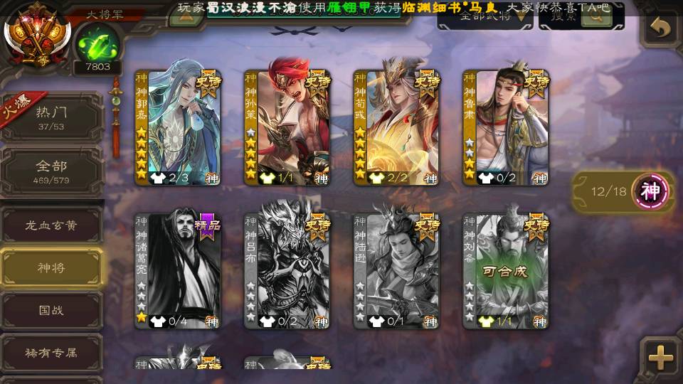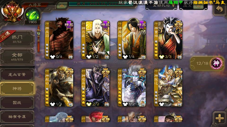(神将):神荀彧,神郭嘉,神甘宁,神曹操,神孙策,神鲁肃,神司马懿,神赵云,神张辽