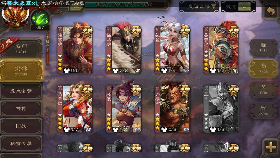 (蜀国):诸葛瞻,界黄忠,花鬘,沙摩柯,谋马超,马云騄,赵襄