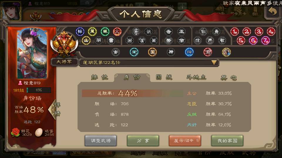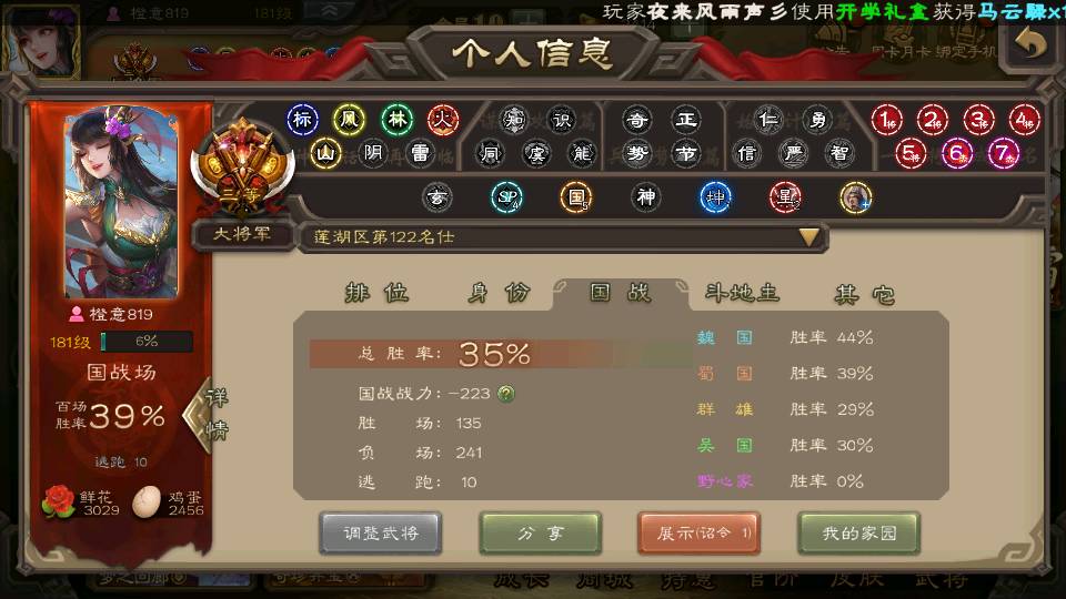 商品编号22605 全部皮肤349,动态皮肤36,全部武将350,排位武将92,国战武将87,史诗武将37,vip:10