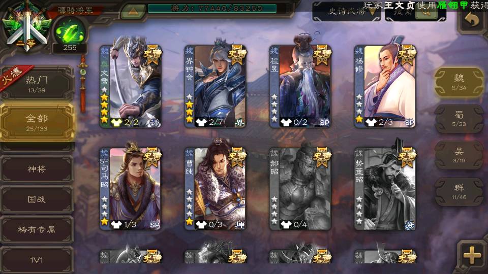 (魏国):文鸯,界钟会,SP司马昭,程昱,曹纯,杨修