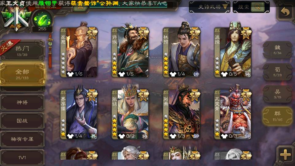 (群雄):刘焉,杜预,祢衡,十常侍,南华老仙,许攸,界李儒,张让,左慈,沮授,兀突骨